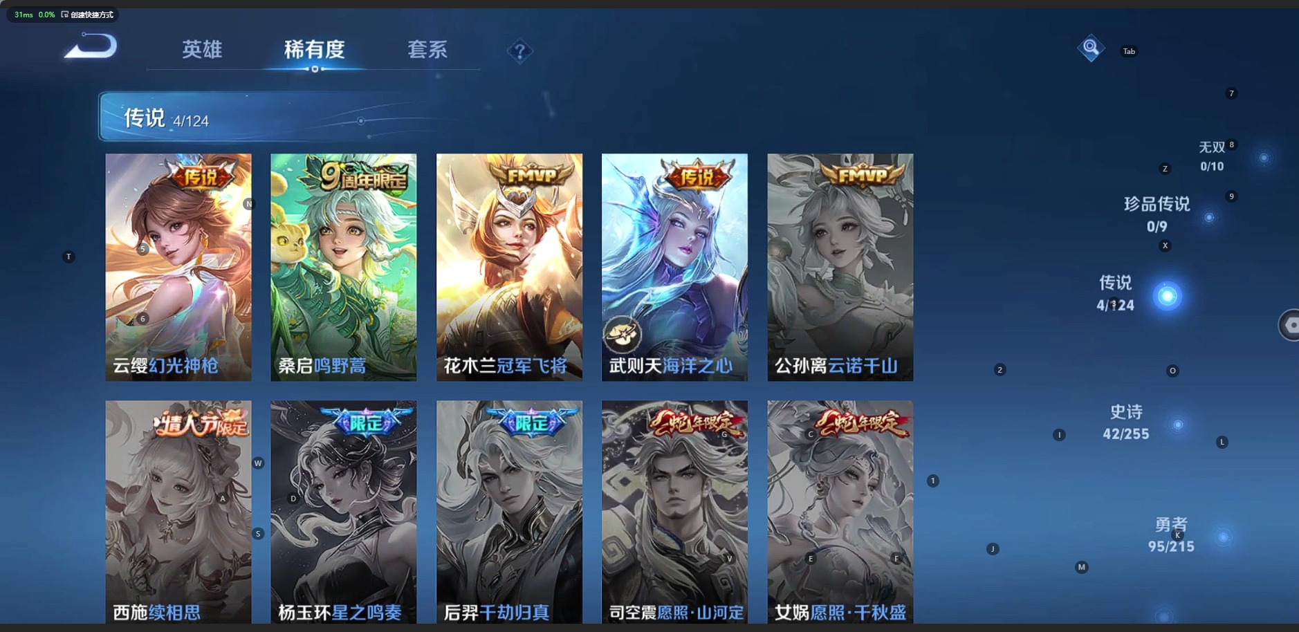 [10483347]v7 1典藏 4传说 124英雄 192皮肤 典藏英雄武则天 可修改实名 荣耀水晶:大秦宣太后 传说皮:幻光神呛海洋之心冠军飞将 珍宝阁皮:胡桃夹子 限定皮:鸣野蒿梅西遇见飞天游园惊梦如梦令-嫦娥 史诗皮:琥珀纪元伽罗紫霞仙子白龙吟黄金分割率千年之狐百解令蒙犽蒙恬荣光圣徽偶像歌手暗夜猫娘魅语猫狗日记-孙策乱世虎臣女仆咖啡摇滚巨星水果甜心星夜王子心灵骇客德古拉伯爵暗隐猎兽者舞动绿茵地狱岩魂拒霜思缤纷独角兽乘风破浪逐浪之夏月团寄思水晶猎龙者金属风暴原初追逐者圣诞狂欢圣诞恋歌鹰眼统帅未来纪元-赵云