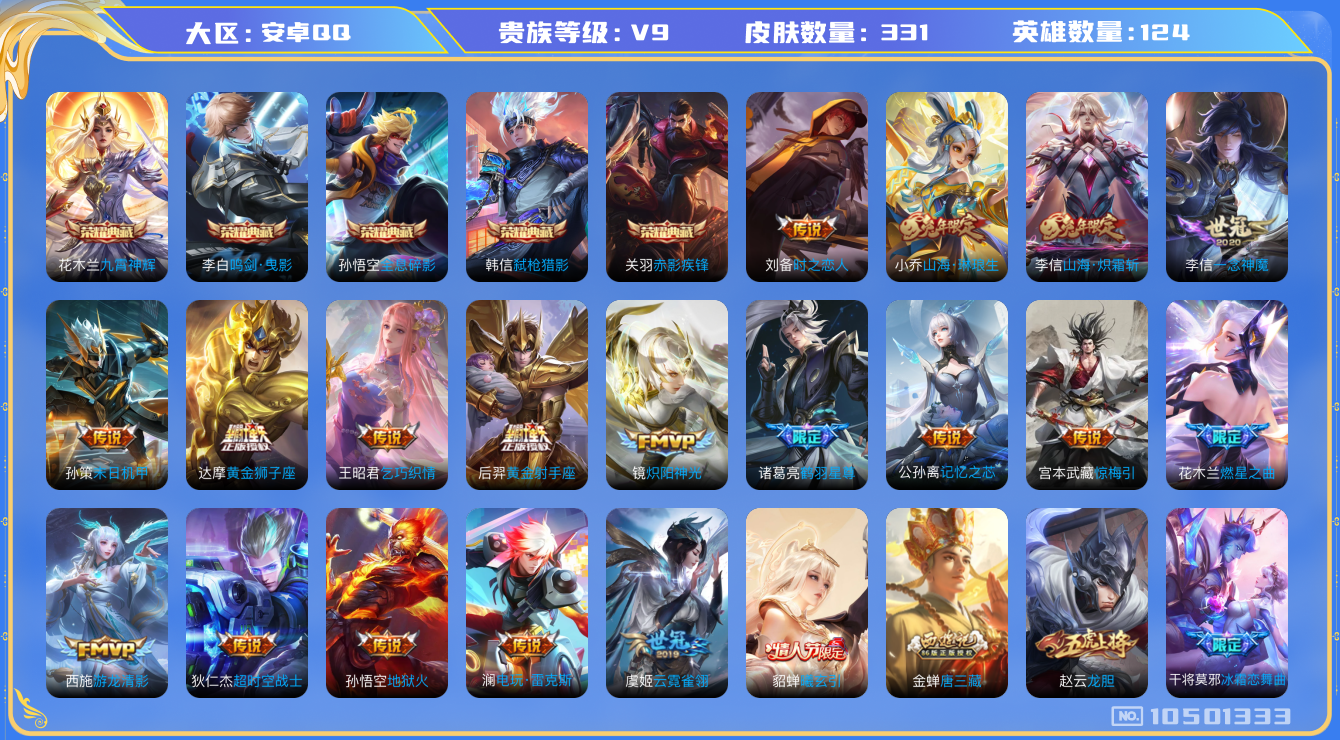 [10501333]v9 5典藏 25传说 124英雄 331皮肤 可修改实名 荣耀水晶:鸣剑·曳影九霄神辉木兰典藏弑呛猎影韩信典藏赤影疾锋全息碎影猴子典藏 传说皮:貂蝉曦玄引游龙清影小青龙山海·炽霜斩李信年限山海·琳琅生小乔年限黄金狮子座黄金射手座地狱火云霓雀翎一念神魔炽阳神光乞巧织情时之恋人-刘备电焊工超时空战士-狄仁杰末日机甲-孙策燃星之曲记忆之芯机甲兔电玩·雷克斯鹤羽星尊惊梅引 珍宝阁皮:优雅恋人 限定皮:飞衡韩信年限瑞麟志木兰年限遇见飞天诗剑行齐天大圣怒海麟威五谷丰年冰锋战神武圣梁祝龙胆李小龙默契交锋-花木兰引擎之心青春决赛季冰霜恋舞曲玉兔公主唐三藏枫霜尽 史诗皮:星界战将涂山红红星界特工决胜骁骑遇见神鹿紫霞仙子苍穹之光电玩小子小书包黄金分割率特工魅影千年之狐永昼百相守梦关羽电玩·爆裂旋风浮梦罗烟末日机甲-莱西奥鹤归松栖赵怀真冰冠公主高渐离燃音魔法蒙恬荣光圣徽偶像歌手青蛇晚萤暗夜猫娘魅语龙骑士小龙虾末日机甲-吕布猫狗日记-孙策乱世虎臣修罗女仆咖啡摇滚巨星水果甜心天才门将星夜王子心灵骇客功夫厨神德古拉伯爵暗隐猎兽者幽灵船长鬼剑武藏心灵战警乐园奇幻夜天秀·启明舞动绿茵地狱岩魂诗语江南纤云弄巧繁星吟游呼啦呼啦缤纷独角兽乘风破浪逐浪之夏水晶猎龙者曙光守护者唤灵魅影金属风暴原初追逐者圣诞狂欢圣诞恋歌鹰眼统帅暗夜贵公子魅力维加斯黎明之约奇遇舞章滕王阁序无心