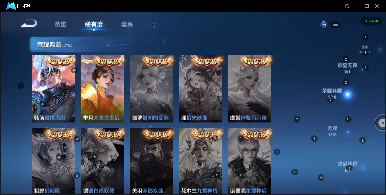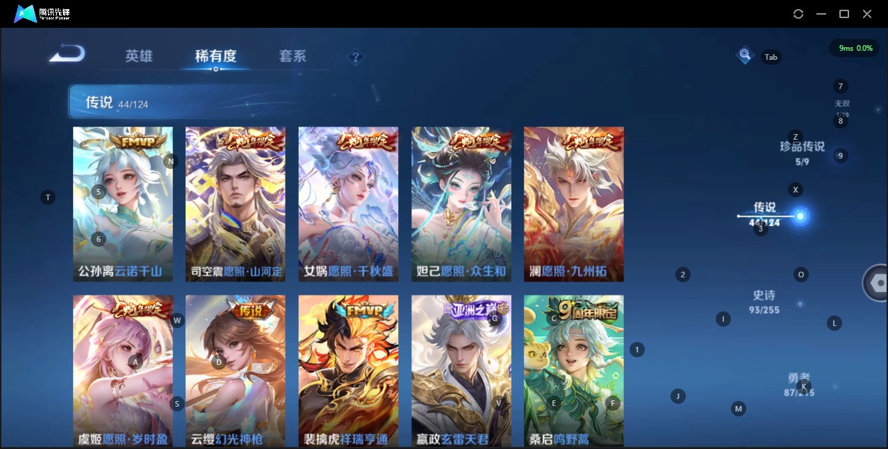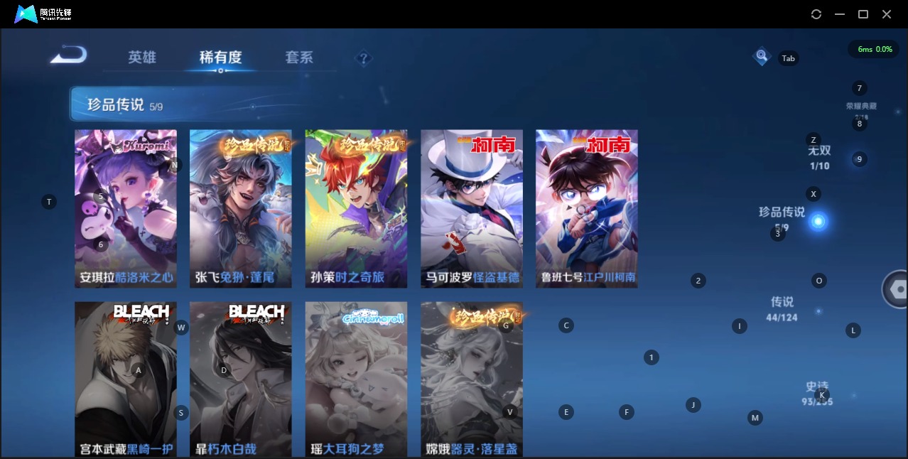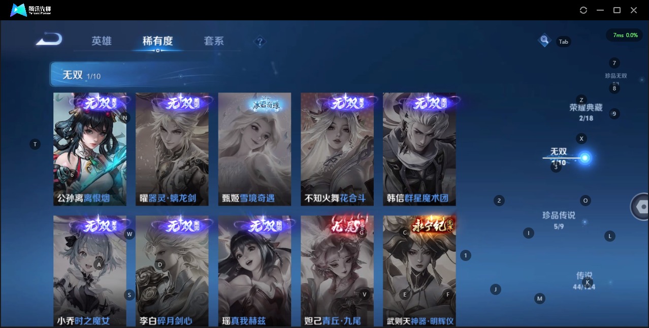 v9 2典藏 1无双 5珍品传说 44传说 122英雄 264皮肤 可修改实名 连体和平 荣耀水晶:弑呛猎影韩信典藏大秦宣太后 无双皮:离恨烟公孙离无双 珍品传说:江户川柯南怪盗基德时之奇旅-孙策兔狲·蓬尾酷洛米之心 传说皮:云诺千山典韦战鼓燎原黄金天蝎座祥瑞亨通幻光神呛