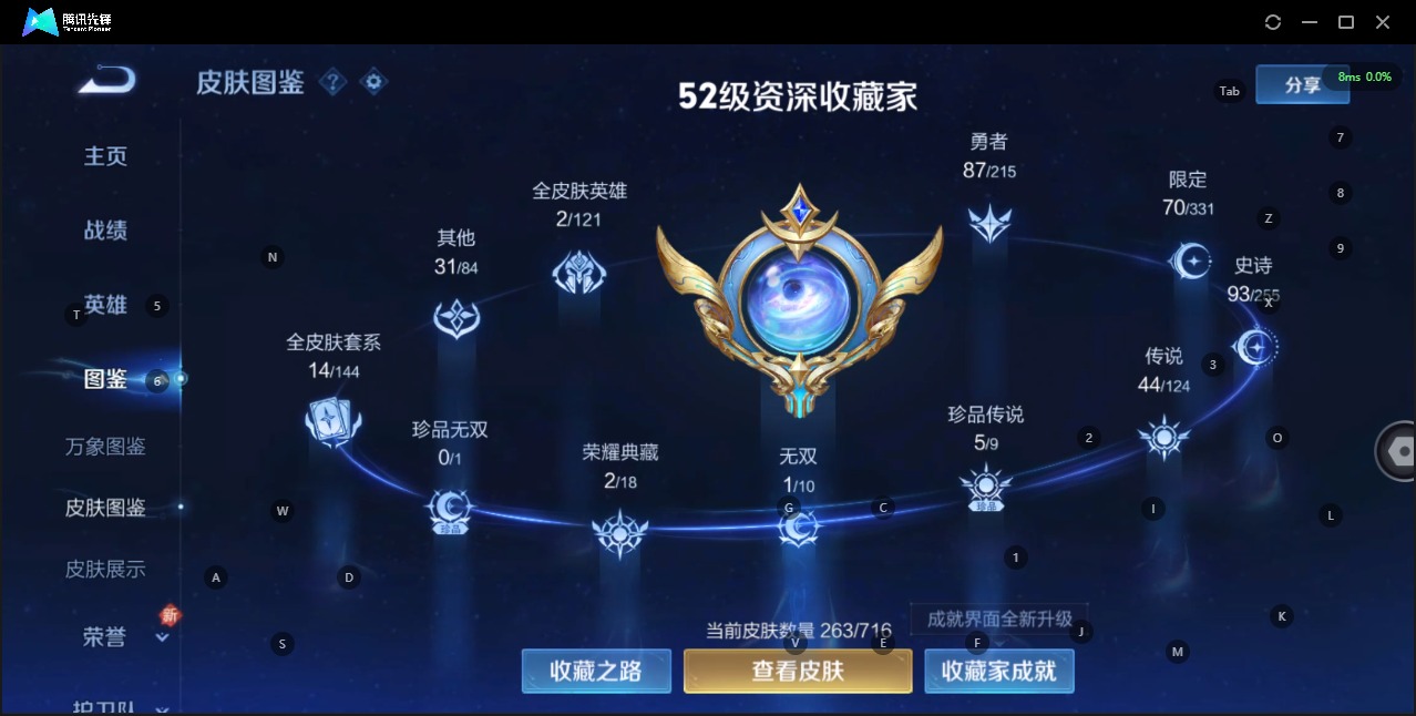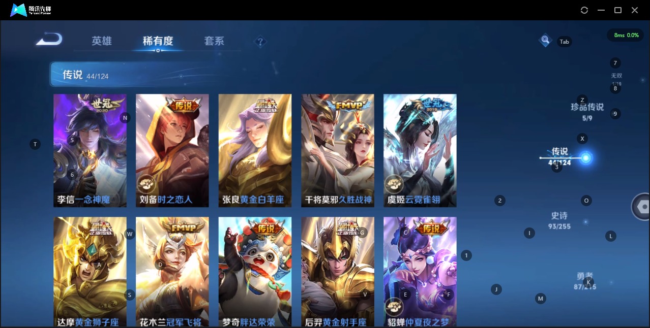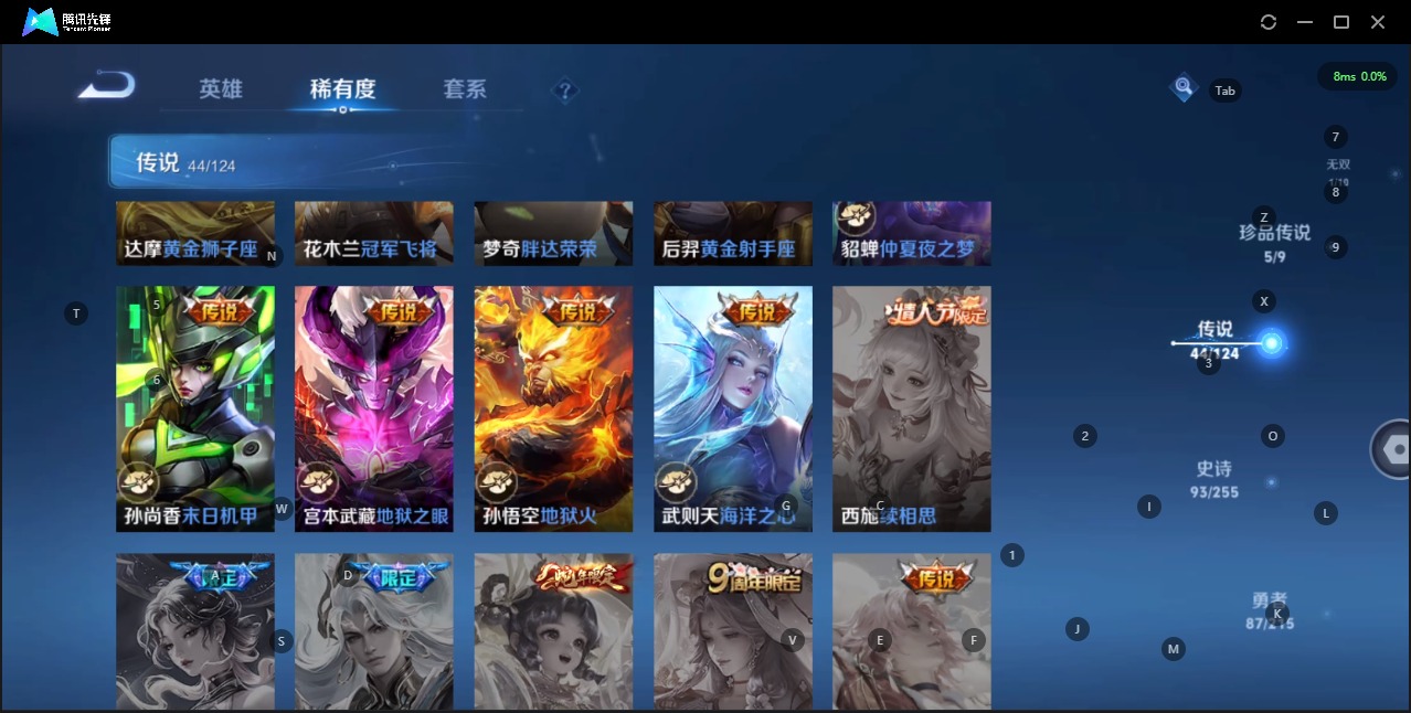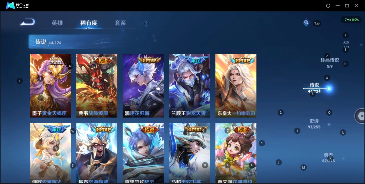 v9 2典藏 1无双 5珍品传说 44传说 122英雄 264皮肤 可修改实名 连体和平 荣耀水晶:弑呛猎影韩信典藏大秦宣太后 无双皮:离恨烟公孙离无双 珍品传说:江户川柯南怪盗基德时之奇旅-孙策兔狲·蓬尾酷洛米之心 传说皮:云诺千山典韦战鼓燎原黄金天蝎座祥瑞亨通幻光神呛