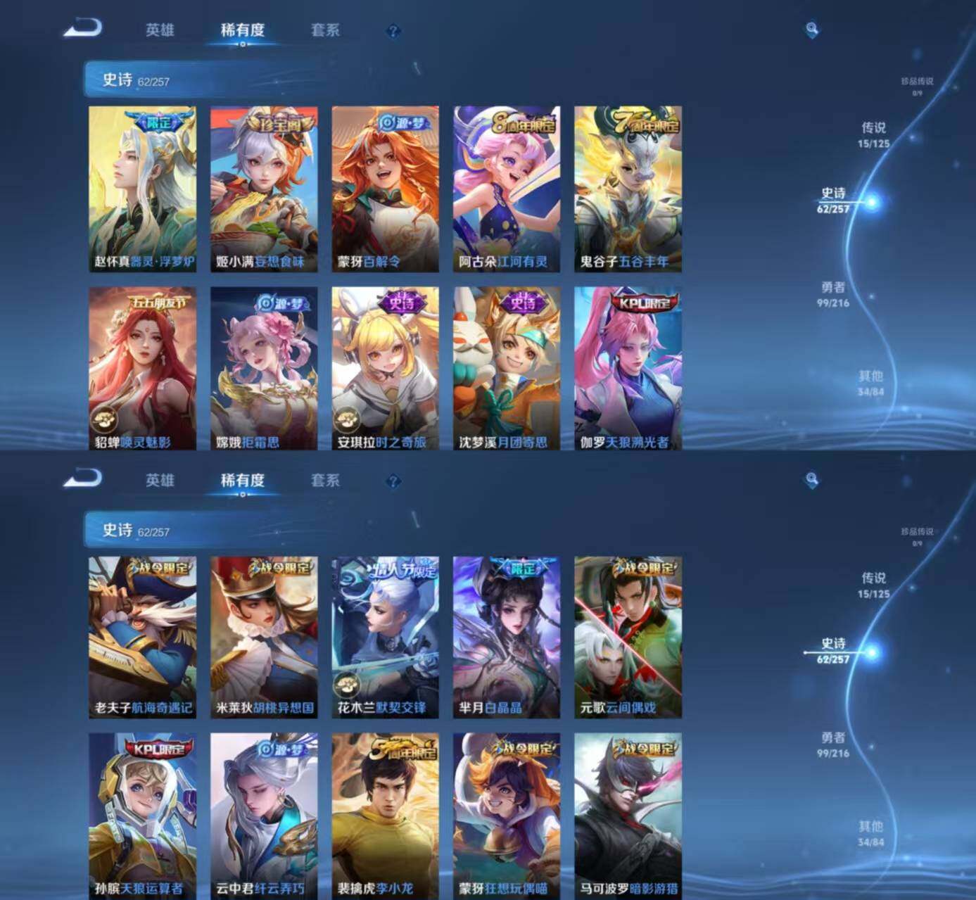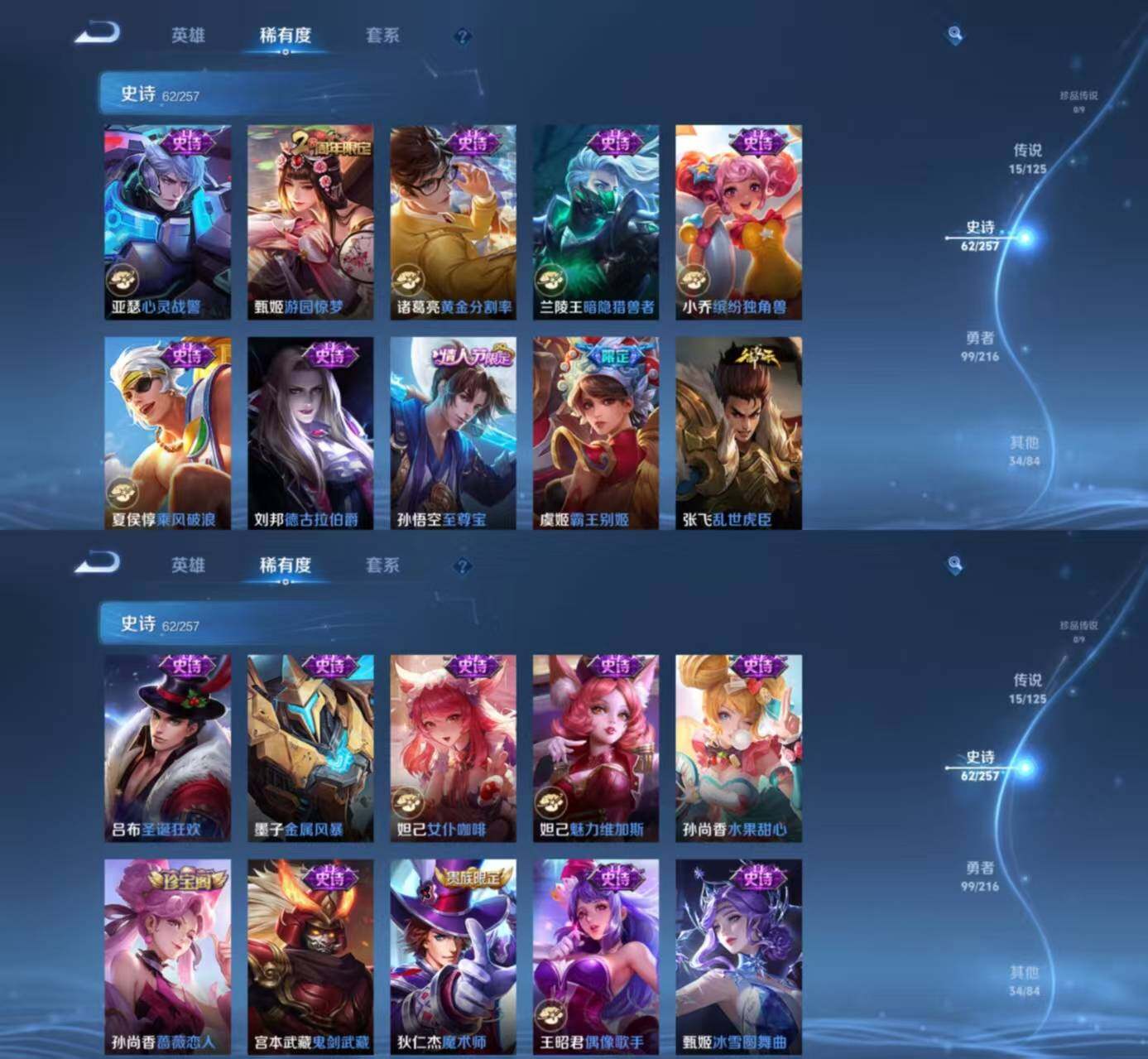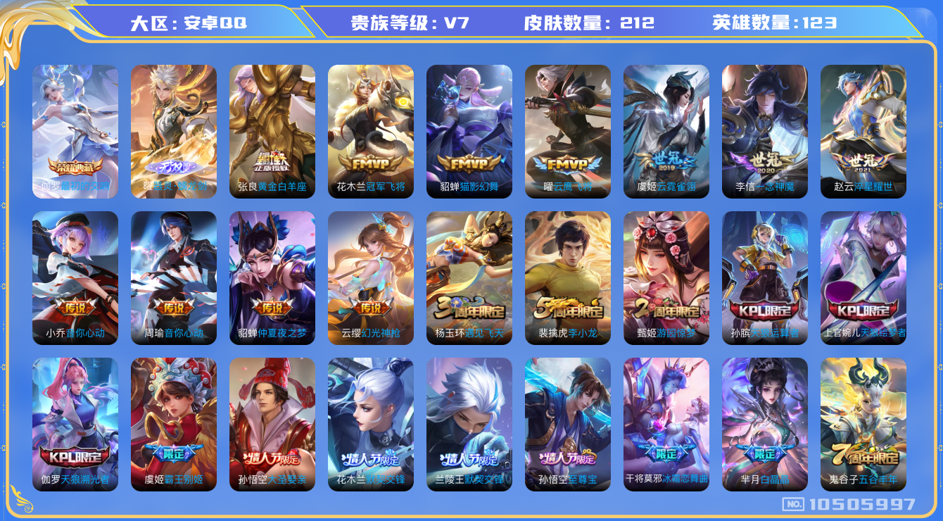 [10505997]【商品标题】:null-vnull-null段位-123英雄-212皮肤-1典藏-0珍品无双-1无双-0珍品传说-15传说-62史诗 【荣耀典藏】:伽罗最初的交响 【无双皮肤】:曜器灵螭龙剑 【内测皮肤】:孙尚香蔷薇恋人,狂铁特工战影 【传说皮肤】:貂蝉仲夏夜之梦,花木兰冠军飞将,虞姬云霓雀翎,张良黄金白羊座,貂蝉猫影幻舞,李信一念神魔,曜云鹰飞将,兰陵王默契交锋,小乔音你心动,周瑜音你心动,赵云淬星耀世,桑启鸣野蒿,云缨幻光神呛,虞姬愿照岁时盈,妲己愿照众生和 【限定皮肤】:狄仁杰阴阳师,赵云皇家上将,墨子神迹守卫,孙尚香蔷薇恋人,阿轲迷踪丽影,孙膑天狼运算者,芈月白晶晶,元歌云间偶戏,甄姬游园惊梦,马可波罗暗影游猎,狄仁杰魔术师,狄仁杰万华元夜,达摩星际陆战队,达摩沙漠行僧,项羽海滩派对,老夫子醍醐杖,老夫子航海奇遇记,程咬金演武夺筹,刘邦夺宝奇兵,兰陵王默契交锋,兰陵王金庭之子,花木兰默契交锋,亚瑟潮玩骑士王,孙悟空至尊宝,孙悟空大圣娶亲,虞姬霸王别姬,钟馗驱傩正仪,杨玉环遇见飞天,干将莫邪冰霜恋舞曲,雅典娜单词大作战,蔡文姬繁星吟游,鬼谷子原初探秘者,鬼谷子五谷丰年,苏烈千军破阵,弈星混沌棋,沈梦溪大漠名商,明世隐疑决卦,裴擒虎李小龙,裴擒虎擒涛扼浪,米莱狄胡桃异想国,云中君纤云弄巧,伽罗天狼溯光者,猪八戒西部大镖客,上官婉儿天狼绘梦者,嫦娥拒霜思,蒙犽狂想玩偶喵,鲁班大师探海日志,阿古朵江河有灵,张良古海寻踪,蒙犽百解令,鬼谷子天穹祈灯,姬小满妄想食味 【赛季限定】:狄仁杰万华元夜,达摩沙漠行僧,老夫子醍醐杖,程咬金演武夺筹,兰陵王金庭之子,张良古海寻踪,钟馗驱傩正仪,鬼谷子原初探秘者,苏烈千军破阵,弈星混沌棋,沈梦溪大漠名商,明世隐疑决卦,裴擒虎擒涛扼浪,鲁班大师探海日志,鬼谷子天穹祈灯 【战令限定】:墨子神迹守卫,阿轲迷踪丽影,元歌云间偶戏,马可波罗暗影游猎,达摩星际陆战队,老夫子航海奇遇记,刘邦夺宝奇兵,亚瑟潮玩骑士王,雅典娜单词大作战,米莱狄胡桃异想国,猪八戒西部大镖客,蒙犽狂想玩偶喵 【史诗皮肤】:赵云皇家上将,貂蝉圣诞恋歌,甄姬冰雪圆舞曲,王昭君偶像歌手,狄仁杰魔术师,宫本武藏鬼剑武藏,孙尚香蔷薇恋人,孙尚香水果甜心,妲己魅力维加斯,妲己女仆咖啡,墨子金属风暴,吕布圣诞狂欢,张飞乱世虎臣,虞姬霸王别姬,孙悟空至尊宝,刘邦德古拉伯爵,夏侯惇乘风