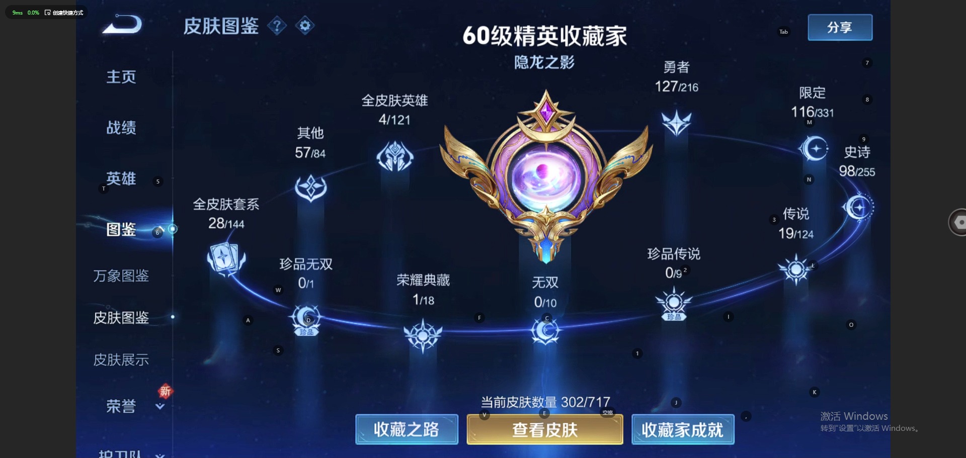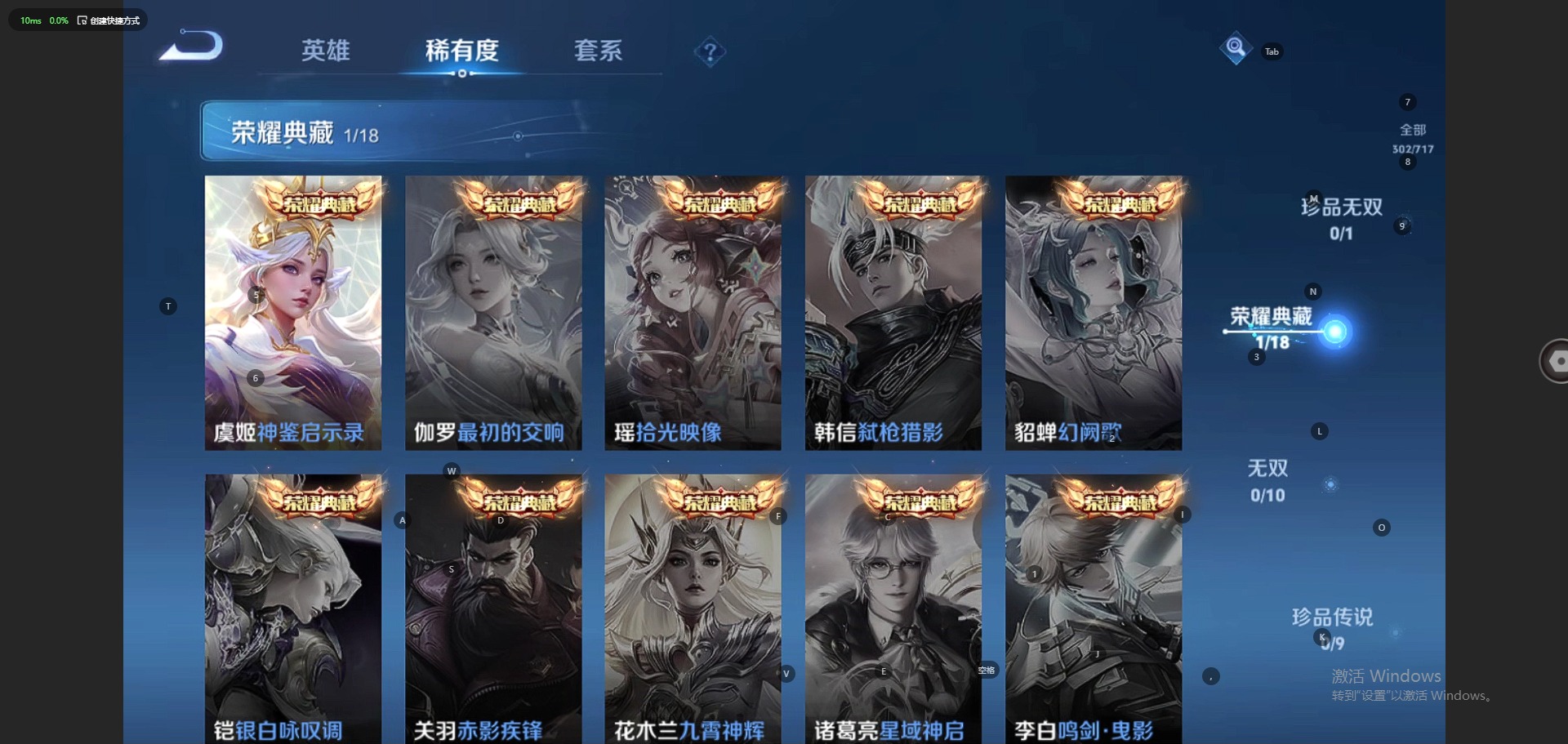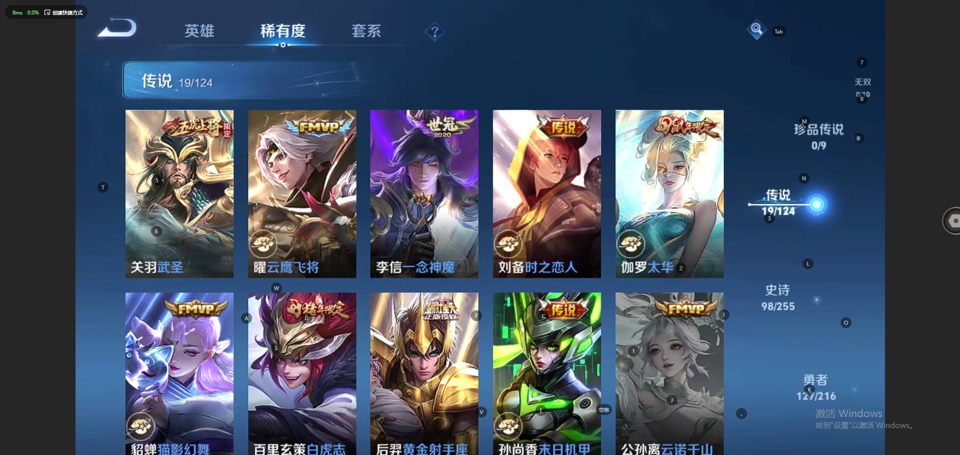 v8 1典藏 19传说 125英雄 302皮肤 可修改实名 荣耀水晶:神鉴启示录 传说皮:琥珀纪元马超幻光神呛黄金射手座零号·赤焰末日机甲-孙尚香绿蚂蚱一念神魔猫影幻舞云鹰飞将小将军炽阳神光时之恋人-刘备电焊工电玩·雷克斯妄想实况 珍宝阁皮:妄想食味蔷薇恋人 限定
