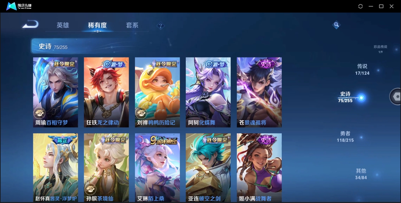 [10516809]【编号07397 v8】【125英雄246皮肤】【美女专用号1典藏1珍品传说17传说1星传说】幽冥之眼 幻阙歌 朽木白哉 炽阳神光 地狱之眼 无双飞将 山海·苍雷引 灼幽烈阳 启明星使 玄雷天君 幻光神呛 祥瑞亨通 星之鸣奏 飞衡 逐梦之翼 高山流水 傲雪梅呛 寅虎·心曲 百木心呛 深海之息 五谷丰年 绯月行 神器·万象笔 夏侯惇霜北刀 鸣野蒿 陌上桑 逐霄战戟 愿照·千秋盛 愿照·岁时盈 愿照·九州拓 月团寄思 水晶猎龙者 金属风暴 鹰眼统帅 特工魅影 魅力维加斯 星夜王子 千年之狐 永昼 滕王阁序 无心 未来纪元-赵云 高渐离燃音魔法 琥珀纪元伽罗 超元猎域 蔬乡物语鲁班七号 海诺心动手记 埋骨钱 蒙犽顽岩魄 东方月初 涂山红红 战舞者 破空之剑 茶境仙 器灵·浮梦炉 狼魂孤将 化蝶舞 鸭鸭历险记-刘禅 龙之律动 百相守梦-周瑜