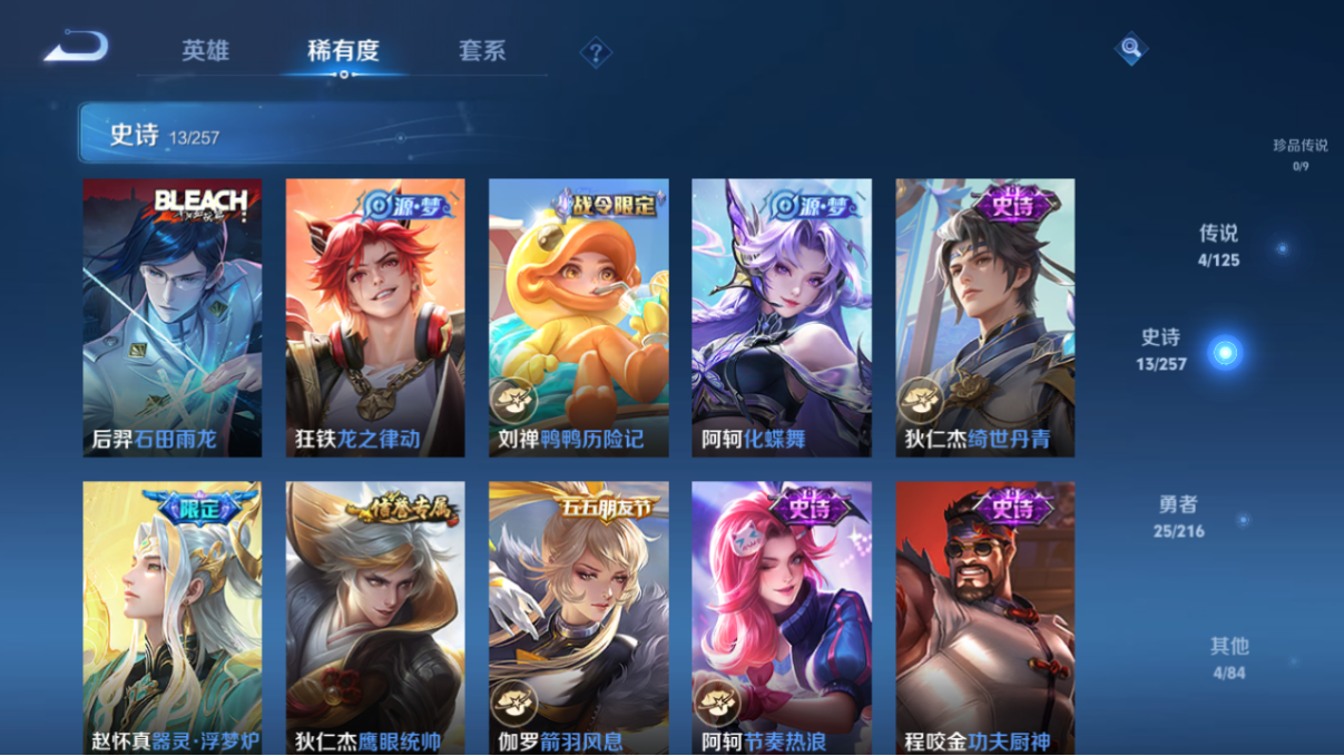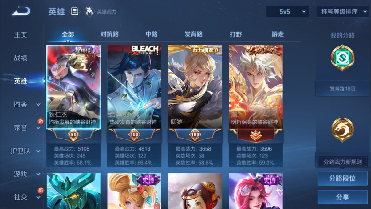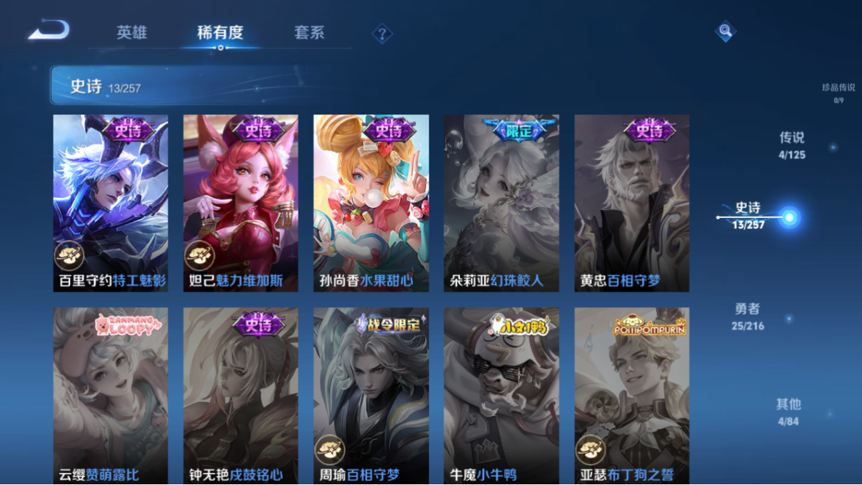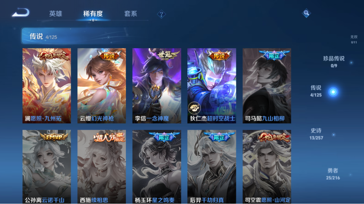lc614553 【v4-1星传说4传说8按键13史诗46皮肤】 营地id1614337908 英雄数量61 皮肤数量46 传说皮肤数量4 【安卓qq】 【可二次实名】 【v4】 当前段位1 星元皮肤1 传说皮肤4 当前段位:星耀; 星元皮肤:狄仁杰_星际治安官; 传说皮肤:澜_愿照九州拓,狄仁杰_超时空战,云缨_幻光神呛,李信_一念神魔;