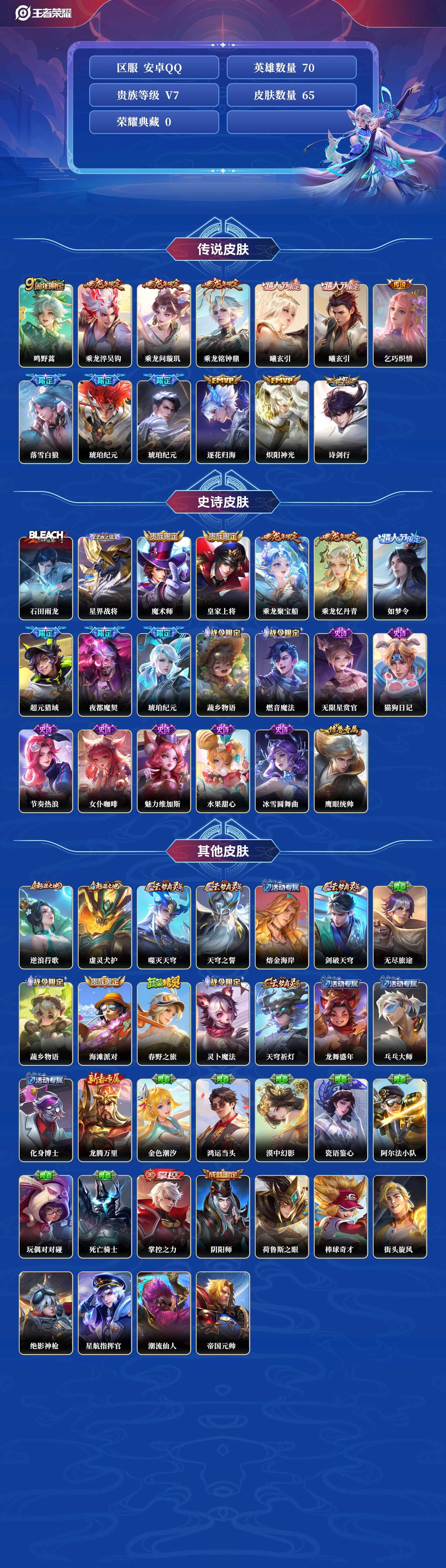 [10574433]0abbmk可二次"传说13优质限定14 无设备脸 钱包已注销 信用分正常 传说限定:吕布曦玄引落雪白狼乘龙·淬吴钩琥珀纪元马超乘龙·铭钟鼎琥珀纪元铠貂蝉曦玄引乘龙·问璇玑 传说皮肤:澜逐花归海乞巧织情诗剑行炽阳神光鸣野蒿 新史诗限定:乘龙·忆丹青 史诗限定:曹操夜都魔契超元猎域乘龙·聚宝船如梦令-后羿琥珀纪元伽罗 新史诗皮肤:石田雨龙 史诗皮肤:猫狗日记-孙策节奏热浪魅力维加斯女仆咖啡冰雪圆舞曲水果甜心鹰眼统帅无限星赏官 "