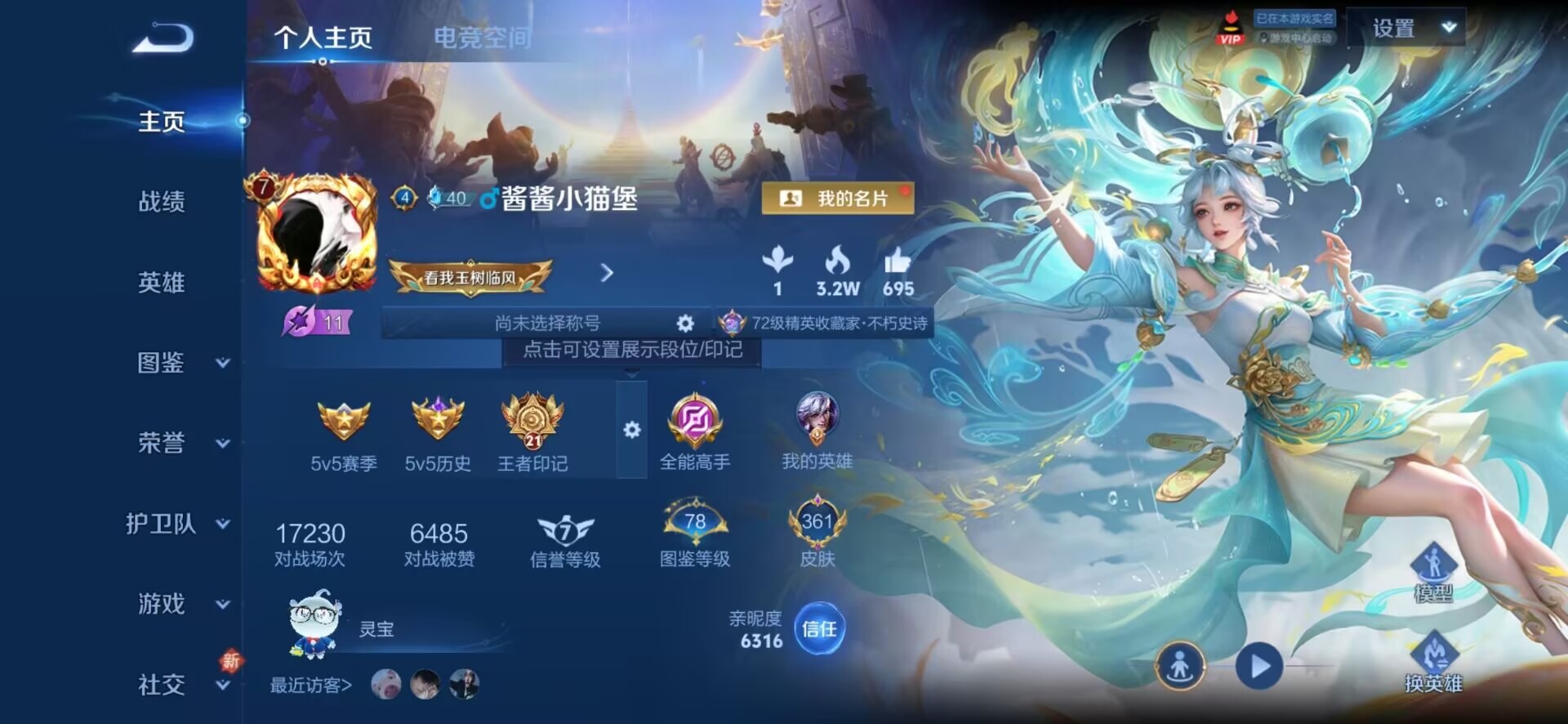 v7 1典藏 9传说 125英雄 361皮肤 可修改实名 荣耀水晶:银白咏叹调倪克斯侍卫 传说皮:云诺千山幻光神呛山海·炽霜斩李信年限地狱之眼澜逐花归海 珍宝阁皮:优雅恋人女武神玩趣恶龙 限定皮:愿照·九州拓澜年限愿照·岁时盈虞姬年限逐霄战戟鸣野蒿时雨天司水龙头