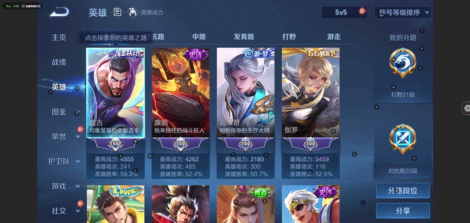 v5 5传说 123英雄 202皮肤 可修改实名 传说皮:幻光神呛地狱火久胜战神 珍宝阁皮:妄想食味蔷薇恋人女武神 限定皮:鸣野蒿至尊宝高山流水齐天大圣五谷丰年梁祝李小龙 史诗皮:星界战将蒙犽顽岩魄特工魅影电玩·爆裂旋风江河有灵蒙恬荣光圣徽猫狗日记-孙策乱世虎臣女