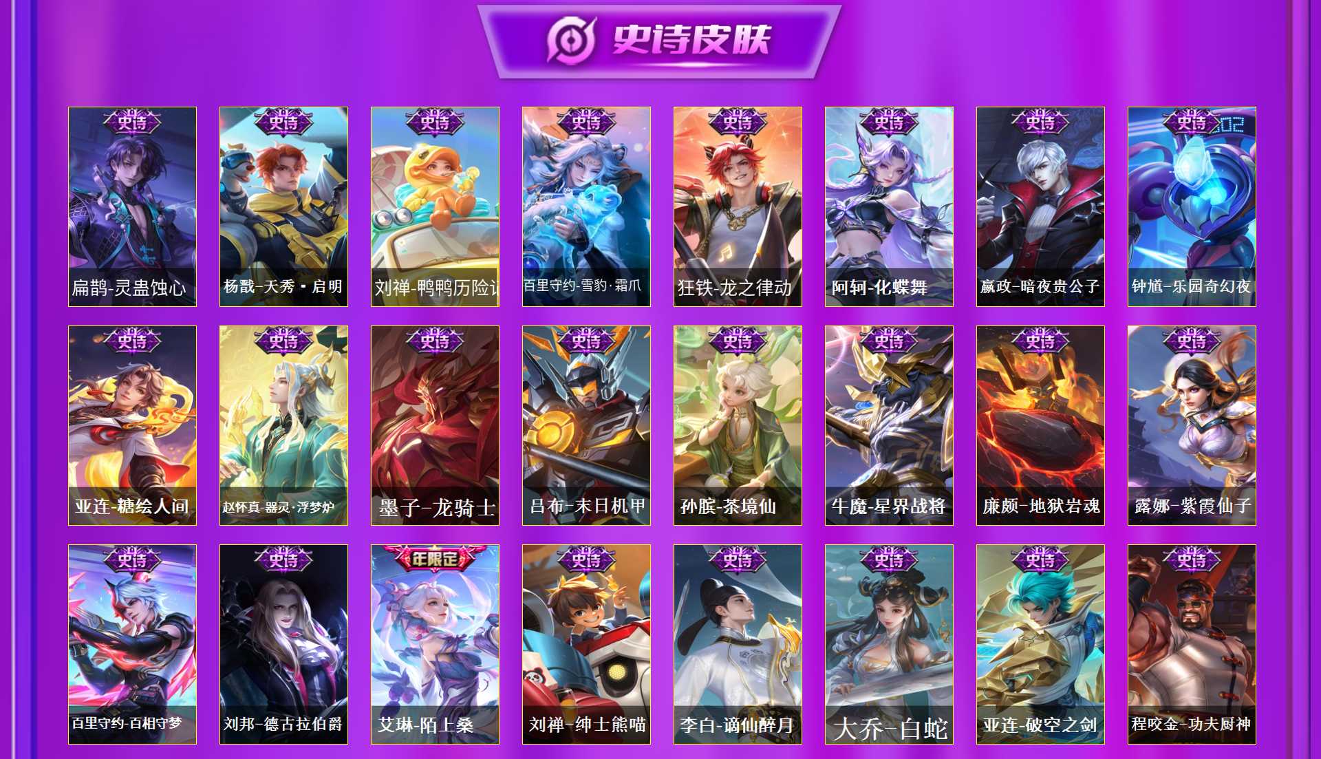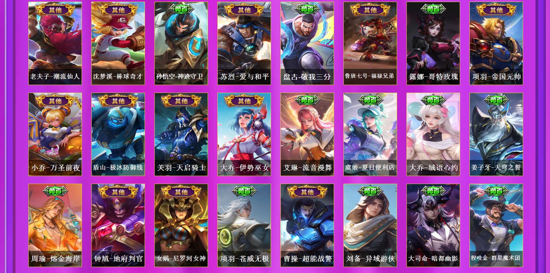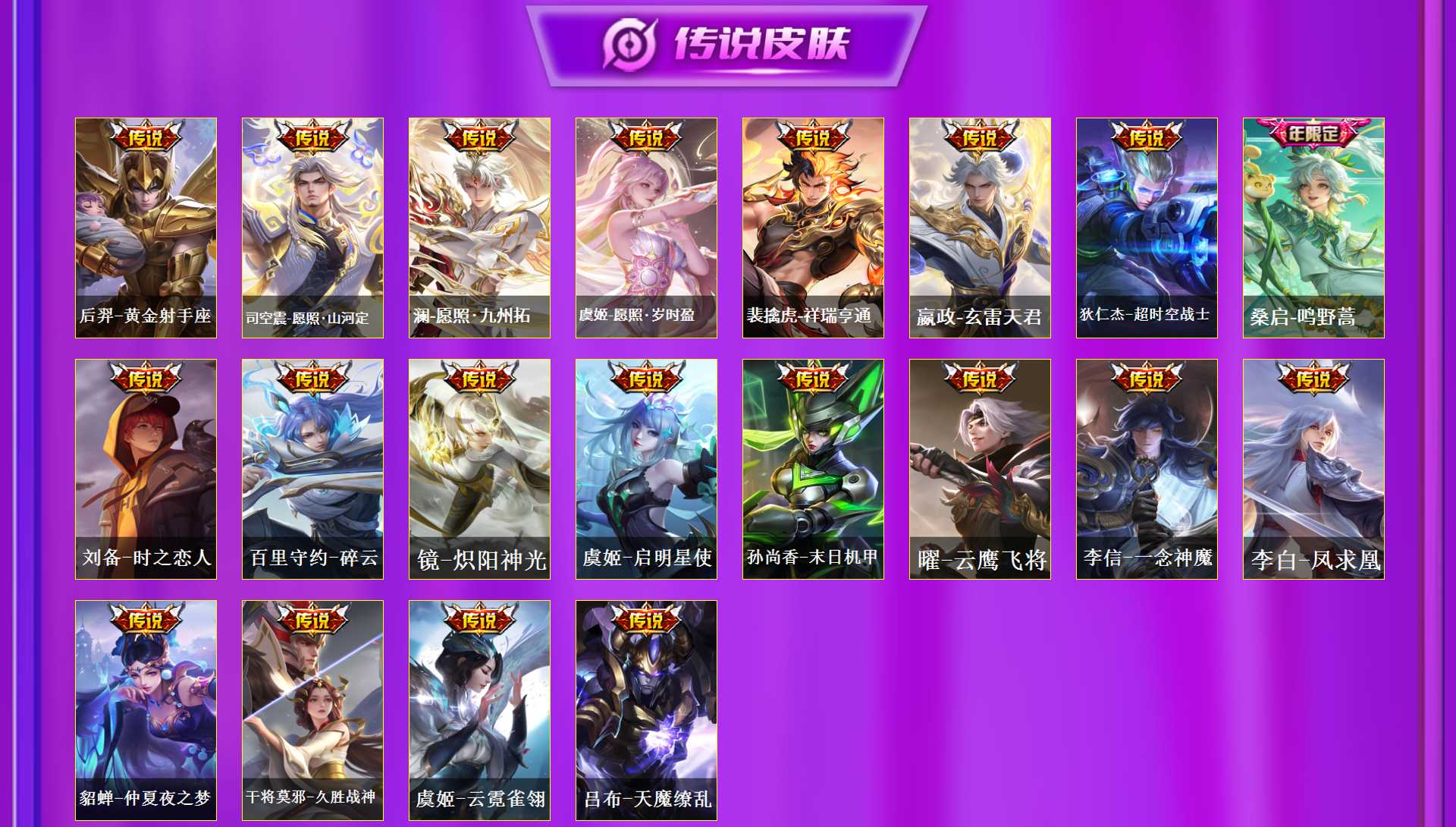 贵族7 荣耀典藏3 传说皮肤20 史诗皮肤109 英雄125 皮肤383 永恒钻石I