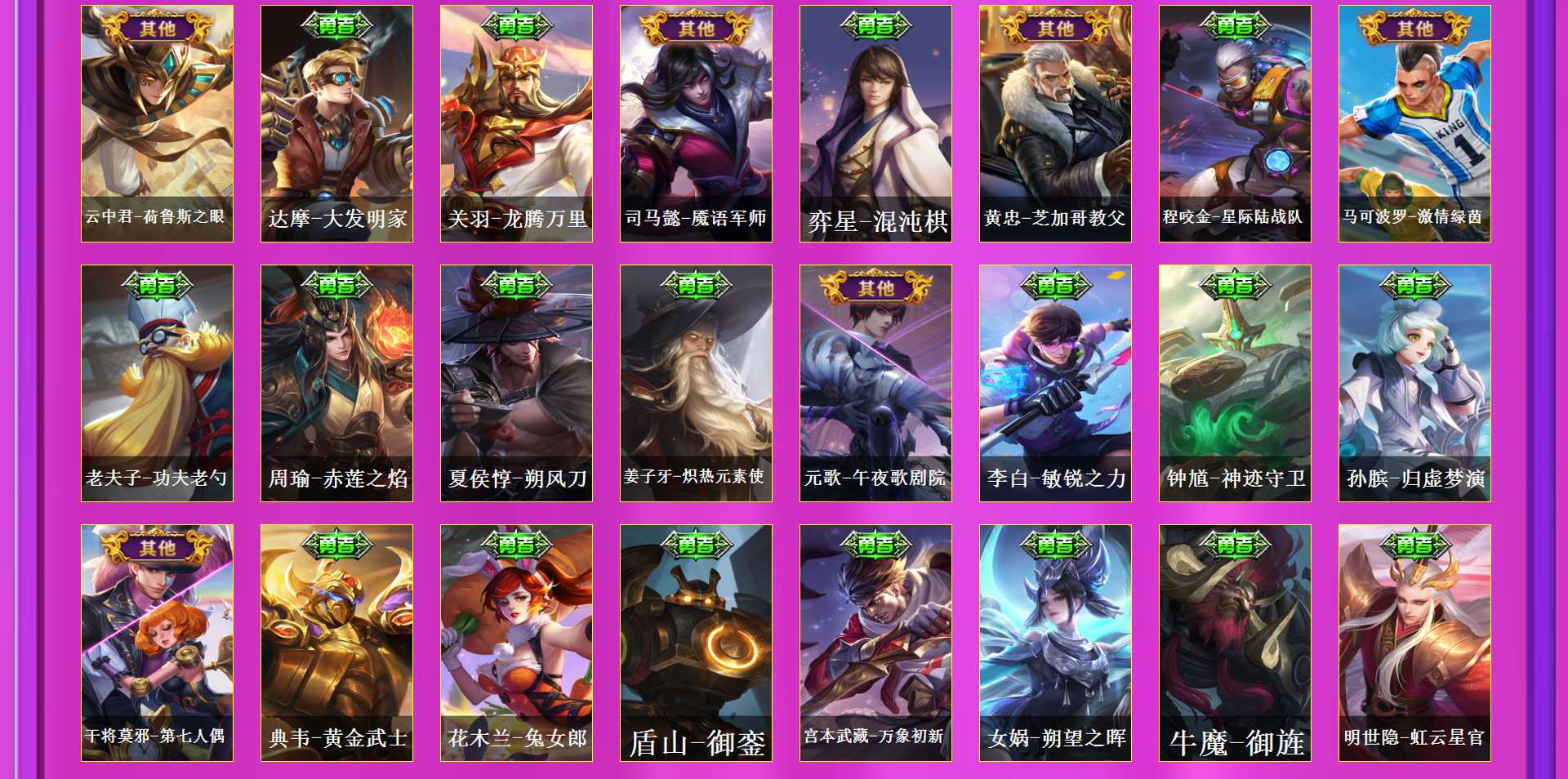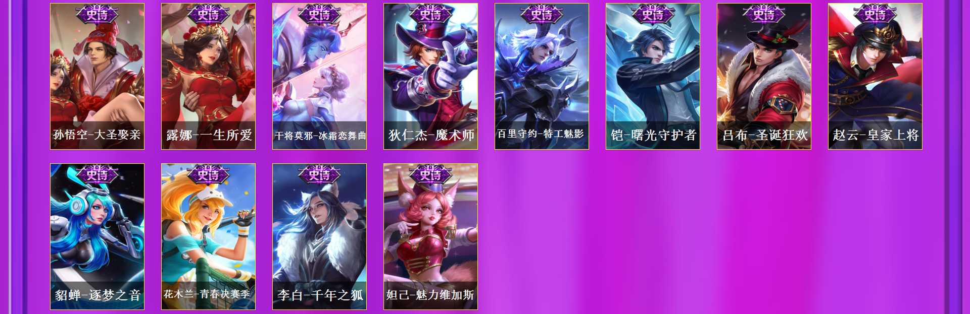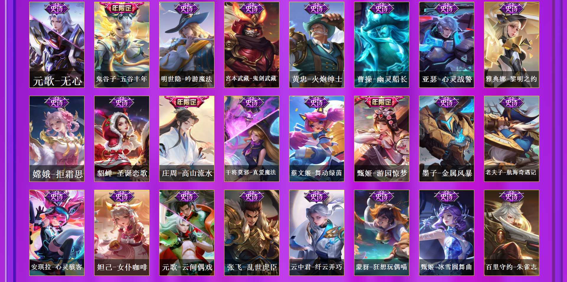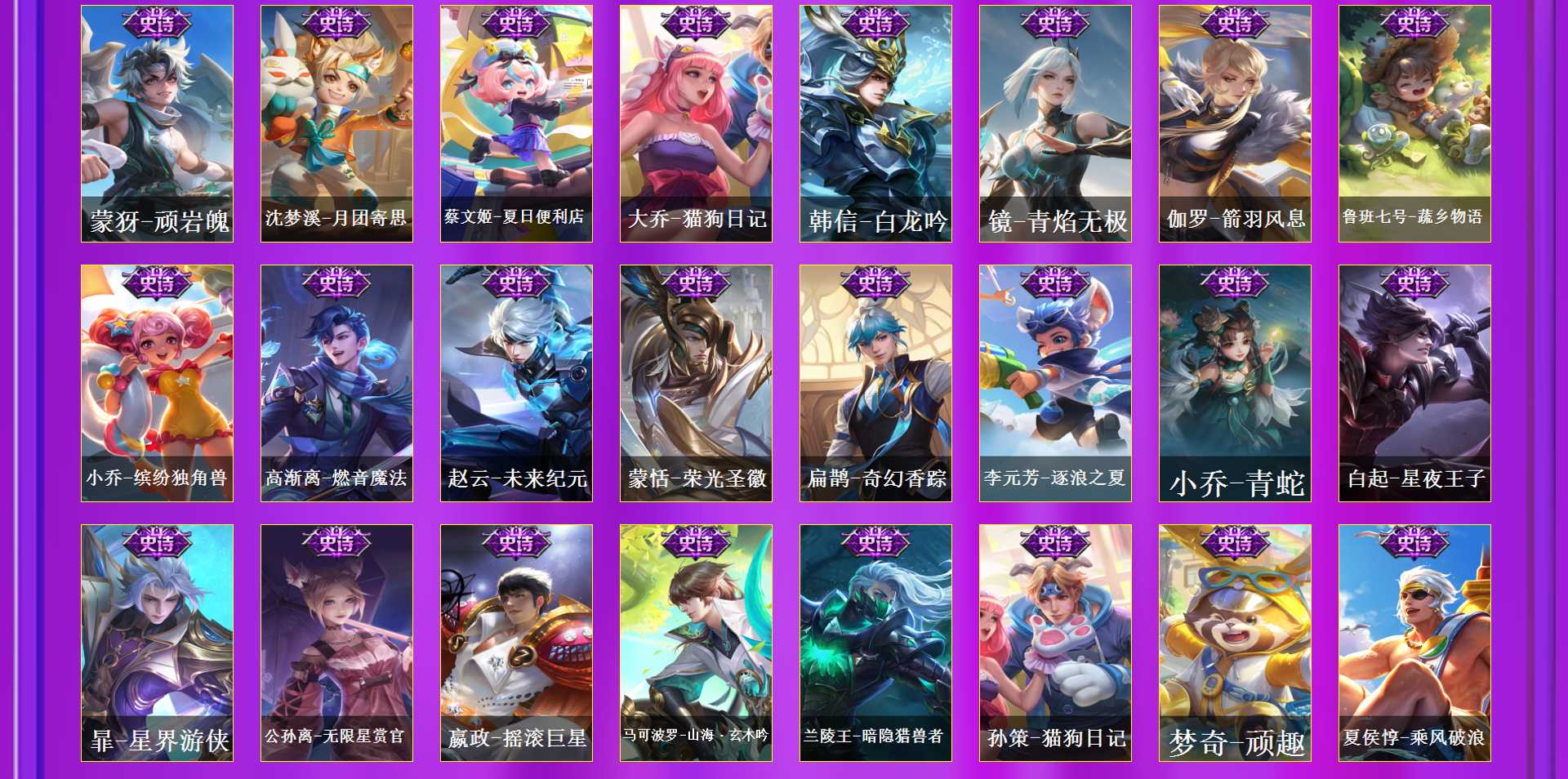 贵族7 荣耀典藏3 传说皮肤20 史诗皮肤109 英雄125 皮肤383 永恒钻石I