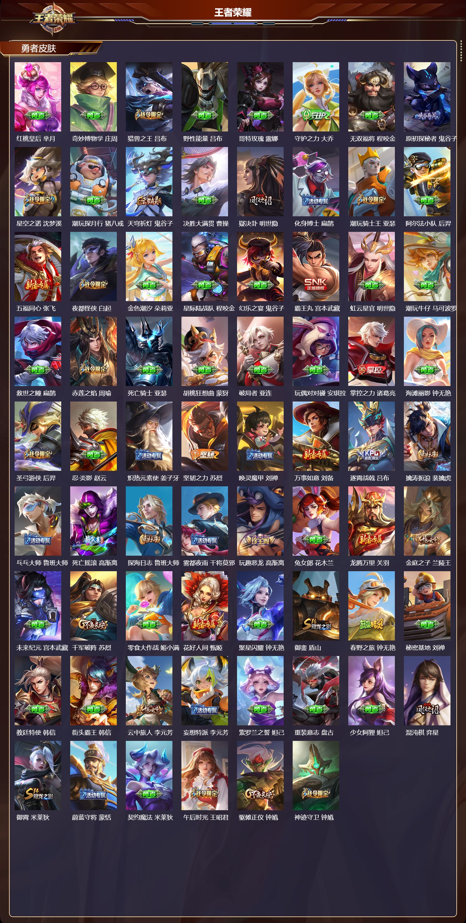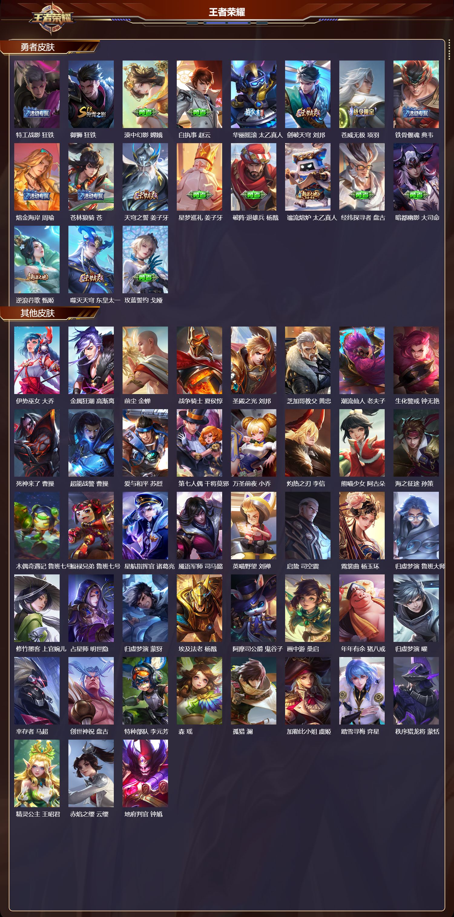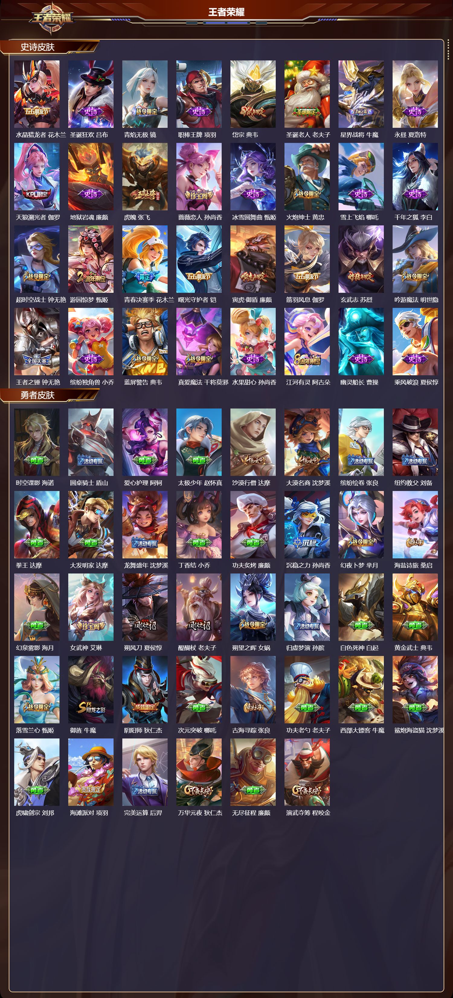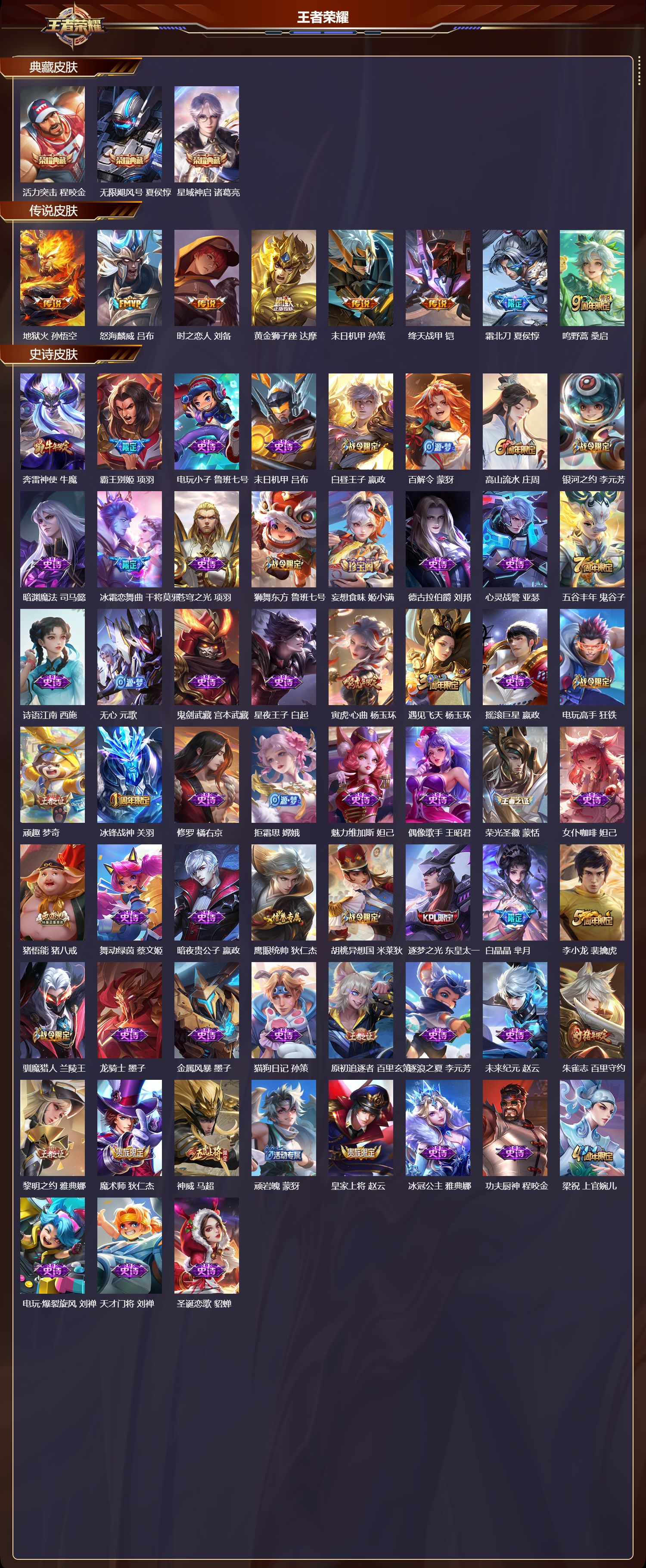 _2106395-q/最强王者/273皮肤/124英雄/3典藏/0珍品无双/0无双/0珍品传说/8传说/91史诗/8稀有英雄 【3典藏皮肤】活力突击程咬金无限飓风号夏侯惇星域神启诸葛亮 【8传说皮肤】地狱火孙悟空怒海麟威吕布时之恋人刘备黄金狮子座达摩末日机甲孙策绛天战甲铠霜北刀夏侯惇鸣野蒿桑启 【91史诗皮肤】奔雷神使牛魔霸王别姬项羽电玩小子鲁班七号末日机甲吕布白昼王子嬴政百解令蒙犽高山流水庄周银河之约李元芳暗渊魔法司马懿冰霜恋舞曲干将莫邪苍穹之光项羽狮舞东方鲁班七号妄想食味姬小满德古拉伯爵刘邦心灵战警亚瑟五谷丰年鬼谷子诗语江南西施无心元歌鬼剑武藏宫本武藏星夜王子白起寅虎·心曲杨玉环遇见飞天杨玉环摇滚巨星嬴政电玩高手狂铁顽趣梦奇冰锋战神关羽修罗橘右京拒霜思嫦娥魅力维加斯妲己偶像歌手王昭君荣光圣徽蒙恬女仆咖啡妲己猪悟能猪八戒舞动绿茵蔡文姬暗夜贵公子嬴政鹰眼统帅狄仁杰胡桃异想国米莱狄逐梦之光东皇太一白晶晶芈月李小龙裴擒虎驯魔猎人兰陵王龙骑士墨子金属风暴墨子猫狗日记孙策原初追逐者百里玄策逐浪之夏李元芳未来纪元赵云朱雀志百里守约黎明之约雅典娜魔术师狄仁杰神威马超顽岩魄蒙犽皇家上将赵云冰冠公主雅典娜功夫厨神程咬金梁祝上官婉儿电玩·爆裂旋风刘禅天才门将刘禅圣诞恋歌貂蝉水晶猎龙者花木兰圣诞狂欢吕布青焰无极镜职棒王牌项羽岱宗典韦圣诞老人老夫子星界战将牛魔永昼夏洛特天狼溯光者伽罗地狱岩魂廉颇虎魄张飞蔷薇恋人孙尚香冰雪圆舞曲甄姬火炮绅士黄忠雪上飞焰哪吒千年之狐李白超时空战士钟无艳游园惊梦甄姬青春决赛季花木兰曙光守护者铠寅虎·御盾廉颇箭羽风息伽罗玄武志苏烈吟游魔法明世隐王者之锤钟无艳缤纷独角兽小乔蓝屏警告典韦真爱魔法干将莫邪水果甜心孙尚香江河有灵阿古朵幽灵船长曹操乘风破浪夏侯惇 【127勇者皮肤】时空谍影海诺圆桌骑士盾山爱心护理阿轲太极少年赵怀真沙漠行僧达摩大漠名商沈梦溪缤纷绘卷张良纽约教父刘备拳王达摩大发明家达摩龙舞盛年沈梦溪丁香结小乔功夫炙烤廉颇沉稳之力孙尚香幻夜卜梦芈月海盐诗旅桑启幻泉雾影海月女武神艾琳朔风刀夏侯惇醍醐杖老夫子朔望之晖女娲归虚梦演孙膑白色死神白起黄金武士典韦落雪兰心甄姬御旌牛魔阴阳师狄仁杰次元突破哪吒古海寻踪张良功夫老勺老夫子西部大镖客牛魔鲨炮海盗猫沈梦溪虎啸剑宗刘邦海滩派对项羽完美运算后羿万华元夜狄仁杰无尽征程廉颇演武夺筹程咬金红桃皇后芈月奇妙博物学庄周猎兽之王吕布野性能量吕布哥特玫瑰露娜守护之力大乔无双福将程咬金原初探秘者鬼谷子星空之诺沈梦溪潮玩探月行猪八戒天穹祈灯鬼谷子决胜大满贯曹操疑决卦明世隐化身博士扁鹊潮玩骑士王亚瑟阿尔法小队后羿五福同心张飞夜都怪侠白起金色潮汐朵莉亚星际陆战队程咬金幻乐之宴鬼谷子霸王丸宫本武藏虹云星官明世隐潮玩牛仔马可波罗救世之瞳扁鹊赤莲之焰周瑜死亡骑士亚瑟胡桃狂想曲蒙犽破局者亚连玩偶对对碰安琪拉掌控之力诸葛亮海滩丽影钟无艳圣弓游侠后羿忍·炎影赵云炽热元素使姜子牙坚韧之力苏烈唤灵魔甲刘禅万事如意刘备逐霄战戟吕布擒涛扼浪裴擒虎乓乓大师鲁班大师死亡摇滚高渐离探海日志鲁班大师雾都夜雨干将莫邪玩趣恶龙高渐离兔女郎花木兰龙腾万里关羽金庭之子兰陵王未来纪元宫本武藏千军破阵苏烈零食大作战姬小满花好人间甄姬聚星闪耀钟无艳御銮盾山春野之旅钟无艳秘密基地刘禅教廷特使韩信街头霸王韩信云中旅人李元芳妄想特派李元芳紫罗兰之誓妲己重装意志盘古少女阿狸妲己混沌棋弈星御霄米莱狄蔚蓝守将蒙恬契约魔法米莱狄午后时光王昭君驱傩正仪钟馗神迹守卫钟馗特工战影狂铁御狮狂铁漠中幻影嫦娥白执事赵云华丽摇滚太乙真人剑破天穹刘邦苍威无极项羽铁骨偃魂典韦熔金海岸周瑜苍林狼骑苍天穹之誓姜子牙星梦巡礼姜子牙破阵·退雄兵杨戬谧流熔炉太乙真人经纬探寻者盘古暗都幽影大司命逆浪荇歌甄姬噬灭天穹东皇太一玫蓝誓约戈娅 【43其他皮肤】伊势巫女大乔金属狂潮高渐离前尘金蝉战争骑士夏侯惇圣殿之光刘邦芝加哥教父黄忠潮流仙人老夫子生化警戒钟无艳死神来了曹操超能战警曹操爱与和平苏烈第七人偶干将莫邪万圣前夜小乔灼热之刃李信熊喵少女阿古朵海之征途孙策木偶奇遇记鲁班七号福禄兄弟鲁班七号星航指挥官诸葛亮魇语军师司马懿英喵野望刘禅启蛰司空震霓裳曲杨玉环归虚梦演鲁班大师修竹墨客上官婉儿占星师明世隐归虚梦演蒙犽埃及法老杨戬阿摩司公爵鬼谷子画中游桑启年年有余猪八戒归虚梦演曜幸存者马超创世神祝盘古特种部队李元芳森瑶孤猎澜加勒比小姐虞姬踏雪寻梅弈星秩序猎龙将蒙恬精灵公主王昭君赤焰之缨云缨地府判官钟馗 【8稀有英雄】嬴政不知火舞橘右京夏洛特娜可露露韩信艾琳赵云 营地id:546304257