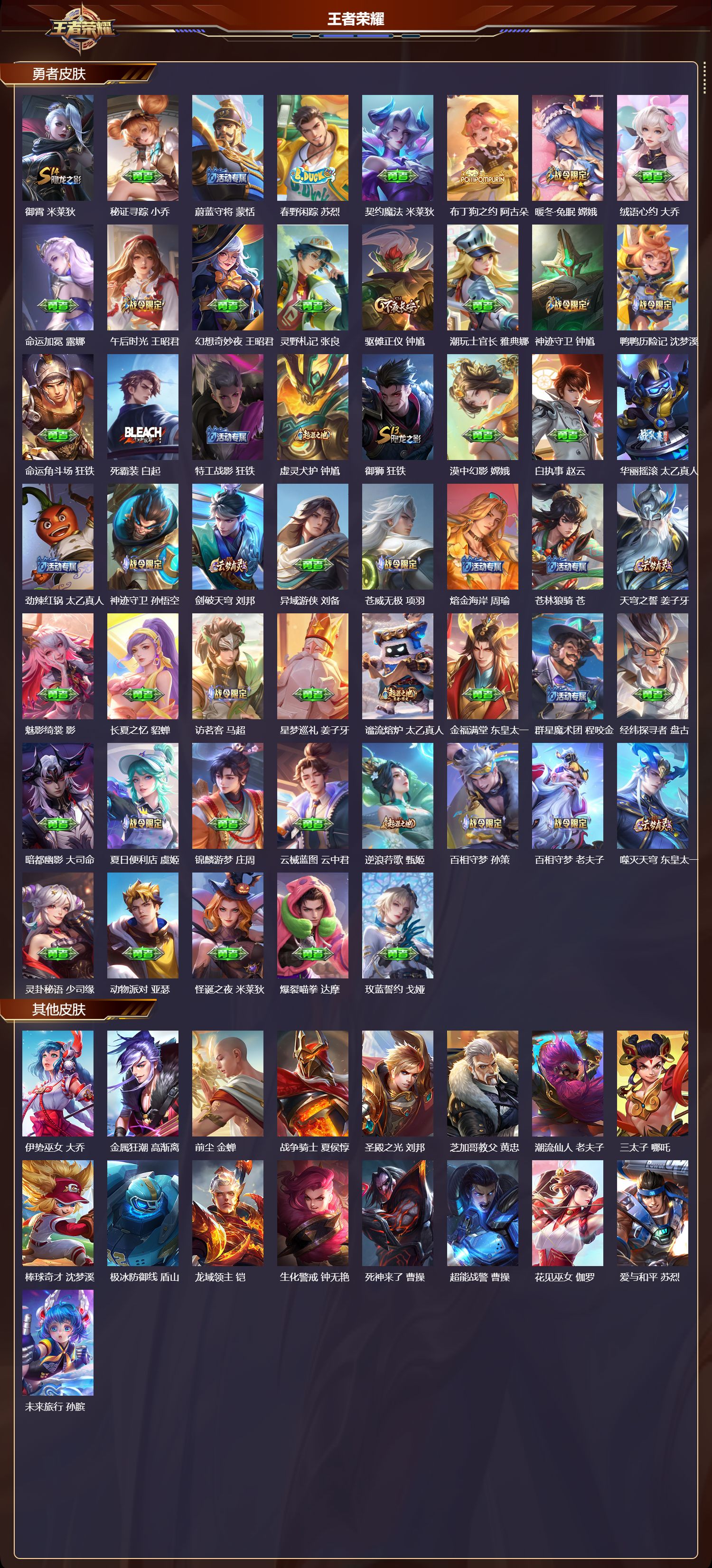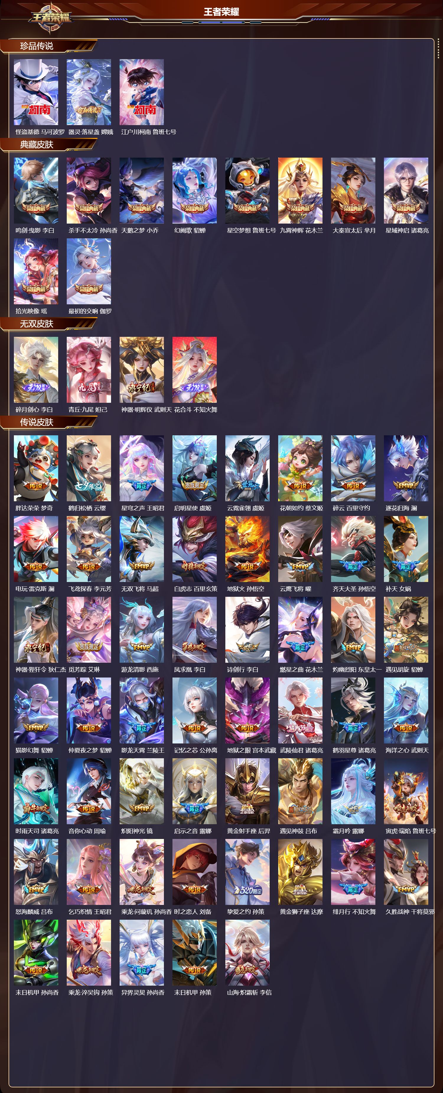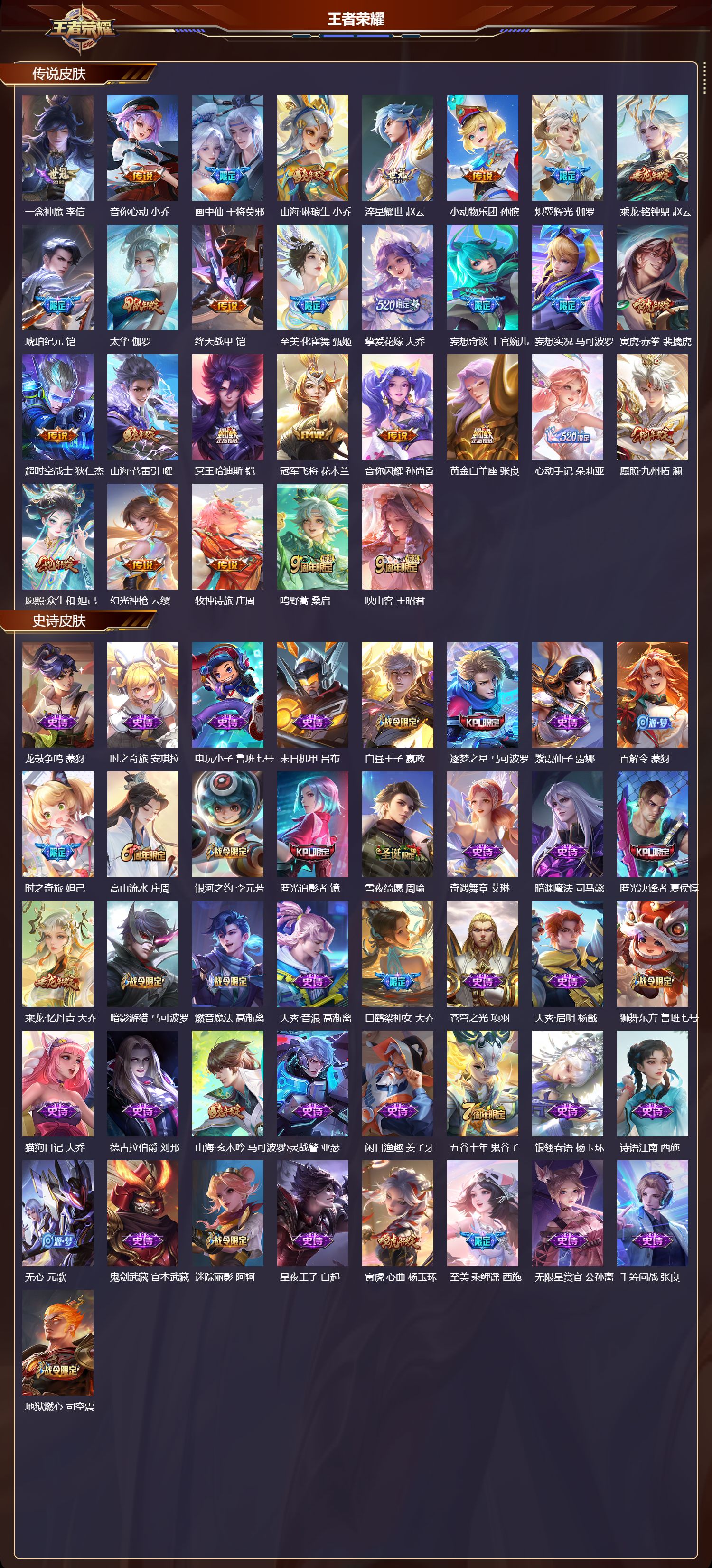 苹果qq/至尊星耀/553皮肤/126英雄/10典藏/0珍品无双/4无双/3珍品传说/82传说/196史诗/10稀有英雄