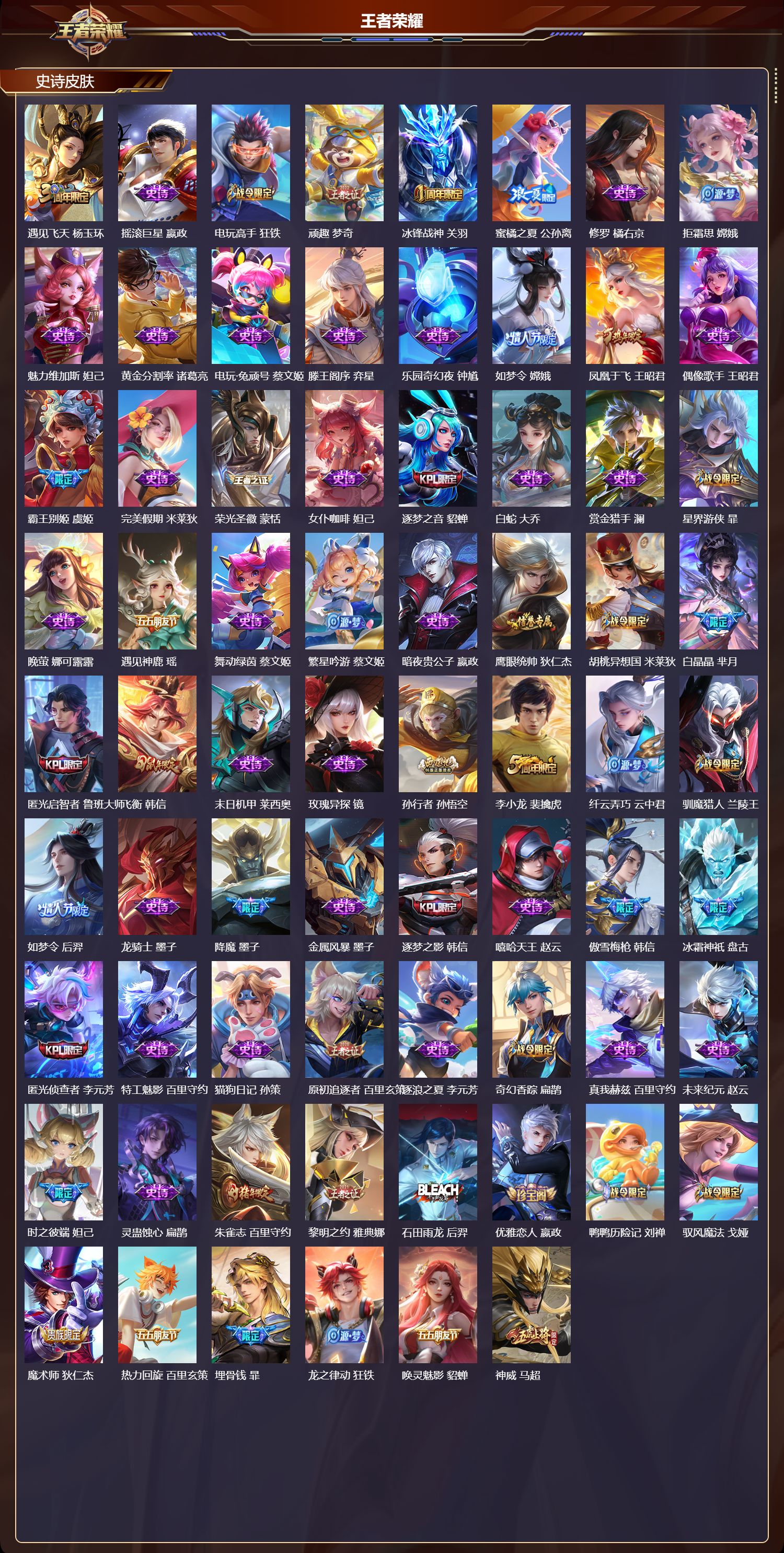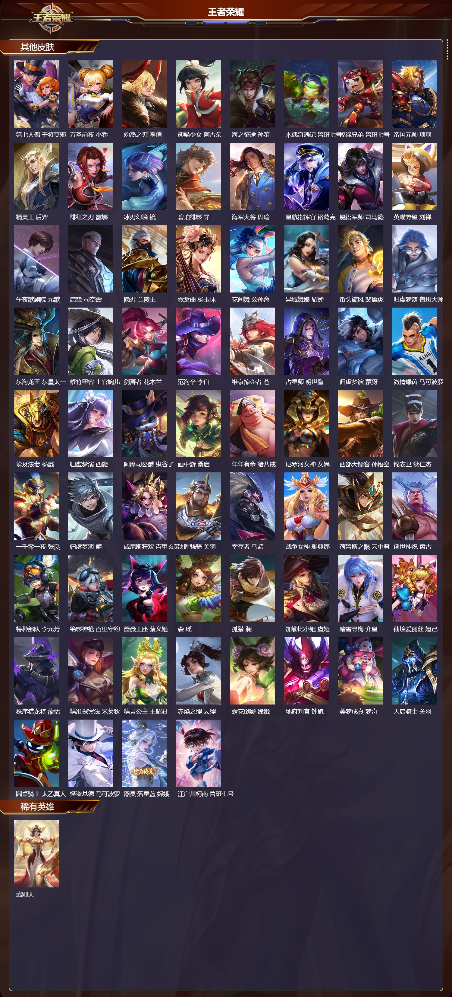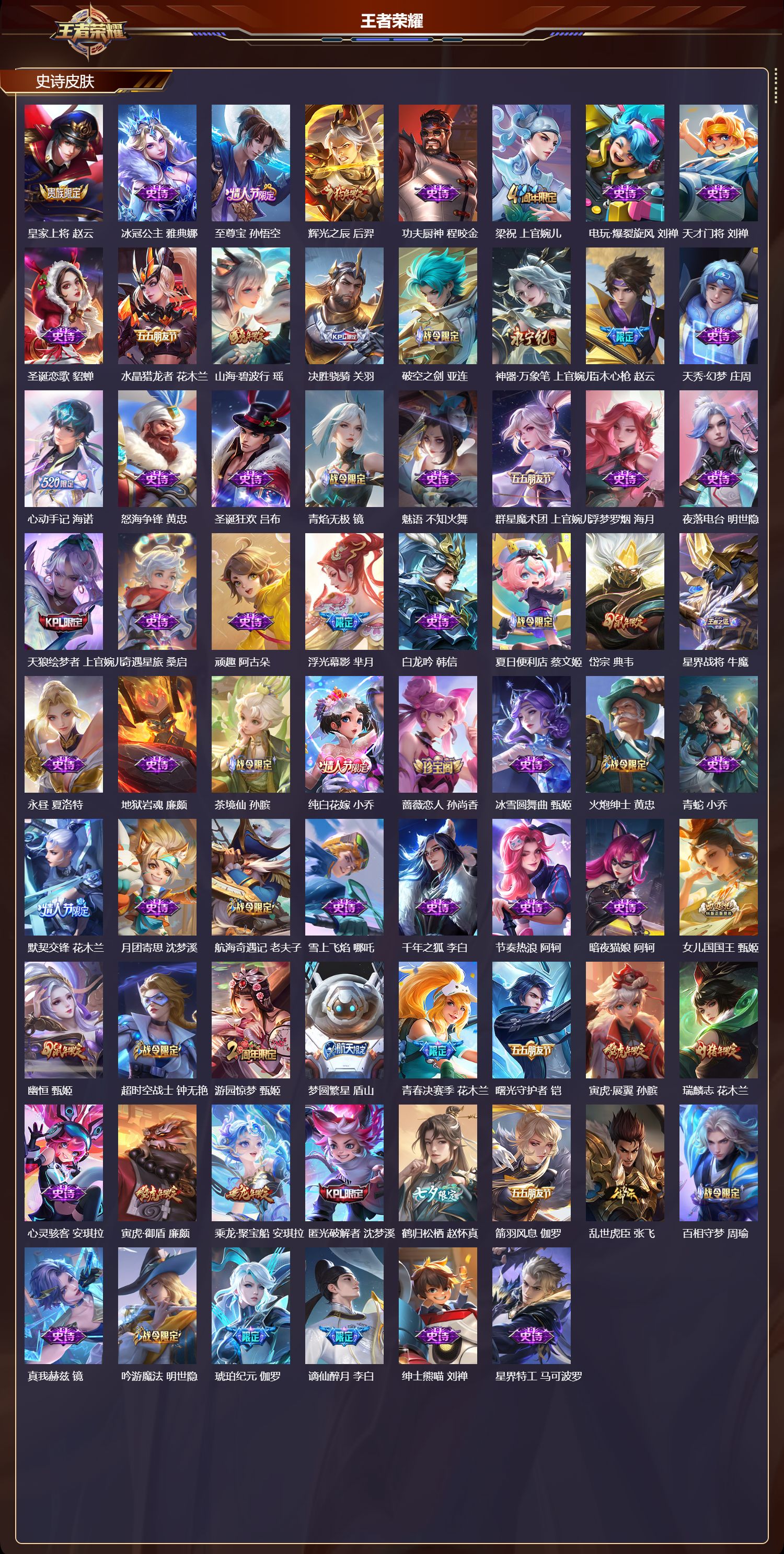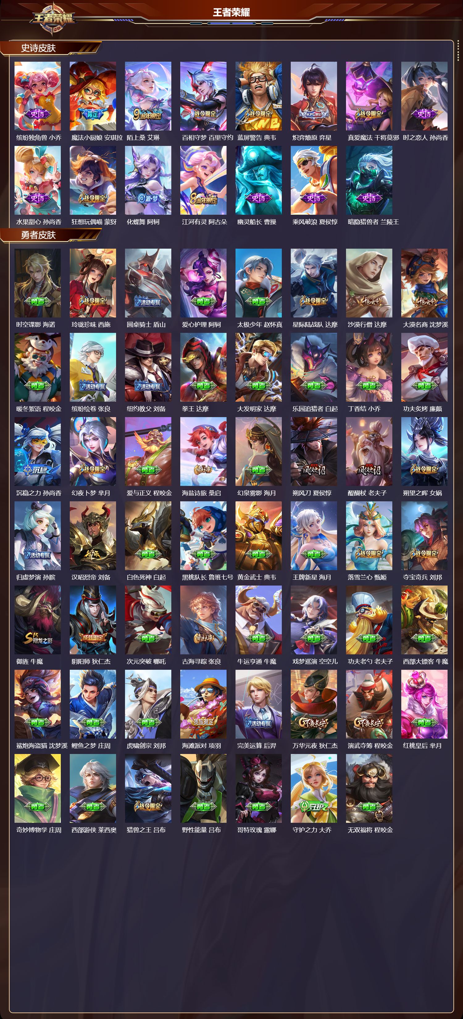 苹果qq/至尊星耀/553皮肤/126英雄/10典藏/0珍品无双/4无双/3珍品传说/82传说/196史诗/10稀有英雄