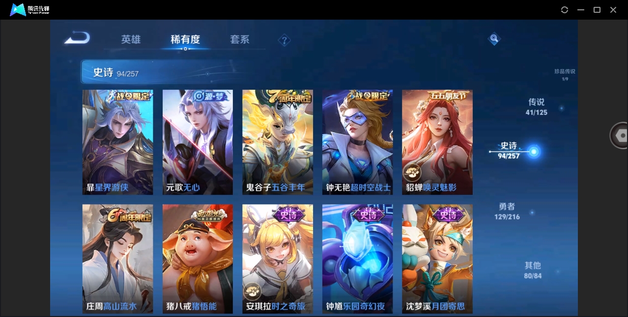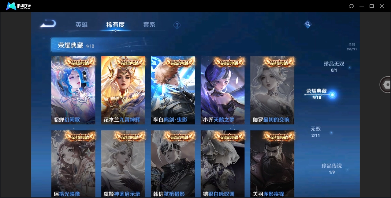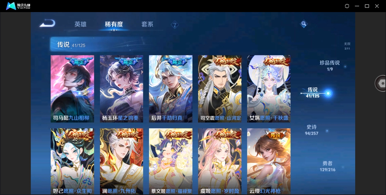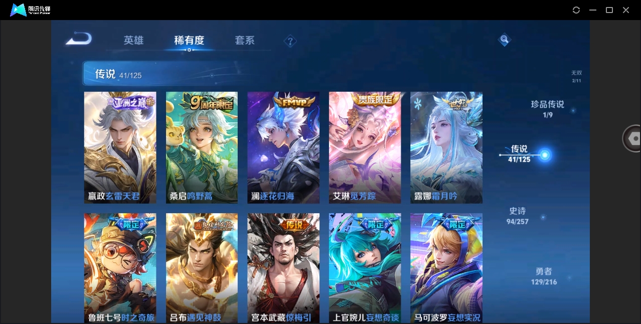 [10626051]【编号97220 v10】【125英雄351皮肤】【4典藏2无双1珍品传说41传说1星传说2传说天幕 司马懿新皮肤 蛇年套】闪耀亚洲天幕 共赏芳华天幕 星际治安官 天鹅之梦 鸣剑·曳影 九霄神辉 幻阙歌 雪境奇遇-甄姬 器灵·螭龙剑 器灵·落星盏 黄金狮子座 云鹰飞将 绛天战甲 猫影幻舞 久胜战神 炽阳神光 一念神魔 云霓雀翎 末日机甲-孙尚香 地狱火 仲夏夜之梦 音你心动-小乔 地狱之眼 乞巧织情 超时空战士-狄仁杰 无双飞将 山海·炽霜斩 浮生妄 记忆之芯 鹤羽星尊 妄想实况 妄想奇谈 惊梅引 遇见神鼓 鲁班七号-时之奇旅 霜月吟 澜逐花归海 艾琳觅芳踪 启明星使 玄雷天君 幻光神呛 星之鸣奏 千劫归真 九山相柳