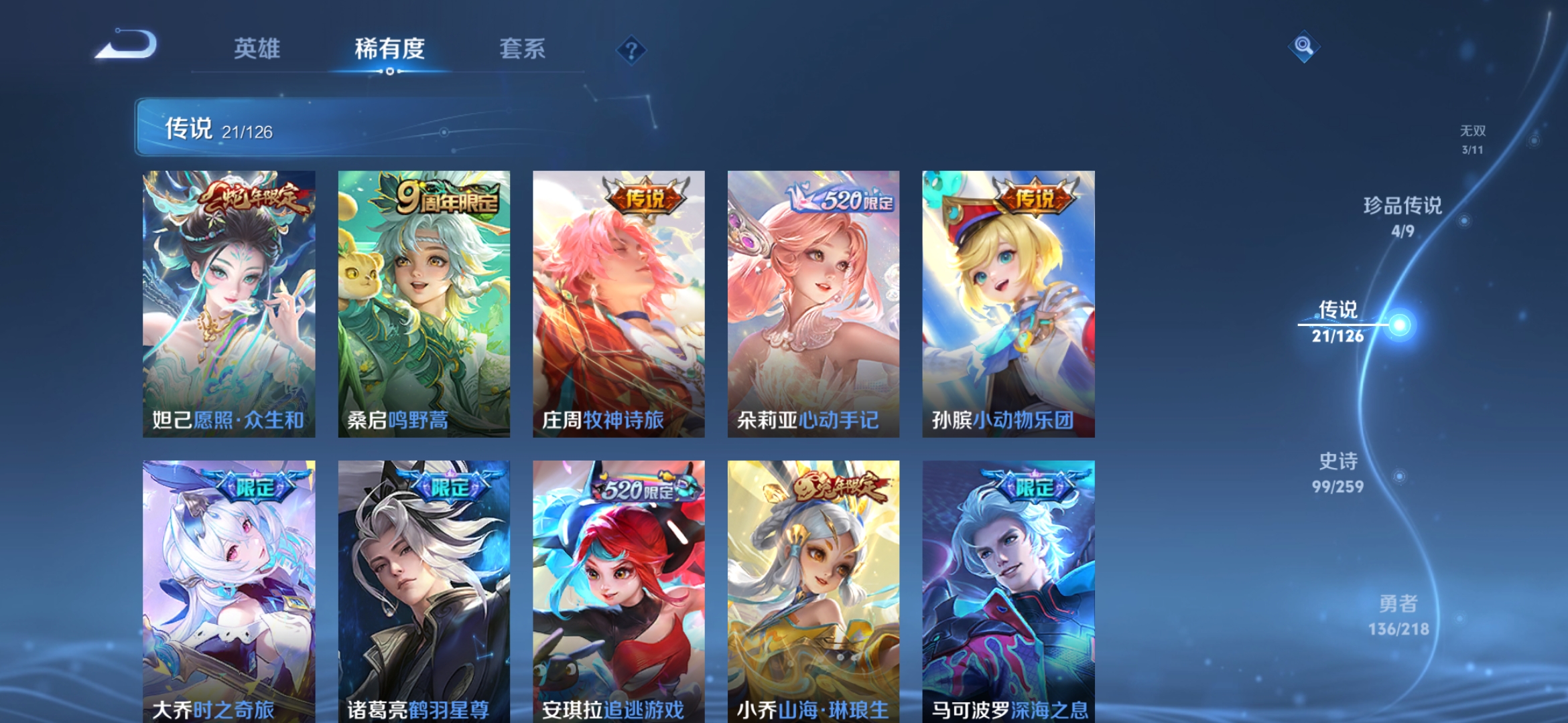 [10674632]实名: 可修改 贵族等级: v9 英雄数: 125 皮肤数: 342 荣耀水晶: 天鹅之梦幻阙歌 无双皮: 真我赫兹瑶青丘·九尾小乔时之魔女 珍品传说: 器灵·落星盏兔狲·蓬尾酷洛米之心大耳狗之梦 星传说: 时之愿境未来机甲金色仲夏夜 传说皮: 冠军飞将云鹰飞将猫影幻舞末日机甲-孙尚香仲夏夜之梦音你心动-小乔游龙清影花朝如约山海·琳琅生青丘·九尾追逃游戏安琪拉鹤羽星尊大乔-时之奇旅小动物乐团朵莉亚心动手记牧神诗旅 限定皮: 遇见飞天祈雪灵祝白鹤梁神女烈魂魔法小厨娘时之彼端奇迹圣诞逐梦之音寅虎·御盾如梦令-嫦娥纯白花嫁高山流水寅虎·心曲寅虎·展翼时之祈愿-瑶深海之息时之奇旅-妲己五谷丰年神器·万象笔山海·碧波行至美·乘鲤谣鸣野蒿愿照·众生和 【由于赛季三个月更新一次,段位皆有上号为准,对段位有要求这谨慎下单!!!】