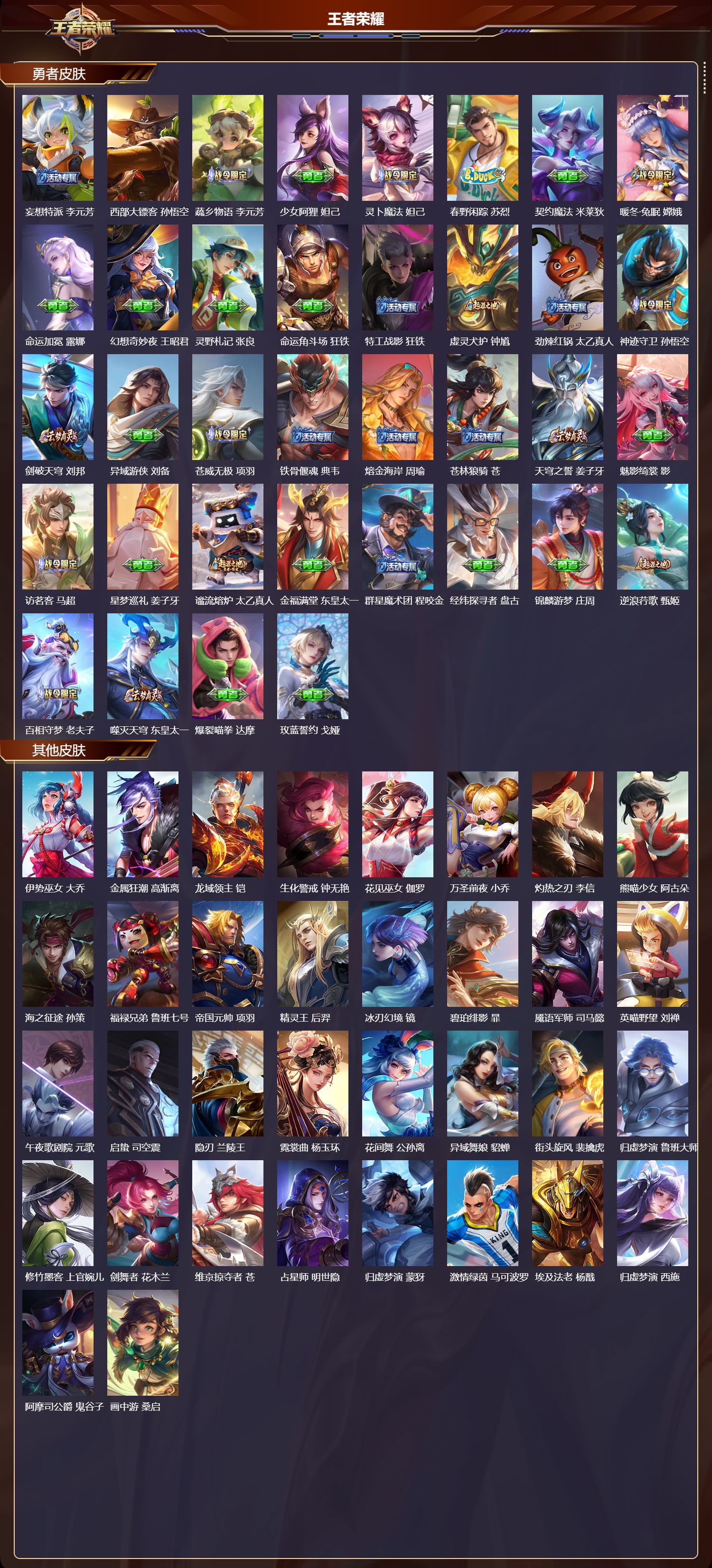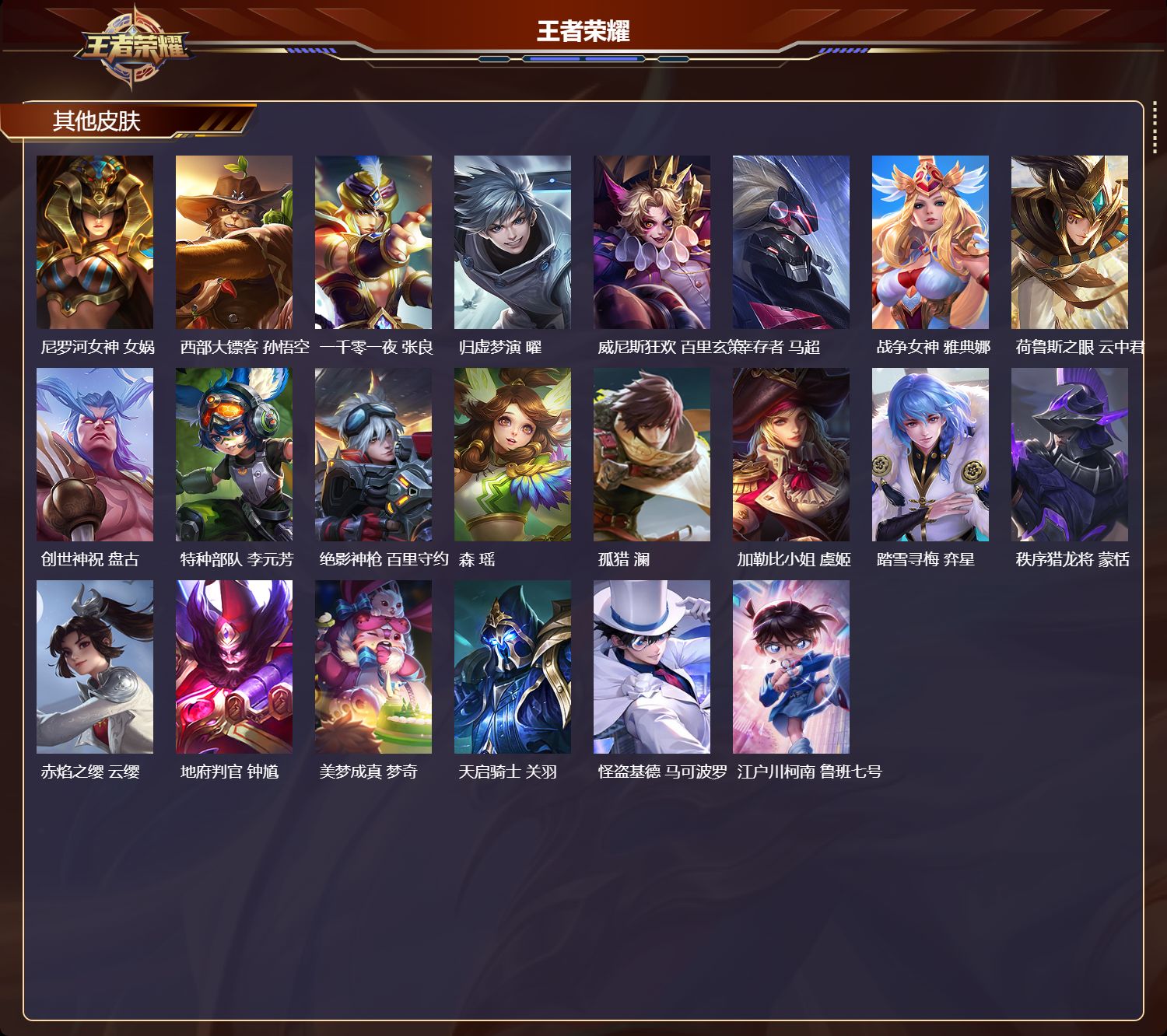 _2113379-q/非凡王者/230皮肤/124英雄/0典藏/0珍品无双/0无双/2珍品传说/19传说/63史诗/8稀有英雄 【2珍品传说】怪盗基德马可波罗江户川柯南鲁班七号 【19传说皮肤】胖达荣荣梦奇启明星使虞姬碎云百里守约逐花归海澜电玩·雷克斯澜无双飞将马超李曜云鹰飞将曜诗剑行李白浮生妄夏洛特落雪白狼亚连默契交锋兰陵王炽阳神光镜怒海麟威吕布一念神魔李信淬星耀世赵云山海·苍雷引曜愿照·九州拓澜鸣野蒿桑启 【63史诗皮肤】蔬乡物语鲁班七号紫霞仙子露娜百解令蒙犽燃音魔法高渐离苍穹之光项羽天秀·启明杨戬狮舞东方鲁班七号德古拉伯爵刘邦山海·玄木吟马可波罗心灵战警亚瑟五谷丰年鬼谷子无心元歌鬼剑武藏宫本武藏地狱燃心司空震摇滚巨星嬴政顽趣梦奇修罗橘右京拒霜思嫦娥魅力维加斯妲己乐园奇幻夜钟馗荣光圣徽蒙恬女仆咖啡妲己赏金猎手澜星界游侠暃暗夜贵公子嬴政鹰眼统帅狄仁杰飞衡韩信金属风暴墨子猫狗日记孙策奇幻香踪扁鹊驭风魔法戈娅魔术师狄仁杰埋骨钱暃龙之律动狂铁唤灵魅影貂蝉神威马超顽岩魄蒙犽皇家上将赵云水晶猎龙者花木兰破空之剑亚连心动手记海诺圣诞狂欢吕布青焰无极镜百相守梦刘备星界战将牛魔永昼夏洛特茶境仙孙膑冰雪圆舞曲甄姬火炮绅士黄忠默契交锋花木兰千年之狐李白暗夜猫娘阿轲乱世虎臣张飞万物之道弈星龙胆赵云星界特工马可波罗缤纷独角兽小乔百相守梦百里守约水果甜心孙尚香化蝶舞阿轲江河有灵阿古朵乘风破浪夏侯惇暗隐猎兽者兰陵王 【92勇者皮肤】时空谍影海诺玲珑珍味西施胡桃夹子干将莫邪太极少年赵怀真大漠名商沈梦溪纽约教父刘备龙舞盛年沈梦溪乐园追猎者白起丁香结小乔功夫炙烤廉颇海盐诗旅桑启幻泉雾影海月汉昭烈帝刘备白色死神白起黄金武士典韦阴阳师狄仁杰次元突破哪吒古海寻踪张良牛运亨通牛魔功夫老勺老夫子鲨炮海盗猫沈梦溪虎啸剑宗刘邦海滩派对项羽完美运算后羿西部游侠莱西奥野性能量吕布瓷语鉴心露娜潮玩探月行猪八戒天穹祈灯鬼谷子决胜大满贯曹操五福同心张飞金色潮汐朵莉亚虹云星官明世隐救世之瞳扁鹊潮玩骑兵杨戬死亡骑士亚瑟浪漫序章刘备破局者亚连玩偶对对碰安琪拉海滩丽影钟无艳忍·炎影赵云擒涛扼浪裴擒虎乓乓大师鲁班大师探海日志鲁班大师天使之翼孙膑兔女郎花木兰龙腾万里关羽流音漫舞艾琳零食大作战姬小满万象初新宫本武藏聚星闪耀钟无艳时尚教父姜子牙秘密基地刘禅教廷特使韩信街头霸王韩信云中旅人李元芳妄想特派李元芳西部大镖客孙悟空蔬乡物语李元芳少女阿狸妲己灵卜魔法妲己春野闲踪苏烈契约魔法米莱狄暖冬·兔眠嫦娥命运加冕露娜幻想奇妙夜王昭君灵野札记张良命运角斗场狂铁特工战影狂铁虚灵犬护钟馗劲辣红锅太乙真人神迹守卫孙悟空剑破天穹刘邦异域游侠刘备苍威无极项羽铁骨偃魂典韦熔金海岸周瑜苍林狼骑苍天穹之誓姜子牙魅影绮裳影访茗客马超星梦巡礼姜子牙谧流熔炉太乙真人金福满堂东皇太一群星魔术团程咬金经纬探寻者盘古锦麟游梦庄周逆浪荇歌甄姬百相守梦老夫子噬灭天穹东皇太一爆裂喵拳达摩玫蓝誓约戈娅 【56其他皮肤】伊势巫女大乔金属狂潮高渐离龙域领主铠生化警戒钟无艳花见巫女伽罗万圣前夜小乔灼热之刃李信熊喵少女阿古朵海之征途孙策福禄兄弟鲁班七号帝国元帅项羽精灵王后羿冰刃幻境镜碧珀绯影暃魇语军师司马懿英喵野望刘禅午夜歌剧院元歌启蛰司空震隐刃兰陵王霓裳曲杨玉环花间舞公孙离异域舞娘貂蝉街头旋风裴擒虎归虚梦演鲁班大师修竹墨客上官婉儿剑舞者花木兰维京掠夺者苍占星师明世隐归虚梦演蒙犽激情绿茵马可波罗埃及法老杨戬归虚梦演西施阿摩司公爵鬼谷子画中游桑启尼罗河女神女娲西部大镖客孙悟空一千零一夜张良归虚梦演曜威尼斯狂欢百里玄策幸存者马超战争女神雅典娜荷鲁斯之眼云中君创世神祝盘古特种部队李元芳绝影神呛百里守约森瑶孤猎澜加勒比小姐虞姬踏雪寻梅弈星秩序猎龙将蒙恬赤焰之缨云缨地府判官钟馗美梦成真梦奇天启骑士关羽怪盗基德马可波罗江户川柯南鲁班七号 【8稀有英雄】嬴政不知火舞橘右京夏洛特娜可露露韩信艾琳赵云 营地id:1871964020