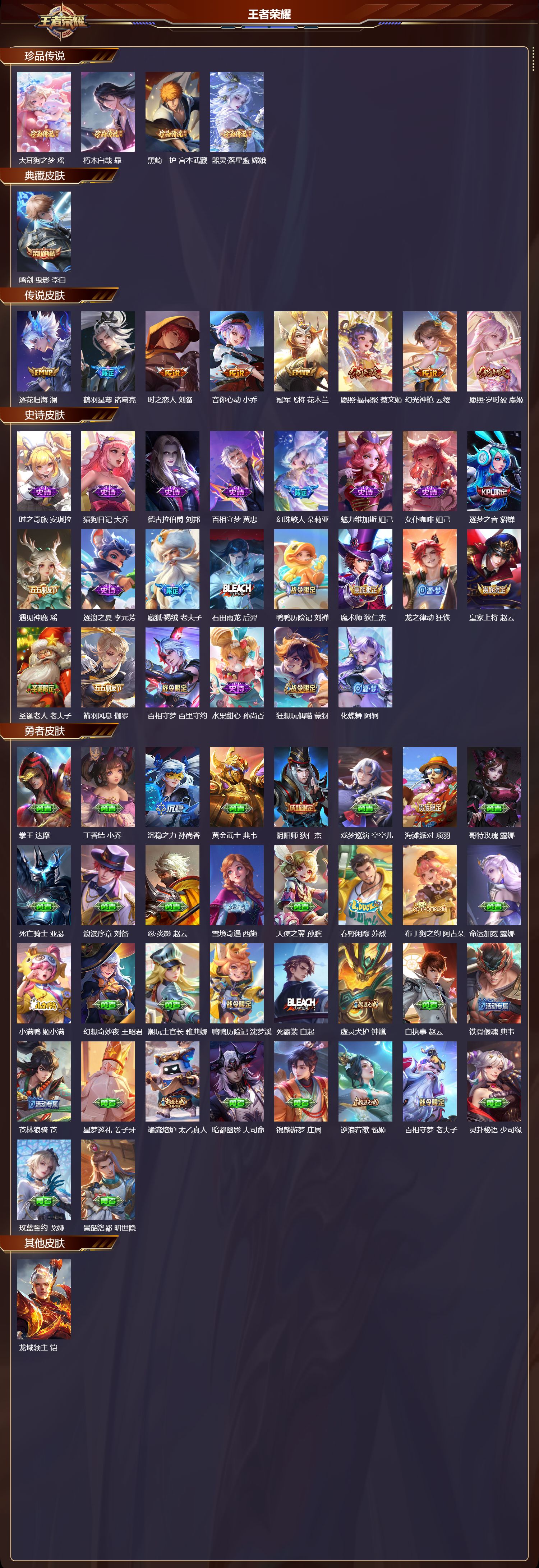 _2115781-q/至尊星耀/70皮肤/60英雄/1典藏/0珍品无双/0无双/4珍品传说/8传说/22史诗/2稀有英雄 【4珍品传说】大耳狗之梦瑶朽木白哉暃黑崎一护宫本武藏器灵·落星盏嫦娥 【1典藏皮肤】鸣剑·曳影李白 【8传说皮肤】逐花归海澜鹤羽星尊诸葛亮时之恋人刘备音你心动小乔冠军飞将花木兰愿照·福禄聚蔡文姬幻光神呛云缨愿照·岁时盈虞姬 【22史诗皮肤】时之奇旅安琪拉猫狗日记大乔德古拉伯爵刘邦百相守梦黄忠幻珠鲛人朵莉亚魅力维加斯妲己女仆咖啡妲己逐梦之音貂蝉遇见神鹿瑶逐浪之夏李元芳藏狐·褐绒老夫子石田雨龙后羿鸭鸭历险记刘禅魔术师狄仁杰龙之律动狂铁皇家上将赵云圣诞老人老夫子箭羽风息伽罗百相守梦百里守约水果甜心孙尚香狂想玩偶喵蒙犽化蝶舞阿轲 【34勇者皮肤】拳王达摩丁香结小乔沉稳之力孙尚香黄金武士典韦阴阳师狄仁杰戏梦巡演空空儿海滩派对项羽哥特玫瑰露娜死亡骑士亚瑟浪漫序章刘备忍·炎影赵云雪境奇遇西施天使之翼孙膑春野闲踪苏烈布丁狗之约阿古朵命运加冕露娜小满鸭姬小满幻想奇妙夜王昭君潮玩士官长雅典娜鸭鸭历险记沈梦溪死霸装白起虚灵犬护钟馗白执事赵云铁骨偃魂典韦苍林狼骑苍星梦巡礼姜子牙谧流熔炉太乙真人暗都幽影大司命锦麟游梦庄周逆浪荇歌甄姬百相守梦老夫子灵卦秘语少司缘玫蓝誓约戈娅景韶洛都明世隐 【6其他皮肤】龙域领主铠幻珠鲛人朵莉亚大耳狗之梦瑶朽木白哉暃黑崎一护宫本武藏器灵·落星盏嫦娥 【2稀有英雄】娜可露露赵云 营地id:1613357936