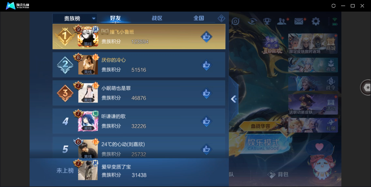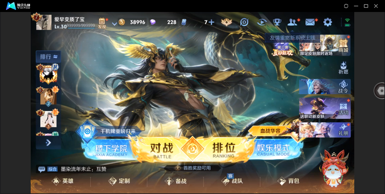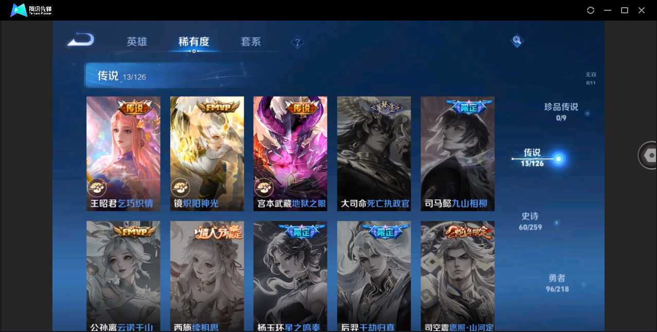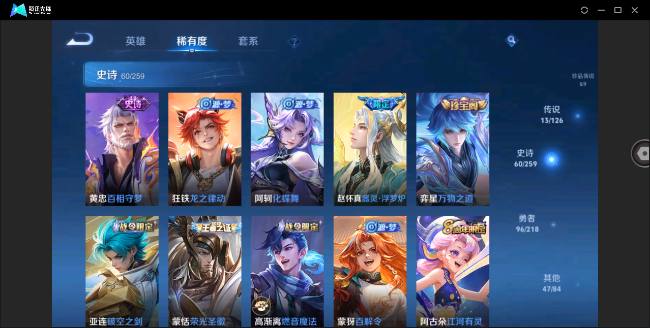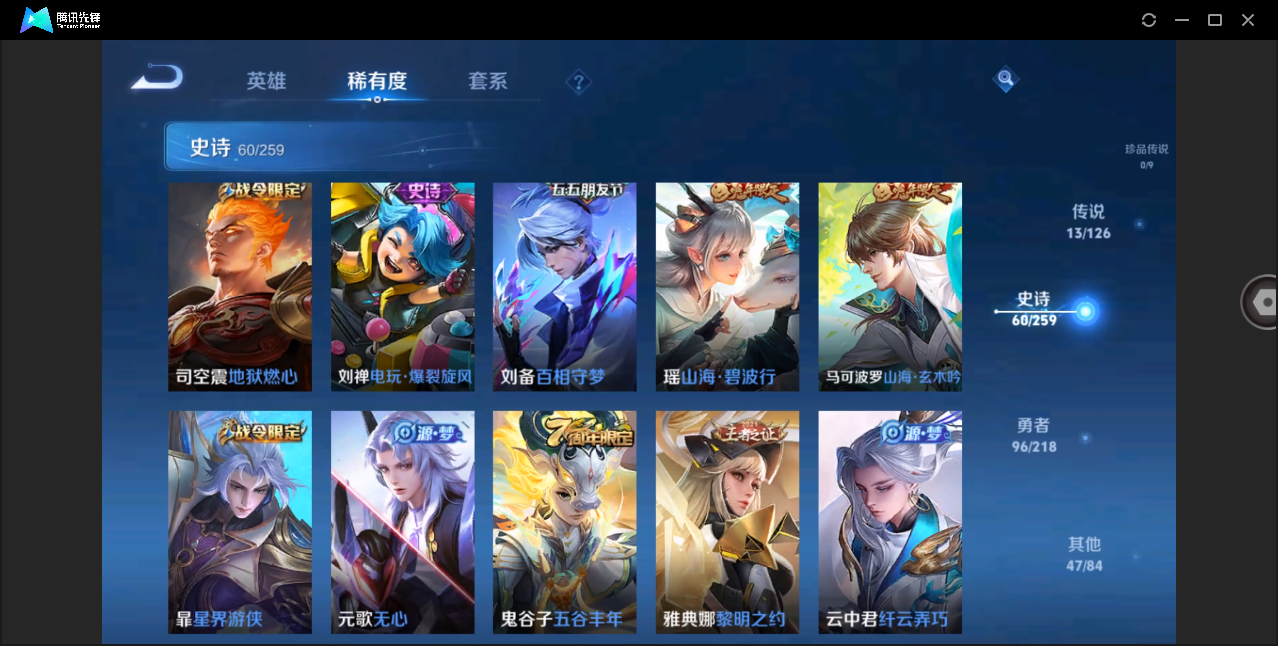 [10793719]实名: 可修改 贵族等级: v7 英雄数: 123 皮肤数: 216 传说皮: 炽阳神光地狱之眼乞巧织情淬星耀世无双飞将山海·苍雷引幻光神呛祥瑞亨通 限定皮: 李小龙至尊宝五谷丰年诗剑行怒海麟威山海·玄木吟山海·碧波行齐天大圣鸣野蒿逐霄战戟愿照·九州拓 亮点: 精品号 澜蛇限 多fmvp 李白世冠 赵云世冠!!!