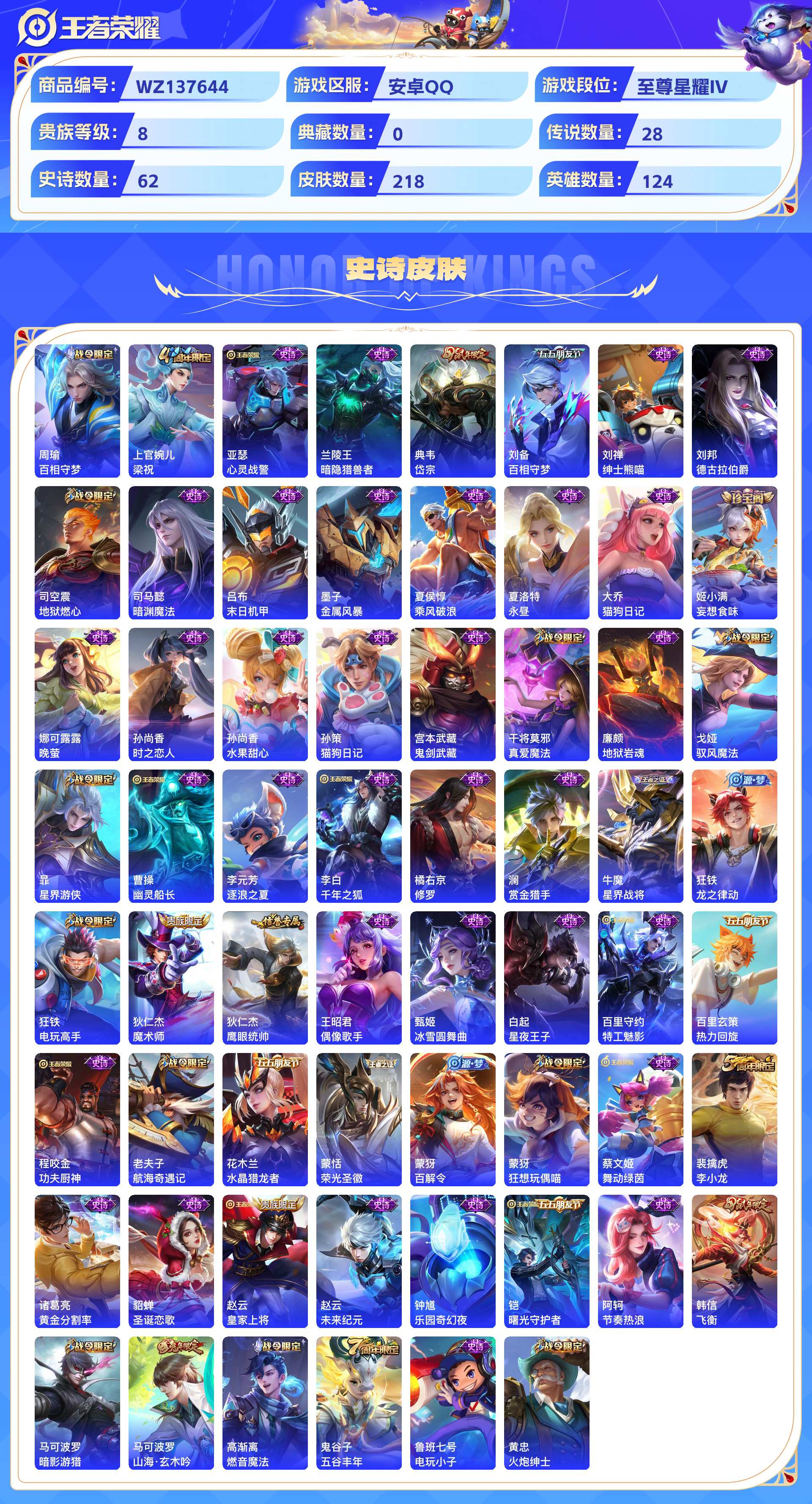 _2118439-安卓qq218皮贵族8级1珍品传说1无双28传说62史诗【珍品传说】时之奇旅【无双限定】器灵·螭龙剑【传说皮肤】幻光神呛时之恋人遇见神鼓怒海麟威音你心动末日机甲齐天大圣末日机甲地狱之眼久胜战神山海·苍雷引云鹰飞将山海·炽霜斩一念神魔诗剑行愿照·九州拓超时空战士碎云燃星之曲启明星使寅虎·赤拳仲夏夜之梦淬星耀世黄金狮子座炽阳神光无限倾心无双飞将寅虎·瑞焰【史诗皮肤】百相守梦梁祝心灵战警暗隐猎兽者岱宗百相守梦绅士熊喵德古拉伯爵地狱燃心暗渊魔法末日机甲金属风暴乘风破浪永昼猫狗日记妄想食味晚萤时之恋人水果甜心猫狗日记鬼剑武藏真爱魔法地狱岩魂驭风魔法星界游侠幽灵船长逐浪之夏千年之狐修罗赏金猎手星界战将龙之律动电玩高手魔术师鹰眼统帅偶像歌手冰雪圆舞曲星夜王子特工魅影热力回旋功夫厨神航海奇遇记水晶猎龙者荣光圣徽百解令狂想玩偶喵舞动绿茵李小龙黄金分割率圣诞恋歌皇家上将未来纪元乐园奇幻夜曙光守护者节奏热浪飞衡暗影游猎山海·玄木吟燃音魔法五谷丰年电玩小子火炮绅士【勇者皮肤】百相守梦金庭之子龙腾万里黄金武士潮玩造梦师万事如意汉昭烈帝秘密基地剑破天穹圣弓游侠完美运算野性能量熔金海岸次元突破神迹守卫谧流熔炉灵卜魔法天穹之誓星梦巡礼时尚教父炽热元素使零食大作战暖冬·兔眠归虚梦演玩偶对对碰万象初新秘证寻踪灵卦秘语功夫炙烤缤纷绘卷灵野札记古海寻踪五福同心危途狂花玫蓝誓约景韶洛都虹云星官云中旅人妄想特派敏锐之力海盐诗旅鲨炮海盗猫龙舞盛年大漠名商时空谍影命运角斗场特工战影阴阳师潮玩探月行幻想奇妙夜花好人间白色死神无双福将星际陆战队流音漫舞幻夜卜梦兔女郎坚韧之力春野闲踪千军破阵西部游侠擒涛扼浪玲珑珍味忍·炎影太极少年沙漠行僧大发明家海滩丽影春野之旅驱傩正仪虚灵犬护布丁狗之约爱心护理单词大作战哥特玫瑰街头霸王教廷特使海滩派对玩趣恶龙天穹祈灯原初探秘者幻乐之宴探海日志乓乓大师【其他皮肤】修竹墨客赤焰之缨午夜歌剧院花间舞英喵野望启蛰魇语军师精灵王圆桌骑士西部大镖客海之征途第七人偶占星师碧珀绯影归虚梦演灼热之刃特种部队范海辛埃及法老画中游美梦成真孤猎年年有余绝影神呛创世神祝极冰防御线剑舞者爱与和平秩序猎龙将蔷薇王座加勒比小姐异域舞娘前尘地府判官龙域领主冰刃幻境激情绿茵幸存者金属狂潮木偶奇遇记福禄兄弟归虚梦演