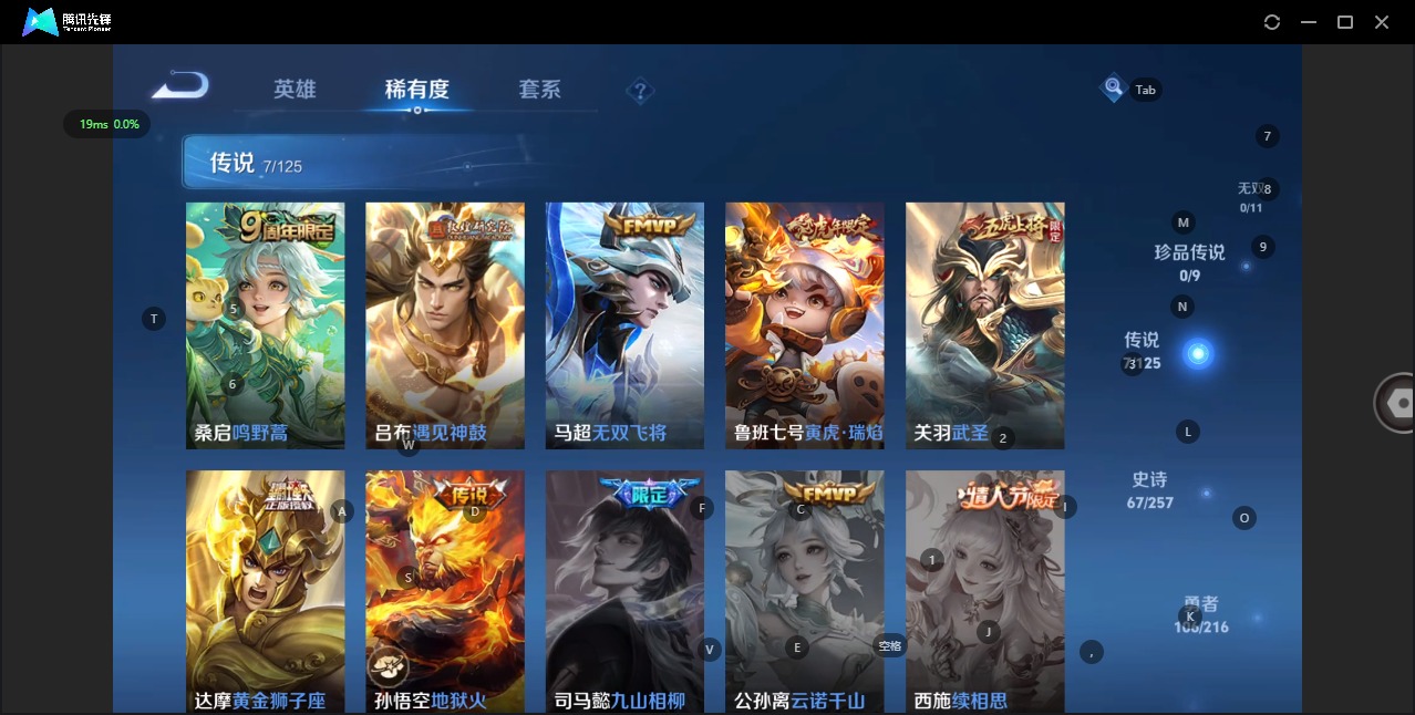 v7 7传说 122英雄 215皮肤 可修改实名 传说皮:黄金狮子座地狱火无双飞将遇见神鼓 珍宝阁皮:妄想食味胡桃夹子 限定皮:鸣野蒿至尊宝傲雪梅呛五谷丰年武圣梁祝天狼征服者李小龙寅虎·瑞焰虎皮蛋子 史诗皮:茶境仙蔬乡物语鲁班七号超元猎域乘龙·忆丹青大乔年限