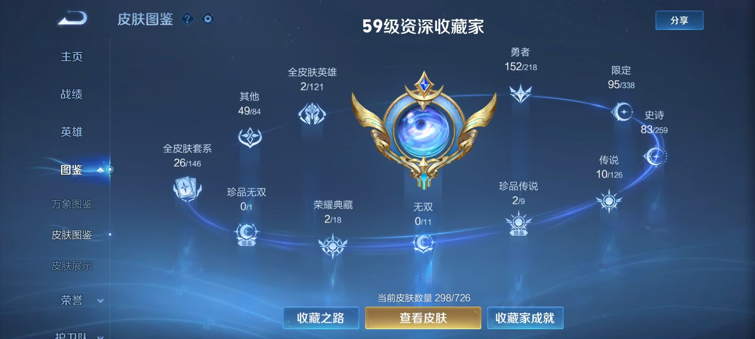 298皮,2典藏,2珍品,10传说,赤影疾锋,弑呛猎影,黑崎一护,朽木白哉,音你心动,地狱火,幽冥火, 【王者荣耀】无双0 典藏2 传说10 史诗60 英雄125 皮肤298 贵族7级 贵族等级:贵族7级__传说皮肤:鸣野蒿|无双飞将|胖达荣荣|地狱火|海洋之心|黄金狮子座|冠军飞将|诗剑行|小乔-音你心动|周瑜-音你心动__稀有限定:蔷薇恋人|猪悟能|李小龙|梁祝|山海·玄木吟|百解令|大漠名商|地狱燃心|电玩高手|高山流水|古海寻踪|海滩派对|海盐诗旅|航海奇遇记|胡桃异想国|幻夜卜梦|皇家上将|混沌棋|火炮绅士|江河有灵|金庭之子|狂想玩偶喵|黎明之约|魔术师|花木兰-默契交锋|女武神|千军破阵|擒涛扼浪|穷奇|驱傩正仪|燃音魔法|荣光圣徽|沙漠行僧|朔风刀|探海日志|饕餮|醍醐杖|天穹祈灯|万华元夜|五谷丰年|午后时光|星界游侠|演武夺筹|疑决卦|阴阳师|优雅恋人|御旌|御銮|御狮|原初追逐者|云间偶戏|暗夜贵公子|暗夜猫娘|暗隐猎兽者|白蛇|缤纷独角兽|冰冠公主|冰雪圆舞曲|乘风破浪|大乔-猫狗日记|德古拉伯爵|地狱岩魂|电玩小子|功夫厨神|鬼剑武藏|箭羽风息|节奏热浪|金属风暴|龙骑士|吕布-末日机甲|魅力维加斯|魅语|梦奇-顽趣|女仆咖啡|偶像歌手|千筹问战|青蛇|绅士熊喵|圣诞狂欢|圣诞恋歌|水果甜心|水晶猎龙者|孙策-猫狗日记|天才门将|赵云-未来纪元|星夜王子|摇滚巨星|幽灵船长|月团寄思|钟无艳-超时空战士|逐浪之夏|紫霞仙子|噬灭天穹|敬我三分|破空之剑|战舞者|天穹之誓|曙光守护者|心灵战警|千年之狐|无限星赏官|舞动绿茵|特工魅影|心灵骇客|谧流熔炉|御霄|烛龙|原初探秘者|重明|云中旅人|玲珑珍味|单词大作战|孙悟空-神迹守卫|达摩-星际陆战队|流音漫舞|暖冬·兔眠|灵卜魔法|苍威无极|墨子-神迹守卫|落雪兰心|刘禅-鸭鸭历险记|沈梦溪-鸭鸭历险记|龙之律动|布丁狗之约|虚灵犬护|石田雨龙|逆浪荇歌|孙策-百相守梦|周瑜-百相守梦|赞萌露比__王者段位:最强王者__荣耀典藏:赤影疾锋|弑呛猎影__优质皮肤:怪诞之夜|功夫炙烤|幻夜行动|聚星闪耀|潮玩探月行|虎啸剑宗|秘密基地|次元突破|鲨炮海盗猫|野性能量|丁香结|虹云星官|科学大爆炸|守护之力|坚韧之力|幻乐之宴|功夫老勺|幻想奇妙夜|海滩丽影|阿尔法小队|兔女郎|死亡骑士|黄金武士|少女阿狸|天使之翼|玩偶对对碰|宫本武藏-未来纪元|东方不败|红桃皇后|忍·炎影|街头霸王|教廷特使|漠中幻影|时空谍影|王牌新星|西部游侠|太极少年|乐园追猎者|牛运亨通|危途狂花|胡桃狂想曲|紫罗兰之誓|铁甲之心|次元傲视|如懿|制霸全明星|进击墨子号|拳王|救世之瞳|白色死神|程咬金-星际陆战队|大发明家|致命风华|哥特玫瑰|西施-雪境奇遇|星梦巡礼|灵卦秘语|景韶洛都|浪漫序章|缤纷绘卷|掌控之力|雾都夜雨|逐霄战戟|铁骨偃魂|纽约教父|龙腾万里|霸王丸|乱世虎臣|敏锐之力|牛魔-西部大镖客|热血海滩|龙舞盛年|汉昭烈帝|乓乓大师|五福同心|盾山-圆桌骑士|万事如意|唤灵魔甲|沉稳之力|化身博士|花好人间|潮玩骑士王|万象初新|潮玩骑兵|苍林狼骑|蔚蓝守将|劲辣红锅|特工战影|炽热元素使|妄想特派|春野闲踪|灵野札记|玫蓝誓约|命运加冕|小满鸭|死霸装|无双福将|锦麟游梦|戏梦巡演__珍品传说:朽木白哉|黑崎一护