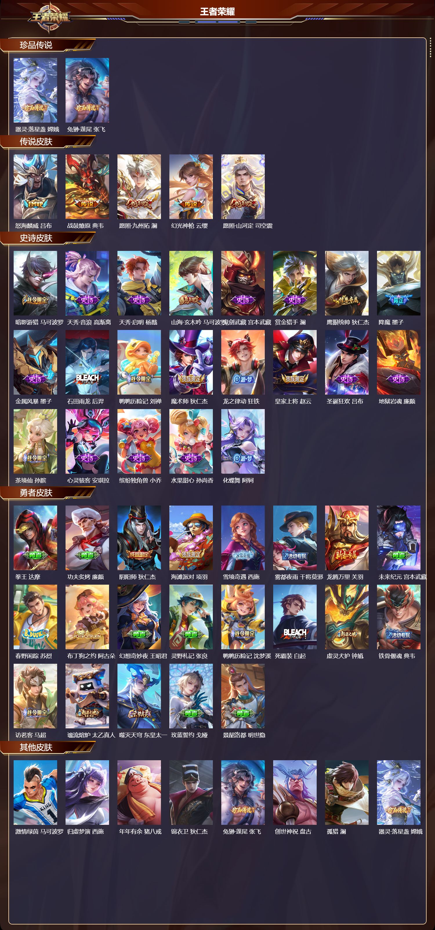 _2131355-q/永恒钻石/55皮肤/57英雄/0典藏/0珍品无双/0无双/2珍品传说/5传说/21史诗/0稀有英雄 【2珍品传说】器灵·落星盏嫦娥兔狲·蓬尾张飞 【5传说皮肤】怒海麟威吕布战鼓燎原典韦愿照·九州拓澜幻光神呛云缨愿照·山河定司空震 【21史诗皮肤】暗影游猎马可波罗天秀·音浪高渐离天秀·启明杨戬山海·玄木吟马可波罗鬼剑武藏宫本武藏赏金猎手澜鹰眼统帅狄仁杰降魔墨子金属风暴墨子石田雨龙后羿鸭鸭历险记刘禅魔术师狄仁杰龙之律动狂铁皇家上将赵云圣诞狂欢吕布地狱岩魂廉颇茶境仙孙膑心灵骇客安琪拉缤纷独角兽小乔水果甜心孙尚香化蝶舞阿轲 【21勇者皮肤】拳王达摩功夫炙烤廉颇阴阳师狄仁杰海滩派对项羽雪境奇遇西施雾都夜雨干将莫邪龙腾万里关羽未来纪元宫本武藏春野闲踪苏烈布丁狗之约阿古朵幻想奇妙夜王昭君灵野札记张良鸭鸭历险记沈梦溪死霸装白起虚灵犬护钟馗铁骨偃魂典韦访茗客马超谧流熔炉太乙真人噬灭天穹东皇太一玫蓝誓约戈娅景韶洛都明世隐 【8其他皮肤】激情绿茵马可波罗归虚梦演西施年年有余猪八戒锦衣卫狄仁杰兔狲·蓬尾张飞创世神祝盘古孤猎澜器灵·落星盏嫦娥 营地id: