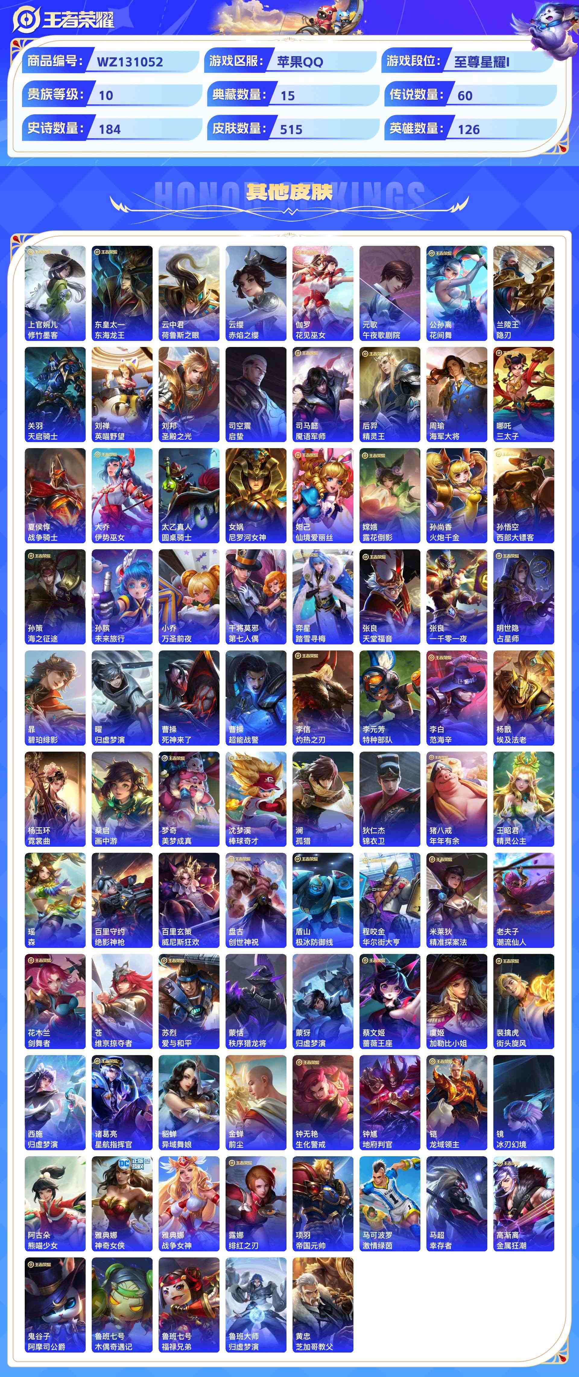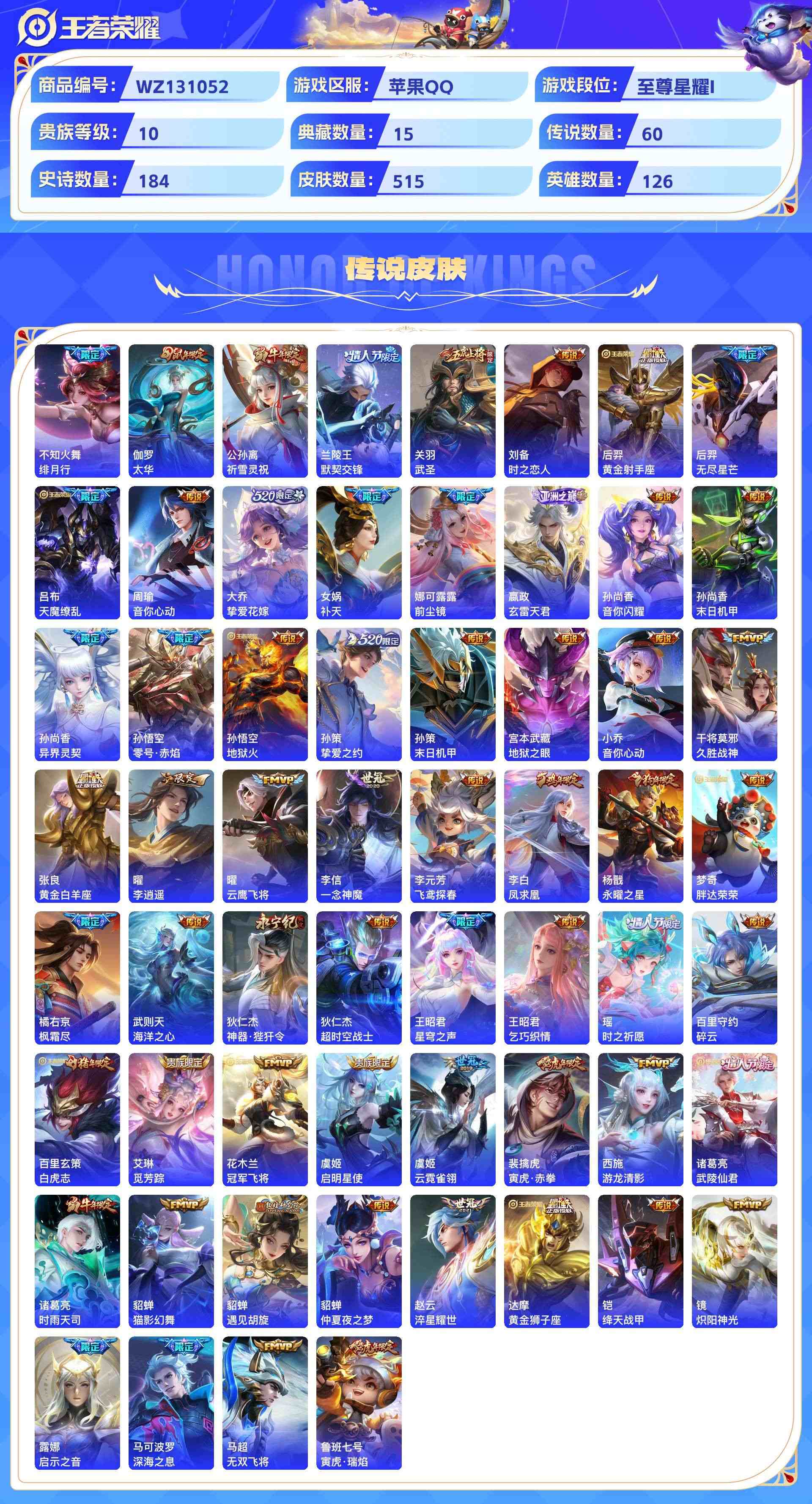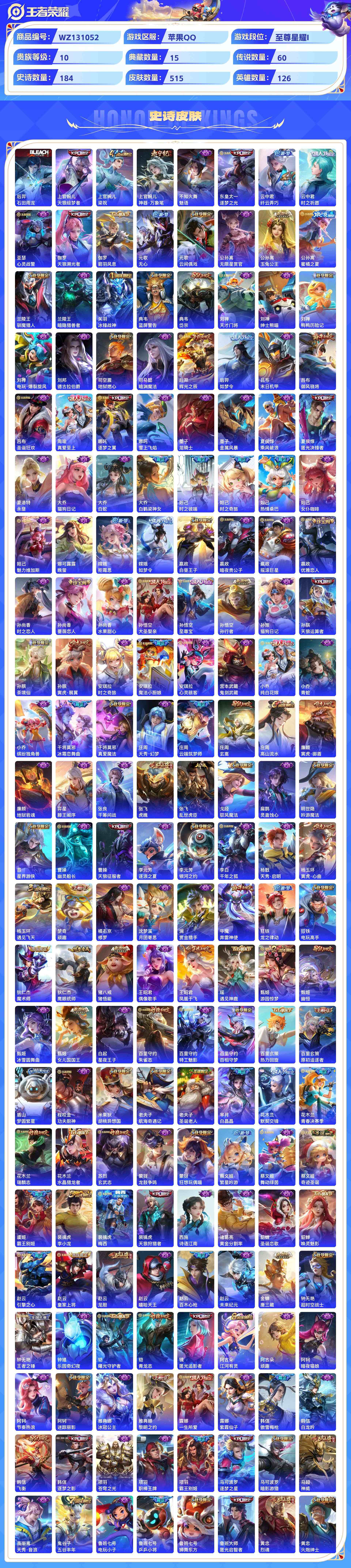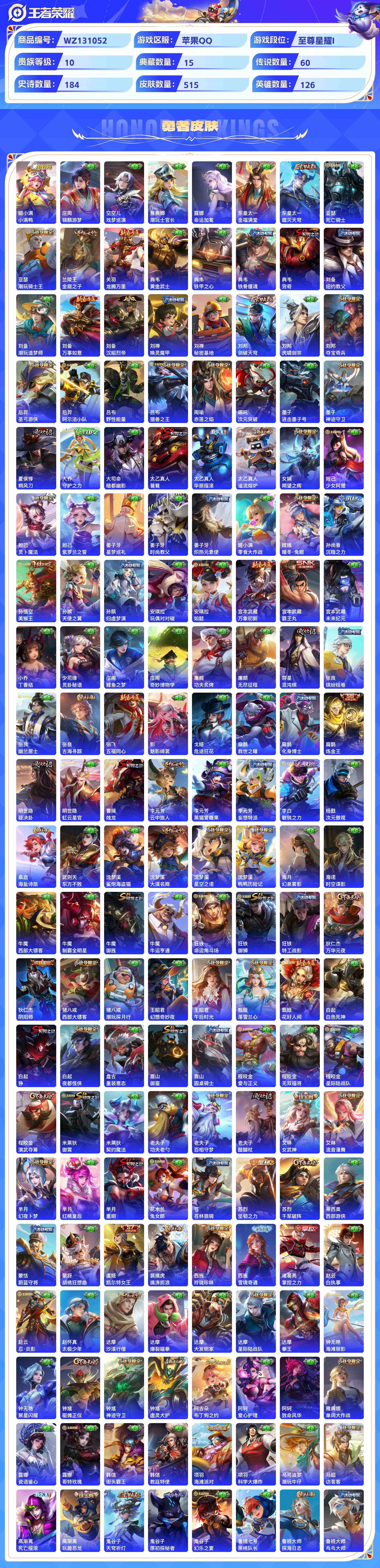 wz131052|极品号【荣耀典藏】赤影疾锋无限飓风号杀手不太冷全息碎影天鹅之梦鸣剑·曳影倪克斯神谕活力突击大秦宣太后九霄神辉星域神启幻阙歌银白咏叹调弑呛猎影星空梦想【珍品传说】酷洛米之心兔狲·蓬尾大耳狗之梦苹果qq 贵族10级515皮 15典藏 3珍品传说 60传说 184史诗 6星传说15个性按键 5天幕