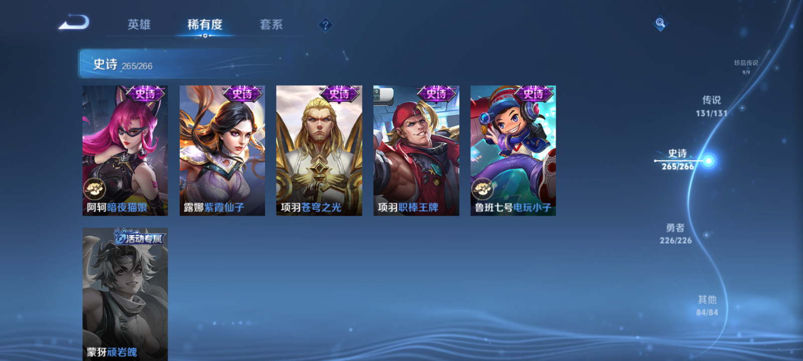 【王者荣耀】【lywz18949】珍品无双1 典藏18 无双12 珍品传说9 传说131 史诗264 英雄128 皮肤746 贵族无双级 珍品无双:馥梦繁花__荣耀典藏:无限飓风号|全息碎影|天鹅之梦|大秦宣太后|杀手不太冷|武则天|神鉴启示录|银白咏叹调|赤影疾锋|幻阙歌|活力突击|九霄神辉|鸣剑·曳影|倪克斯神谕|弑呛猎影|星空梦想|星域神启|拾光映像|最初的交响__无双皮肤:群星魔术团|时之魔女|碎月剑心|真我赫兹|离恨烟|花合斗|雪境奇遇|器灵·螭龙剑|青丘·九尾|神器·明辉仪|天机白泽|神罪__珍品传说:江户川柯南|怪盗基德|孙策-时之奇旅|器灵·落星盏|兔狲·蓬尾|大耳狗之梦|酷洛米之心|朽木白哉|黑崎一护__传说皮肤:鸣野蒿|枫霜尽|前尘镜|音你闪耀|深海之息|无尽星芒|无双飞将|挚爱花嫁|挚爱之约|启示之音|花朝如约|补天|异界灵契|绛天战甲|炽阳神光|启明星使|胖达荣荣|地狱之眼|地狱火|海洋之心|孙策-末日机甲|仲夏夜之梦|云霓雀翎|久胜战神|黄金狮子座|狄仁杰-超时空战士|黄金射手座|黄金白羊座|猫影幻舞|刘备-时之恋人|一念神魔|云鹰飞将|冠军飞将|飞鸢探春|李|游龙清影|乞巧织情|淬星耀世|瑶-时之祈愿|炽翼辉光|电玩·雷克斯|绯月行|浮生妄|鹤羽星尊|画中仙|记忆之芯|孙尚香-末日机甲|齐天大圣|白虎志|安琪拉-追逃游戏|大乔-时之奇旅|凤求凰|黄金天蝎座|金乌负日|惊梅引|铠-琥珀纪元|兰陵王-默契交锋|零号·赤焰|鲁班七号-时之奇旅|落雪白狼|吕布-曦玄引|马超-琥珀纪元|怒海麟威|祈雪灵祝|燃星之曲|诗剑行|时雨天司|霜月吟|碎云|太华|天魔缭乱|妄想奇谈|妄想实况|武陵仙君|武圣|貂蝉-曦玄引|项羽-无限倾心|小动物乐团|小乔-音你心动|星穹之声|亚瑟-追逃游戏|夜礼服假面|寅虎·瑞焰|影龙天霄|永恒水手月亮|永曜之星|虞姬-无限倾心|遇见胡旋|遇见神鼓|战鼓燎原|周瑜-音你心动|逐花归海|乘龙·淬吴钩|乘龙·铭钟鼎|乘龙·问璇玑|云缨-鹤归松栖|觅芳踪|山海·苍雷引|山海·炽霜斩|山海·琳琅生|神器·狴犴令|朵莉亚-心动手记|寅虎·赤拳|云中君-群星魔术团|至美·化雀舞|灼幽烈阳|冥王哈迪斯|映山客|牧神诗旅|张飞-百相守梦|玄雷天君|幻光神呛|祥瑞亨通|愿照·岁时盈|愿照·山河定|愿照·九州拓|愿照·众生和|愿照·福禄聚|星之鸣奏|愿照·千秋盛|千劫归真|续相思|云诺千山|九山相柳|死亡执政官|诡秘之主|千山共赴|万灵伏威|神树通天|纵目迁山__稀有限定:寅虎·御盾|寅虎·展翼|寅虎·心曲|奔雷神使|御风骁将|白晶晶|至尊宝|梅西|瑞麟志|青龙志|玄武志|朱雀志|虞姬-霸王别姬|大圣娶亲|一生所爱|引擎之心|纯白花嫁|岱宗|玄嵩|幽恒|飞衡|蔷薇恋人|奇迹圣诞|蜜橘之夏|虎魄|神威|烈魂|龙胆|青春决赛季|白鹤梁神女|乒乒小将|孙行者|猪悟能|女儿国国王|傲雪梅呛|玉兔公主|李小龙|梁祝|山海·碧波行|山海·玄木吟|神器·万象笔|时之彼端|狮舞东方|唐三藏|拒霜思|暗影游猎|白昼王子|百解令|百里守约-真我赫兹|百木心呛|冰锋战神|冰霜恋舞曲|冰霜神祇|嫦娥-如梦令|超元猎域|妲己-时之奇旅|大漠名商|地狱燃心|电玩高手|繁星吟游|凤凰于飞|高山流水|古海寻踪|海滩派对|海盐诗旅|航海奇遇记|后羿-如梦令|胡桃夹子|胡桃异想国|华丽摇滚|幻夜卜梦|皇家上将|辉光之辰|混沌棋|火炮绅士|剑破天穹|江河有灵|降魔|金庭之子|镜-真我赫兹|决胜骁骑|凯尔特女王|狂想玩偶喵|蓝屏警告|黎明之约|炼金王|美猴王|梦圆繁星|迷踪丽影|魔法小厨娘|魔术师|花木兰-默契交锋|匿光决锋者|匿光破解者|匿光启智者|匿光侦查者|匿光追影者|女武神|奇幻香踪|千军破阵|擒涛扼浪|青焰无极|穷奇|驱傩正仪|燃音魔法|热情桑巴|荣光圣徽|沙漠行僧|蜃楼王|圣诞老人|狮心王|朔风刀|死亡摇滚|探海日志|饕餮|醍醐杖|天降福星|天狼绘梦者|天狼狩猎者|天狼溯光者|天狼运算者|天狼征服者|天穹祈灯|玩趣恶龙|阿古朵-顽趣|万华元夜|王者之锤|妄想食味|无心|五谷丰年|午后时光|纤云弄巧|项羽-霸王别姬|星界游侠|星空之诺|驯魔猎人|演武夺筹|妖精王|夜都怪侠|夜都魔契|疑决卦|阴阳师|吟游魔法|银河之约|优雅恋人|游园惊梦|驭风魔法|遇见飞天|御旌|御銮|御狮|原初追逐者|云端筑梦师|云间偶戏|真爱魔法|逐梦之光|逐梦之星|逐梦之翼|逐梦之音|逐梦之影|暗夜贵公子|暗夜猫娘|暗隐猎兽者|暗渊魔法|白龙吟|白蛇|缤纷独角兽|冰冠公主|冰雪圆舞曲|苍穹之光|乘风破浪|乘龙·聚宝船|乘龙·忆丹青|大乔-猫狗日记|德古拉伯爵|地狱岩魂|电玩·爆裂旋风|电玩·兔顽号|电玩小子|浮梦罗烟|伽罗-琥珀纪元|功夫厨神|鬼剑武藏|唤灵魅影|黄金分割率|箭羽风息|节奏热浪|金属风暴|莱西奥-末日机甲|乐园奇幻夜|李元芳-蔬乡物语|龙鼓争鸣|龙骑士|吕布-末日机甲|玫瑰异探|魅力维加斯|魅语|梦奇-顽趣|女仆咖啡|偶像歌手|奇遇舞章|奇遇星旅|千筹问战|青蛇|热力回旋|赏金猎手|上官婉儿-群星魔术团|绅士熊喵|圣诞狂欢|圣诞恋歌|诗语江南|鲁班七号-蔬乡物语|水果甜心|水晶猎龙者|孙策-猫狗日记|滕王阁序|天才门将|天秀·幻梦|天秀·启明|天秀·音浪|完美假期|晚萤|赵云-未来纪元|嘻哈天王|闲日渔趣|星夜王子|雪上飞焰|雪夜绮愿|摇滚巨星|夜落电台|银翎春语|鹰眼统帅|永昼|幽灵船长|遇见神鹿|月团寄思|云中君-时之祈愿|职棒王牌|至美·乘鲤谣|钟无艳-超时空战士|周瑜-真爱至上|逐浪之夏|紫霞仙子|赵怀真-鹤归松栖|百里守约-百