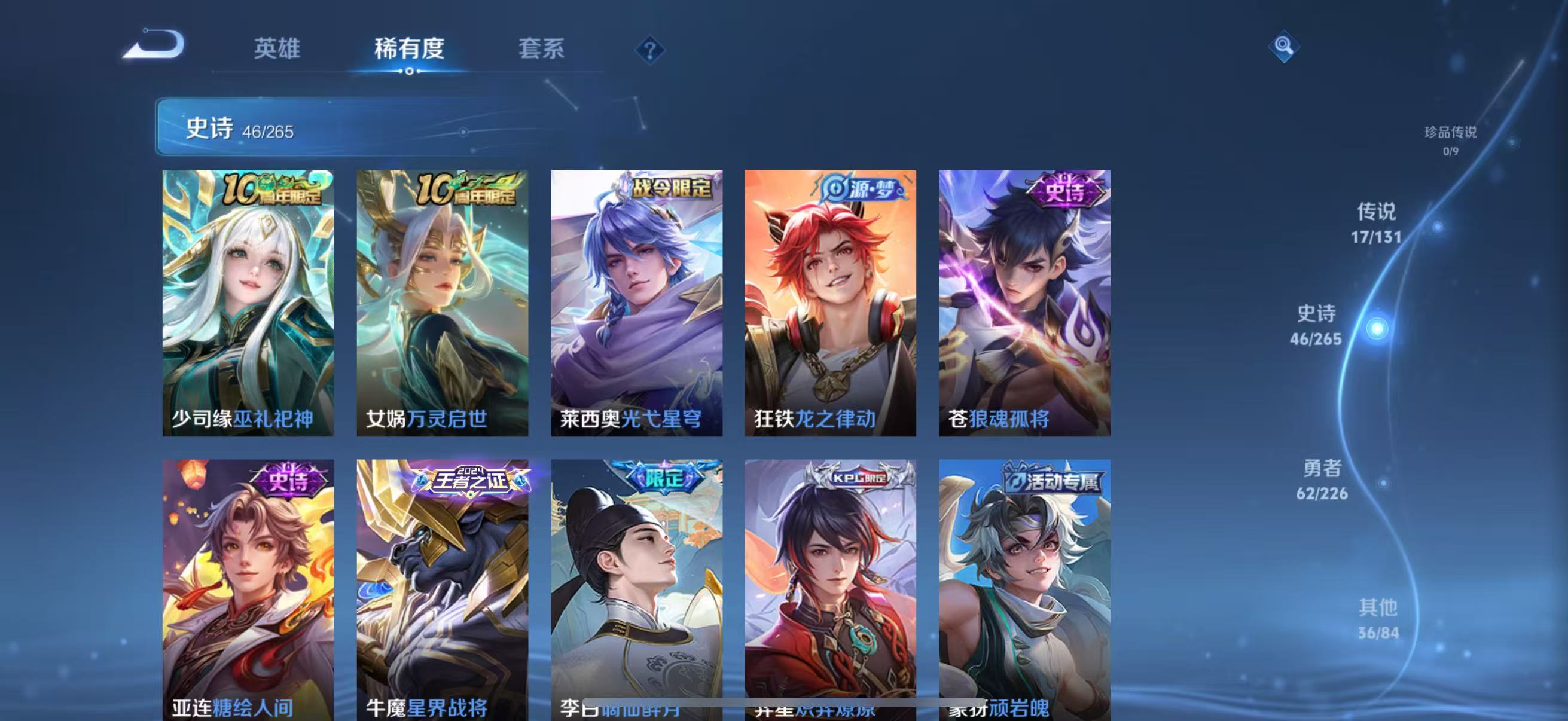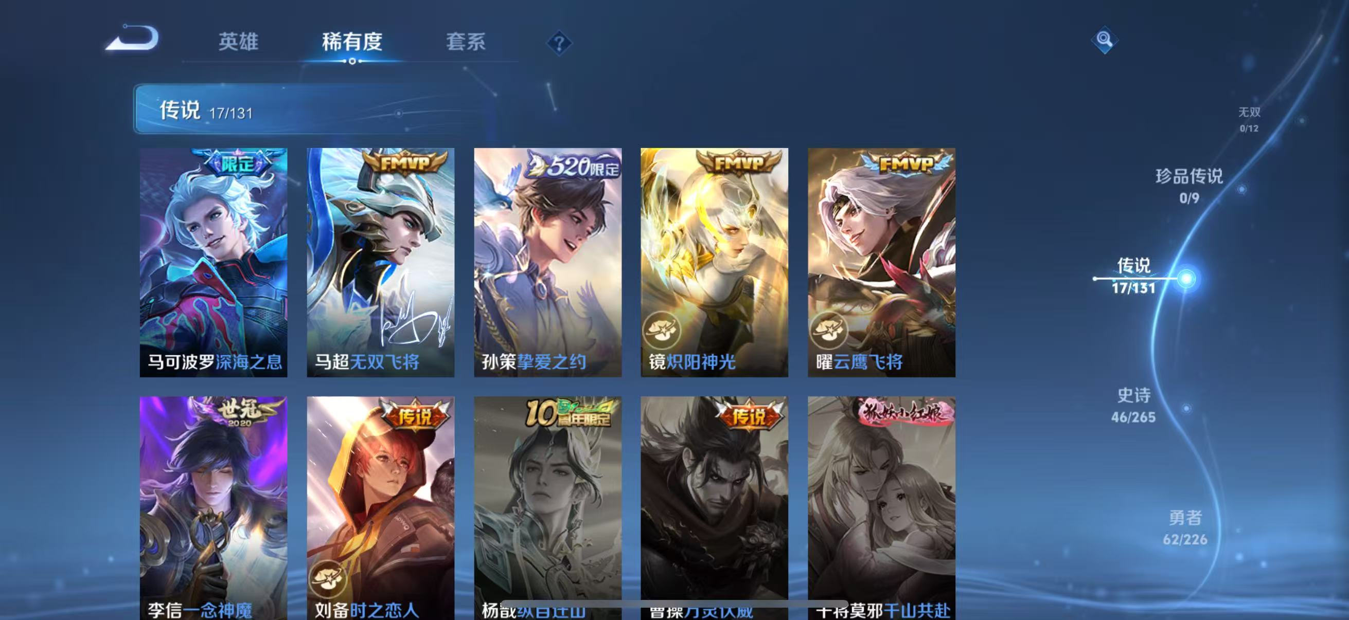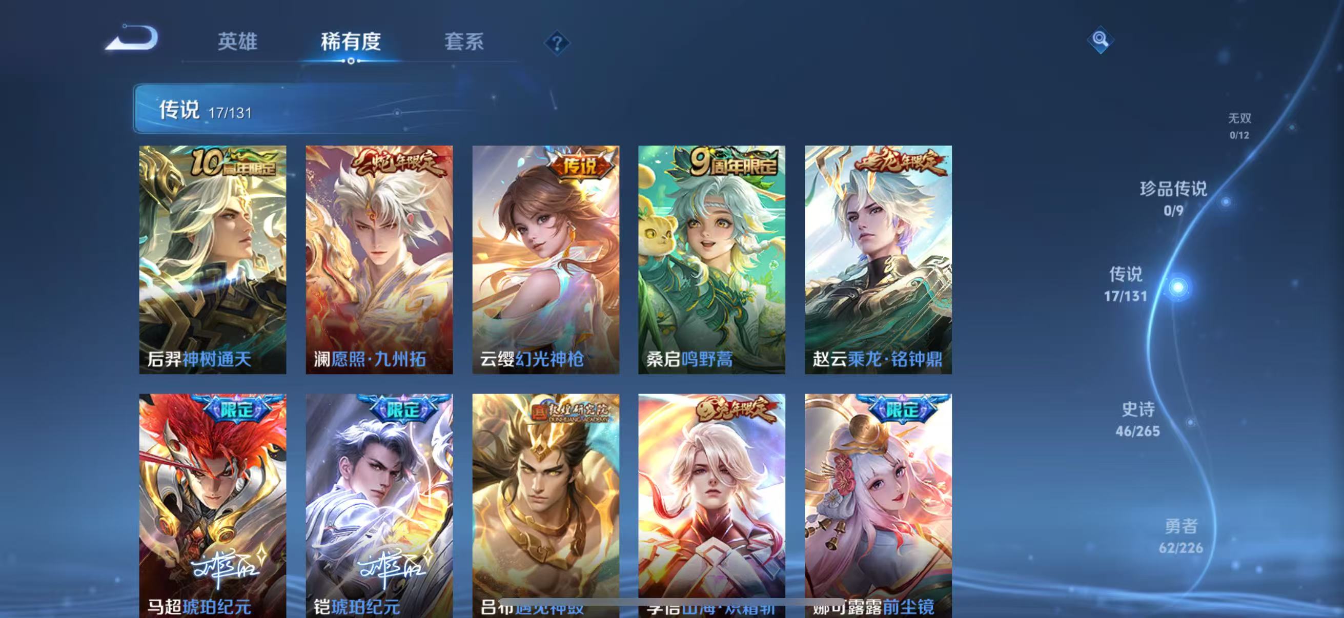 【王者荣耀】【lywz18999】珍品无双0 典藏1 无双0 珍品传说0 传说17 史诗46 英雄127 皮肤162 贵族7级 荣耀典藏:赤影疾锋__传说皮肤:鸣野蒿|前尘镜|深海之息|无双飞将|挚爱之约|炽阳神光|刘备-时之恋人|一念神魔|云鹰飞将|铠-琥珀纪元|马超-琥珀纪元|遇见神鼓|乘龙·铭钟鼎|山海·炽霜斩|幻光神呛|愿照·九州拓|神树通天__稀有限定:傲雪梅呛|山海·玄木吟|百木心呛|大漠名商|古海寻踪|海滩派对|海盐诗旅|皇家上将|剑破天穹|金庭之子|镜-真我赫兹|黎明之约|魔术师|擒涛扼浪|燃音魔法|荣光圣徽|沙漠行僧|探海日志|天狼狩猎者|天穹祈灯|阿古朵-顽趣|妄想食味|无心|五谷丰年|星界游侠|阴阳师|优雅恋人|原初追逐者|冰冠公主|乘风破浪|德古拉伯爵|功夫厨神|鬼剑武藏|节奏热浪|金属风暴|吕布-末日机甲|魅力维加斯|梦奇-顽趣|偶像歌手|赏金猎手|水果甜心|天秀·音浪|摇滚巨星|鹰眼统帅|谪仙醉月|噬灭天穹|炽弈燎原|顽岩魄|蔡文姬-夏日便利店|虞姬-夏日便利店|天穹之誓|刘备-百相守梦|星界战将|谧流熔炉|糖绘人间|狼魂孤将|云中旅人|流音漫舞|暖冬·兔眠|灵卜魔法|龙之律动|虚灵犬护|逆浪荇歌|光弋星穹|往忆晖光|荣光之誓|万灵启世|巫礼祀神|鹤鸣心笺__优质皮肤:年年有余|埃及法老|孤猎|木偶奇遇记|熊喵少女|露花倒影|激情绿茵|天启骑士|森|踏雪寻梅|启蛰|画中游|潮流仙人|街头旋风|绝影神呛|荷鲁斯之眼|幸存者|赤焰之缨|隐刃|特种部队|精灵王|剑舞者|星航指挥官|龙域领主|花间舞|魇语军师|东海龙王|灼热之刃|霓裳曲|修竹墨客|万圣前夜|异域游侠|秘密基地|鲨炮海盗猫|野性能量|丁香结|守护之力|幻乐之宴|幻想奇妙夜|兔女郎|死亡骑士|少女阿狸|忍·炎影|街头霸王|教廷特使|时空谍影|王牌新星|零食大作战|太极少年|乐园追猎者|幻泉雾影|潮玩造梦师|胡桃狂想曲|黑桃队长|拳王|白色死神|星梦巡礼|爆裂喵拳|纽约教父|龙腾万里|乱世虎臣|西施-归虚梦演|孙悟空-西部大镖客|汉昭烈帝|乓乓大师|五福同心|万事如意|太乙真人-圆桌骑士|特工战影|妄想特派|命运加冕|径山谋武|逐霄之志__贵族等级:贵族7级__王者段位:非凡王者【小国高渐离 刘备 打野50段 边路45段 热门万战金标英雄多多】1典藏 愿照·九州拓,乘龙·铭钟鼎,琥珀纪元,前尘镜,深海之息等限定皮肤