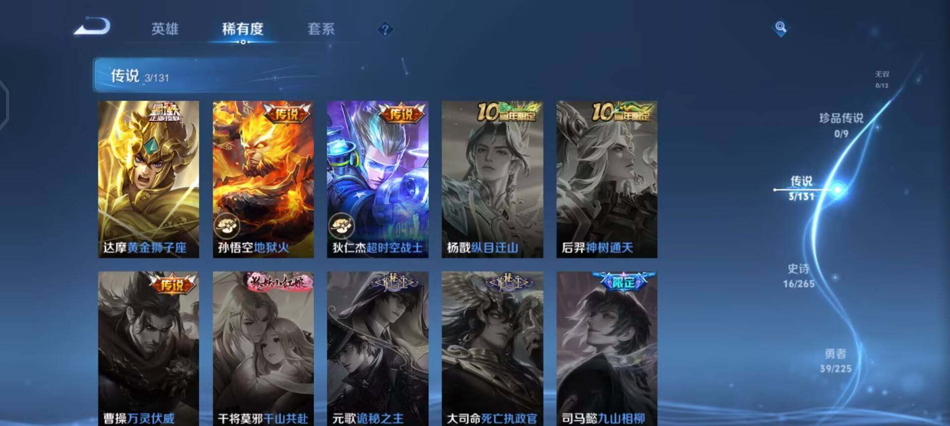 w9569 可立即换绑无需挂单养号 铭文满级 传说3 夺宝91 安卓q-v3-至尊星耀iv段位-99英雄-75皮肤-0典藏-0珍品无双-0无双-0珍品传说-3传说-16史诗 【传说皮肤】:达摩黄金狮子座,孙悟空地狱火,狄仁杰超时空战士 【限定皮肤】:狄仁杰阴阳师,赵云皇家上将,马可波罗暗影游猎,狄仁杰魔术师,狄仁杰万华元夜,达摩沙漠行僧,项羽海滩派对,老夫子醍醐杖,程咬金演武夺筹