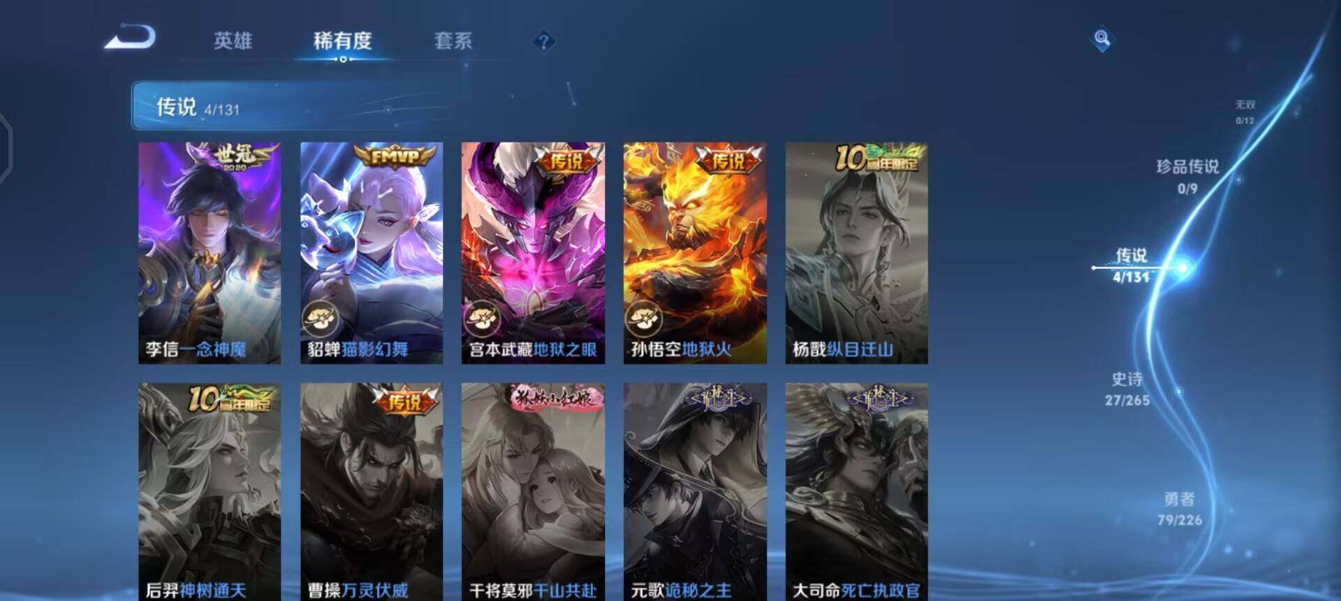 w10172,,可立即换绑无需挂单养号,铭文满级,,传说4,,,星传说1,,夺宝207,,安卓q-v6-至尊星耀iv段位-125英雄-136皮肤-0典藏-0珍品无双-0无双-0珍品传说-4传说-27史诗 【传说皮肤】:李信一念神魔,貂蝉猫影幻舞,宫本武藏地狱之眼,孙悟空地狱火 【限定皮肤】:白起狰,姜子牙天穹之誓,狄仁杰阴阳师,虞姬凯尔特女王,赵云皇家上将,赵云引擎之心,孙尚香蔷薇恋人,鲁班七