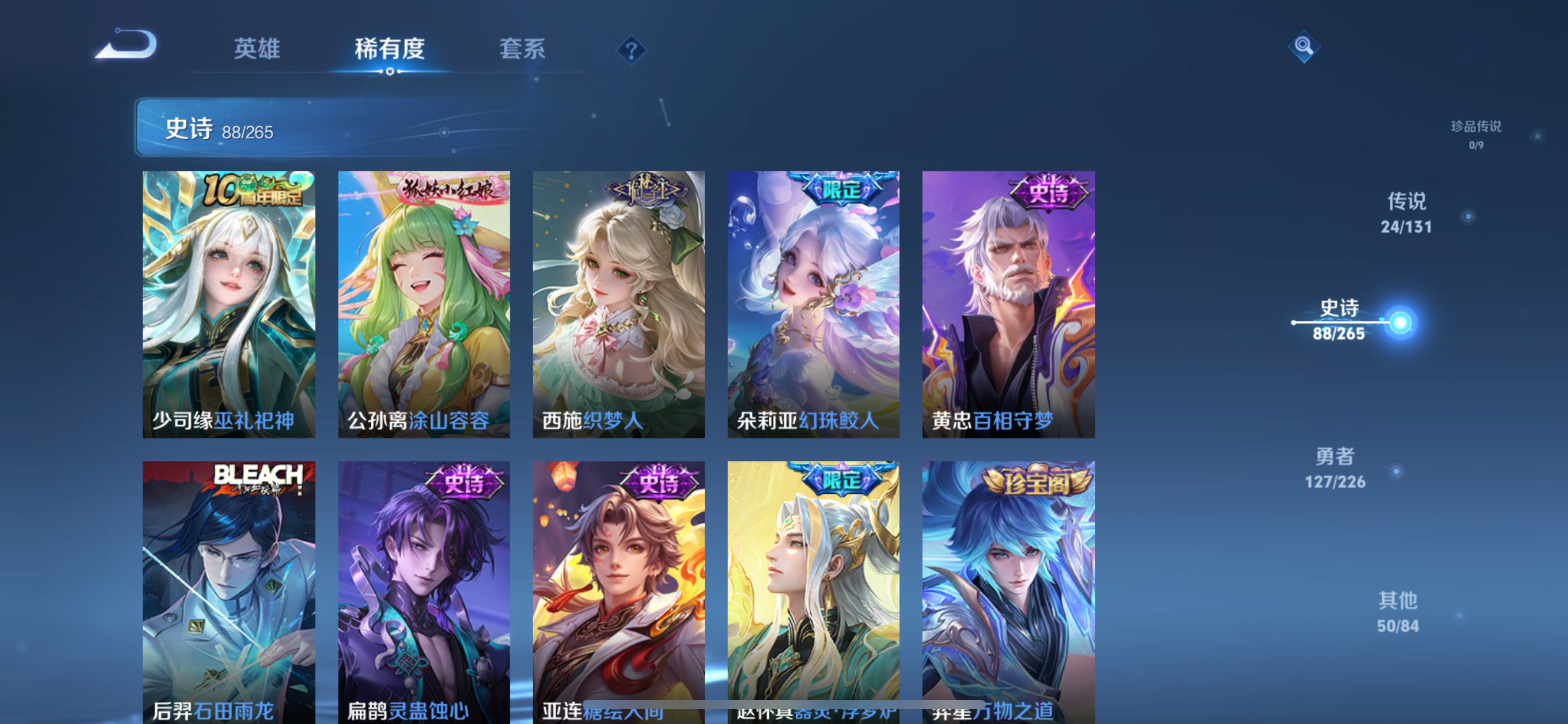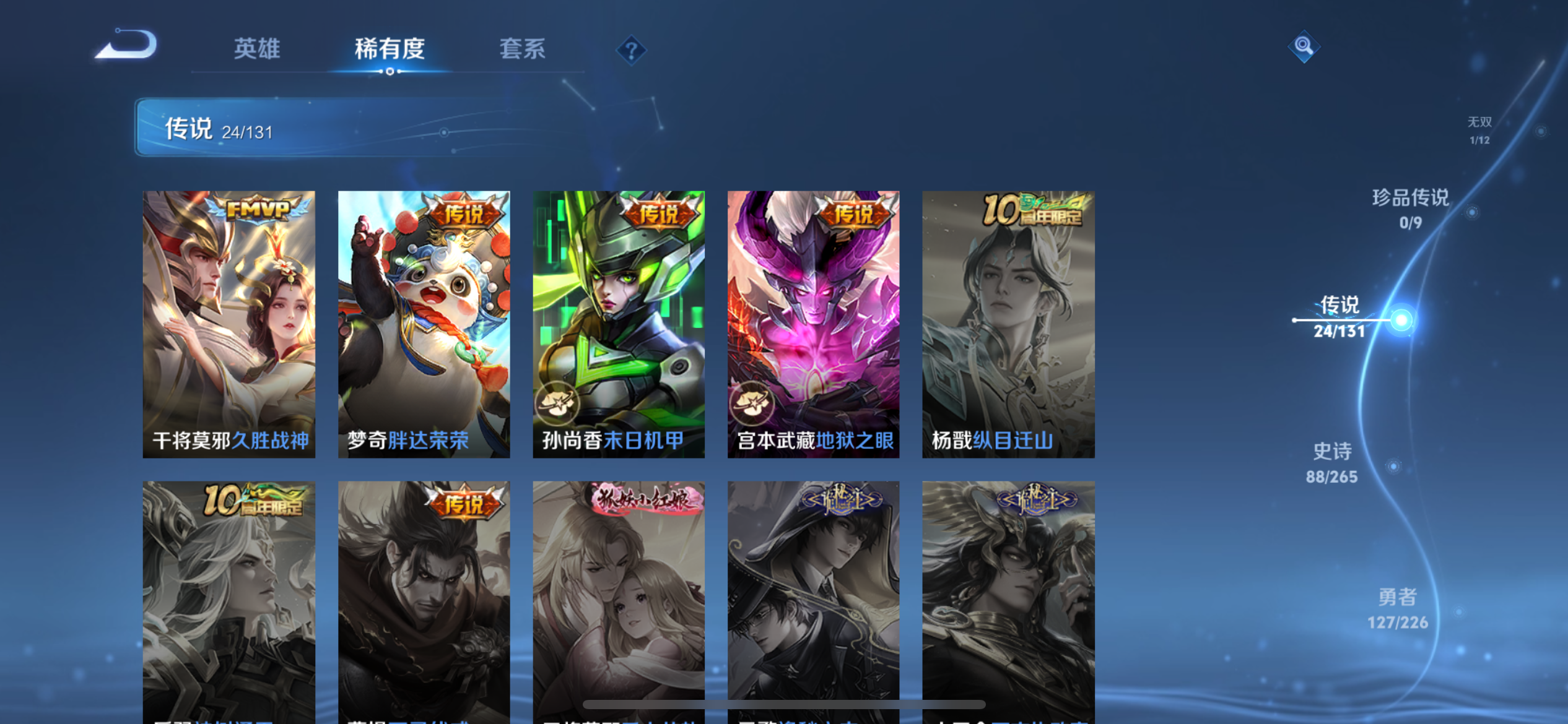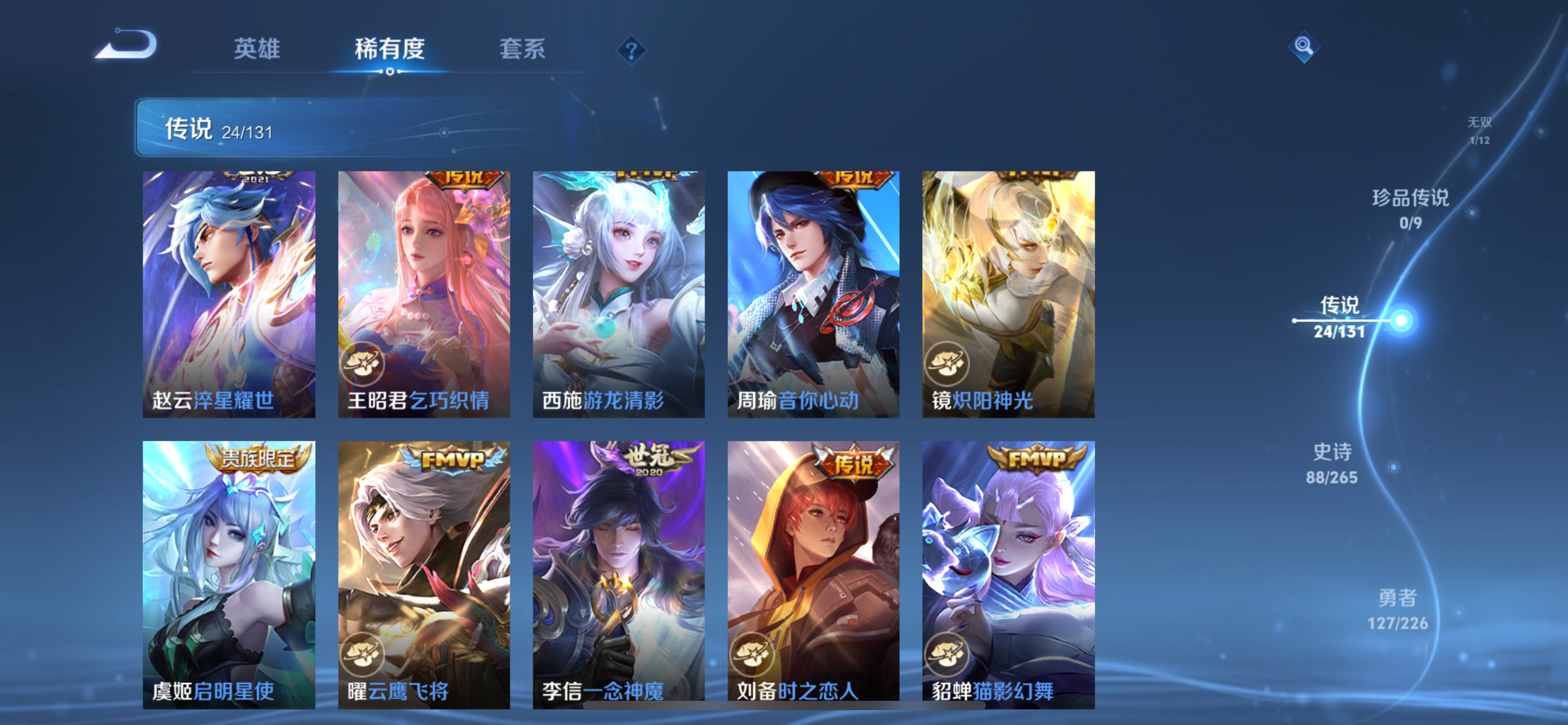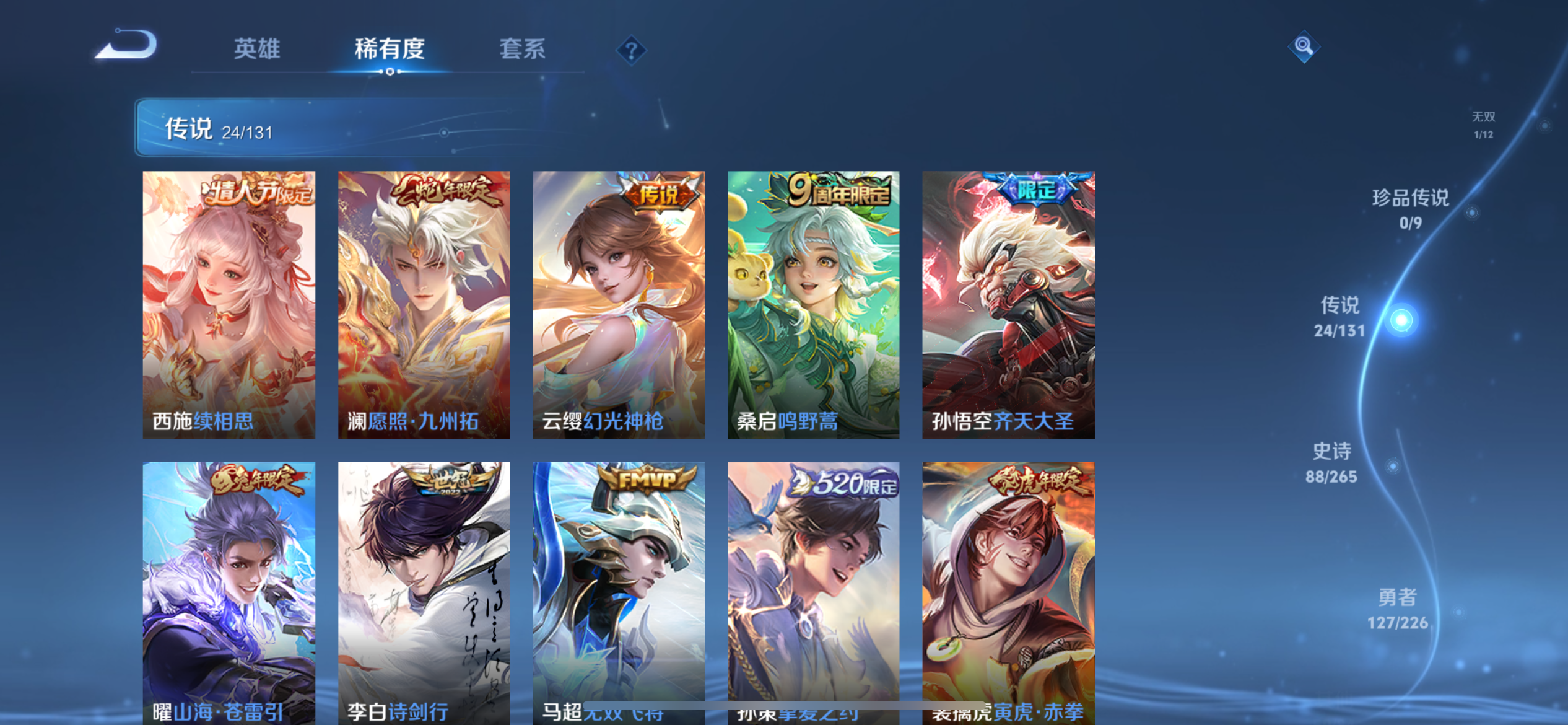 【王者荣耀】【lywz19650】珍品无双0 典藏2 无双1 珍品传说0 传说24 史诗88 英雄127 皮肤292 贵族8级 荣耀典藏:幻阙歌|弑呛猎影__无双皮肤:器灵·螭龙剑__传说皮肤:鸣野蒿|无双飞将|挚爱之约|炽阳神光|启明星使|胖达荣荣|地狱之眼|久胜战神|猫影幻舞|刘备-时之恋人|一念神魔|云鹰飞将|游龙清影|乞巧织情|淬星耀世|孙尚香-末日机甲|齐天大圣|诗剑行|周瑜-音你心动|山海·苍雷引|寅虎·赤拳|幻光神呛|愿照·九州拓|续相思__稀有限定:至尊宝|虞姬-霸王别姬|李小龙|梁祝|暗影游猎|冰锋战神|冰霜神祇|大漠名商|电玩高手|繁星吟游|古海寻踪|海滩派对|海盐诗旅|华丽摇滚|皇家上将|混沌棋|剑破天穹|江河有灵|金庭之子|黎明之约|迷踪丽影|魔术师|女武神|千军破阵|擒涛扼浪|驱傩正仪|燃音魔法|荣光圣徽|沙漠行僧|朔风刀|死亡摇滚|探海日志|醍醐杖|天穹祈灯|万华元夜|王者之锤|无心|午后时光|纤云弄巧|星空之诺|演武夺筹|疑决卦|阴阳师|银河之约|优雅恋人|驭风魔法|遇见飞天|御銮|原初追逐者|云间偶戏|暗夜贵公子|暗夜猫娘|暗隐猎兽者|暗渊魔法|缤纷独角兽|冰冠公主|冰雪圆舞曲|苍穹之光|乘风破浪|大乔-猫狗日记|德古拉伯爵|地狱岩魂|电玩·爆裂旋风|电玩小子|功夫厨神|鬼剑武藏|黄金分割率|箭羽风息|节奏热浪|金属风暴|吕布-末日机甲|魅语|梦奇-顽趣|女仆咖啡|偶像歌手|青蛇|绅士熊喵|圣诞狂欢|圣诞恋歌|诗语江南|水果甜心|水晶猎龙者|天才门将|赵云-未来纪元|星夜王子|摇滚巨星|鹰眼统帅|幽灵船长|月团寄思|至美·乘鲤谣|逐浪之夏|紫霞仙子|噬灭天穹|敬我三分|战舞者|东方月初|天穹之誓|修罗|曙光守护者|心灵战警|千年之狐|舞动绿茵|特工魅影|心灵骇客|星界战将|谧流熔炉|万物之道|器灵·浮梦炉|糖绘人间|原初探秘者|云中旅人|玲珑珍味|灵卜魔法|夺宝奇兵|死神来了|灵蛊蚀心|虚灵犬护|石田雨龙|逆浪荇歌|幻珠鲛人|黄忠-百相守梦|织梦人|涂山容容|荣光之誓|巫礼祀神|鹤鸣心笺__优质皮肤:尼罗河女神|创世神祝|年年有余|埃及法老|孤猎|木偶奇遇记|熊喵少女|午夜歌剧院|露花倒影|天启骑士|碧珀绯影|秩序猎龙将|锦衣卫|冰刃幻境|森|超能战警|维京掠夺者|踏雪寻梅|启蛰|战争骑士|画中游|第七人偶|潮流仙人|街头旋风|绝影神呛|荷鲁斯之眼|幸存者|赤焰之缨|前尘|特种部队|精灵王|龙域领主|占星师|花间舞|魇语军师|极冰防御线|棒球奇才|东海龙王|蔷薇王座|灼热之刃|帝国元帅|霓裳曲|异域舞娘|精灵公主|修竹墨客|长夏之忆|功夫炙烤|聚星闪耀|潮玩探月行|秘密基地|次元突破|鲨炮海盗猫|野性能量|丁香结|虹云星官|守护之力|坚韧之力|幻乐之宴|功夫老勺|命运角斗场|幻想奇妙夜|海滩丽影|阿尔法小队|兔女郎|死亡骑士|黄金武士|少女阿狸|天使之翼|玩偶对对碰|宫本武藏-未来纪元|东方不败|红桃皇后|忍·炎影|爱心护理|街头霸王|教廷特使|破局者|零食大作战|太极少年|乐园追猎者|幻泉雾影|契约魔法|次元傲视|无尽征程|黑桃队长|进击墨子号|拳王|时尚教父|救世之瞳|白色死神|白执事|大发明家|哥特玫瑰|西施-雪境奇遇|星梦巡礼|灵卦秘语|爆裂喵拳|猪八戒-西部大镖客|缤纷绘卷|掌控之力|铁骨偃魂|纽约教父|龙腾万里|霸王丸|乱世虎臣|敏锐之力|西施-归虚梦演|孙悟空-西部大镖客|牛魔-西部大镖客|龙舞盛年|汉昭烈帝|乓乓大师|五福同心|盾山-圆桌骑士|蒙犽-归虚梦演|万事如意|曜-归虚梦演|唤灵魔甲|沉稳之力|程咬金-群星魔术团|化身博士|花好人间|熔金海岸|春野之旅|潮玩骑士王|万象初新|苍林狼骑|蔚蓝守将|劲辣红锅|特工战影|炽热元素使|妄想特派|玫蓝誓约|死霸装|无双福将|踏浪烽翎|云械蓝图|克喵__贵族等级:贵族8级__王者段位:无双王者捡漏金标元流 金标雅典娜金标猪八戒等超多限定