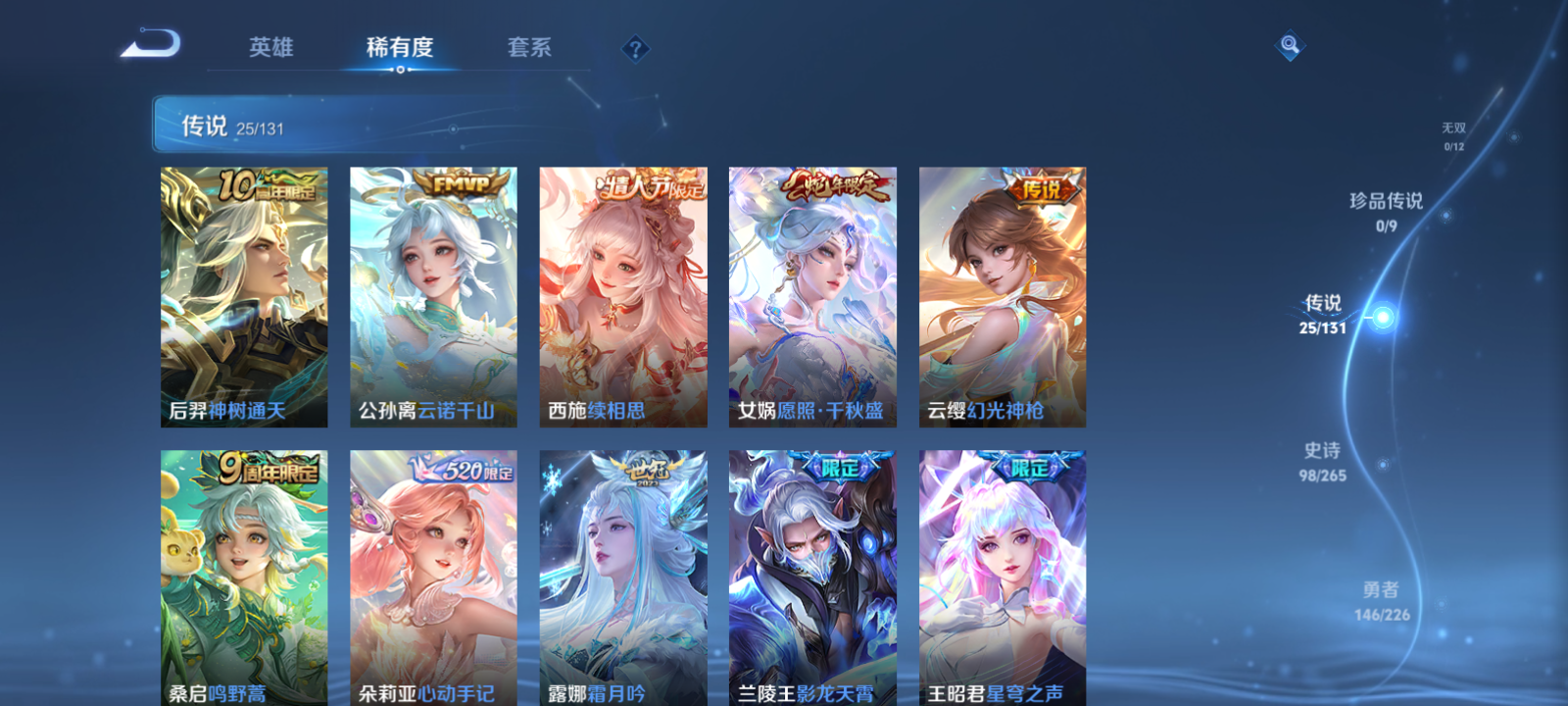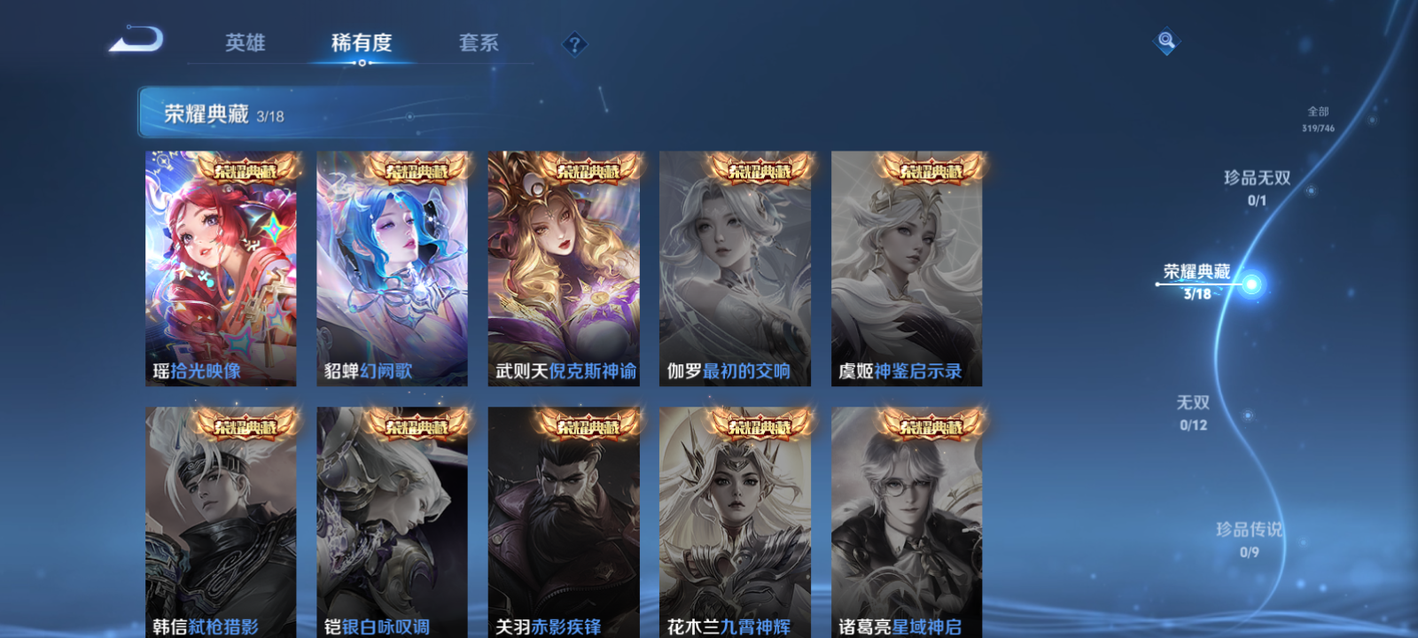 【王者荣耀】【lywz20046】珍品无双0 典藏3 无双0 珍品传说0 传说25 史诗98 英雄128 皮肤319 贵族8级 荣耀典藏:武则天|幻阙歌|倪克斯神谕|拾光映像__传说皮肤:鸣野蒿|无双飞将|炽阳神光|启明星使|地狱之眼|仲夏夜之梦|久胜战神|黄金狮子座|黄金白羊座|刘备-时之恋人|一念神魔|云鹰飞将|飞鸢探春|游龙清影|孙尚香-末日机甲|祈雪灵祝|霜月吟|星穹之声|影龙天霄|朵莉亚-心动手记|幻光神呛|愿照·千秋盛|续相思|云诺千山|神树通天__稀有限定:白晶晶|至尊宝|蔷薇恋人|梁祝|拒霜思|暗影游猎|百解令|大漠名商|地狱燃心|高山流水|古海寻踪|海滩派对|海盐诗旅|胡桃异想国|皇家上将|火炮绅士|剑破天穹|江河有灵|降魔|金庭之子|魔术师|擒涛扼浪|青焰无极|驱傩正仪|燃音魔法|荣光圣徽|沙漠行僧|探海日志|天穹祈灯|无心|五谷丰年|纤云弄巧|阴阳师|吟游魔法|驭风魔法|原初追逐者|云间偶戏|暗隐猎兽者|暗渊魔法|缤纷独角兽|冰冠公主|冰雪圆舞曲|乘风破浪|乘龙·聚宝船|大乔-猫狗日记|德古拉伯爵|地狱岩魂|电玩小子|伽罗-琥珀纪元|功夫厨神|鬼剑武藏|黄金分割率|节奏热浪|金属风暴|乐园奇幻夜|李元芳-蔬乡物语|龙骑士|吕布-末日机甲|魅力维加斯|魅语|女仆咖啡|偶像歌手|绅士熊喵|圣诞狂欢|圣诞恋歌|诗语江南|鲁班七号-蔬乡物语|水果甜心|水晶猎龙者|孙策-猫狗日记|天秀·启明|晚萤|赵云-未来纪元|星夜王子|摇滚巨星|鹰眼统帅|幽灵船长|遇见神鹿|月团寄思|至美·乘鲤谣|逐浪之夏|紫霞仙子|百里守约-百相守梦|老夫子-百相守梦|谪仙醉月|噬灭天穹|敬我三分|破空之剑|东方月初|涂山红红|埋骨钱|顽岩魄|蔡文姬-夏日便利店|虞姬-夏日便利店|天穹之誓|修罗|曙光守护者|心灵战警|孙尚香-时之恋人|舞动绿茵|特工魅影|茶境仙|星界战将|谧流熔炉|万物之道|化蝶舞|云中旅人|玲珑珍味|孙悟空-神迹守卫|流音漫舞|访茗客|灵卜魔法|苍威无极|圣弓游侠|刘禅-鸭鸭历险记|沈梦溪-鸭鸭历险记|雪豹·霜爪|龙之律动|布丁狗之约|虚灵犬护|逆浪荇歌|孙策-百相守梦|周瑜-百相守梦|戍鼓铭心|幻珠鲛人|黄忠-百相守梦|织梦人|光弋星穹|往忆晖光|荣光之誓|巫礼祀神|鹤鸣心笺__优质皮肤:尼罗河女神|一千零一夜|创世神祝|年年有余|埃及法老|孤猎|熊喵少女|午夜歌剧院|激情绿茵|秩序猎龙将|冰刃幻境|森|维京掠夺者|海军大将|绯红之刃|启蛰|威尼斯狂欢|第七人偶|街头旋风|绝影神呛|幸存者|赤焰之缨|隐刃|前尘|特种部队|精灵王|范海辛|星航指挥官|龙域领主|爱与和平|魇语军师|棒球奇才|东海龙王|灼热之刃|精准探案法|圣殿之光|霓裳曲|阿摩司公爵|修竹墨客|动物派对|绒语心约|暗都幽影|功夫炙烤|暖冬絮语|幻夜行动|聚星闪耀|潮玩探月行|虎啸剑宗|秘密基地|次元突破|鲨炮海盗猫|野性能量|丁香结|虹云星官|坚韧之力|幻乐之宴|功夫老勺|命运角斗场|幻想奇妙夜|海滩丽影|黑猫爱糖果|阿尔法小队|死亡骑士|少女阿狸|天使之翼|玩偶对对碰|红桃皇后|忍·炎影|街头霸王|教廷特使|金色潮汐|漠中幻影|时空谍影|决胜大满贯|破局者|王牌新星|零食大作战|西部游侠|太极少年|牛运亨通|危途狂花|契约魔法|潮玩牛仔|紫罗兰之誓|铁甲之心|重装意志|次元傲视|无尽征程|黑桃队长|拳王|救世之瞳|白色死神|程咬金-星际陆战队|白执事|哥特玫瑰|魅影绮裳|西施-雪境奇遇|金福满堂|星梦巡礼|景韶洛都|浪漫序章|雾都夜雨|逐霄战戟|铁骨偃魂|龙腾万里|乱世虎臣|经纬探寻者|敏锐之力|西施-归虚梦演|孙悟空-西部大镖客|鲁班大师-归虚梦演|热血海滩|龙舞盛年|汉昭烈帝|乓乓大师|五福同心|盾山-圆桌骑士|猎兽之王|蒙犽-归虚梦演|万事如意|曜-归虚梦演|唤灵魔甲|太乙真人-圆桌骑士|程咬金-群星魔术团|完美运算|化身博士|花好人间|熔金海岸|春野之旅|无尽旅途|万象初新|苍林狼骑|蔚蓝守将|劲辣红锅|特工战影|炽热元素使|妄想特派|秘证寻踪|春野闲踪|灵野札记|玫蓝誓约|命运加冕|潮玩士官长|小满鸭|死霸装|无双福将|锦麟游梦|踏浪烽翎|云械蓝图|戏梦巡演|落日弦歌|克喵|哪吒-罗小黑战记|张良-罗小黑战记|径山谋武|逐霄之志__贵族等级:贵族8级__王者段位:至尊星耀【女号】319皮肤3典藏25传说