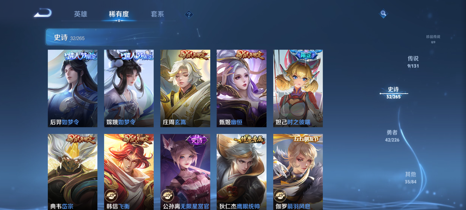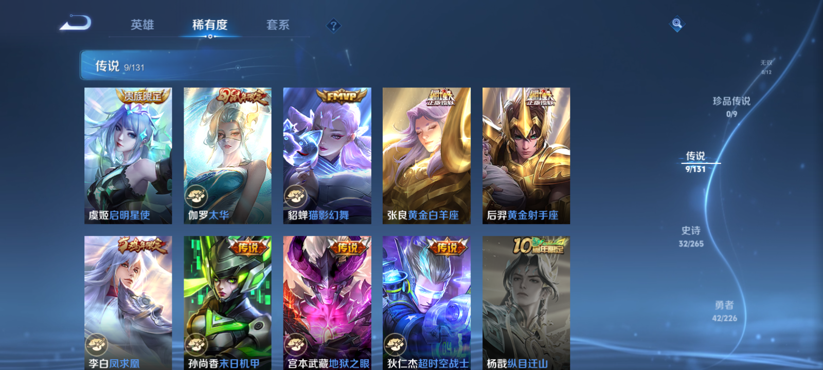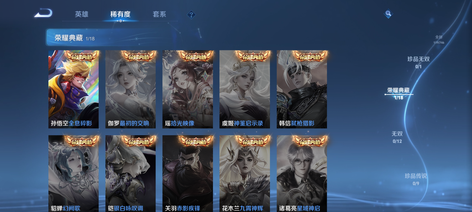 【王者荣耀】【lywz20036】珍品无双0 典藏1 无双0 珍品传说0 传说9 史诗32 英雄96 皮肤119 贵族0级 荣耀典藏:全息碎影__传说皮肤:启明星使|地狱之眼|狄仁杰-超时空战士|黄金射手座|黄金白羊座|猫影幻舞|孙尚香-末日机甲|凤求凰|太华__稀有限定:岱宗|玄嵩|幽恒|飞衡|时之彼端|嫦娥-如梦令|海滩派对|后羿-如梦令|皇家上将|混沌棋|凯尔特女王|炼金王|魔术师|蜃楼王|朔风刀|饕餮|王者之锤|星空之诺|演武夺筹|妖精王|疑决卦|阴阳师|御旌|御銮|逐梦之星|暗隐猎兽者|冰雪圆舞曲|德古拉伯爵|鬼剑武藏|黄金分割率|箭羽风息|节奏热浪|魅力维加斯|偶像歌手|水果甜心|孙策-猫狗日记|天才门将|摇滚巨星|鹰眼统帅|逐浪之夏|紫霞仙子|曙光守护者|千年之狐|无限星赏官|特工魅影|狰|烛龙|原初探秘者__优质皮肤:一千零一夜|创世神祝|埃及法老|木偶奇遇记|午夜歌剧院|露花倒影|激情绿茵|海之征途|锦衣卫|维京掠夺者|海军大将|绯红之刃|威尼斯狂欢|芝加哥教父|街头旋风|绝影神呛|地府判官|荷鲁斯之眼|幸存者|福禄兄弟|隐刃|特种部队|三太子|精灵王|剑舞者|范海辛|星航指挥官|龙域领主|花间舞|魇语军师|花见巫女|灼热之刃|圣殿之光|修竹墨客|野性能量|幻乐之宴|功夫老勺|命运角斗场|幻想奇妙夜|阿尔法小队|死亡骑士|黄金武士|少女阿狸|宫本武藏-未来纪元|街头霸王|拳王|鲤鱼之梦|爱与正义|白执事|大发明家|哥特玫瑰|掌控之力|乱世虎臣|敏锐之力|汉昭烈帝|五福同心|曜-归虚梦演|沉稳之力|化身博士|花好人间|万象初新__贵族等级:无贵族等级__王者段位:荣耀黄金高质量捡漏皮肤号多限定