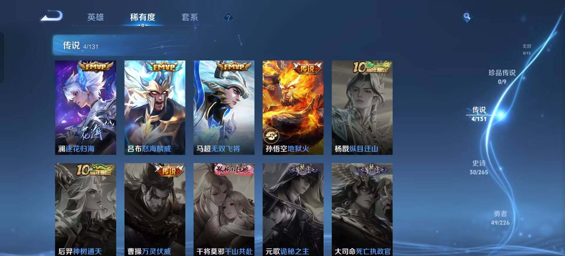 w10500,,,可立即换绑无需挂单养号,,铭文满级,,,传说4,,星传说1,,按键4,,,夺宝194,,安卓q-v6-最强王者段位-118英雄-104皮肤-0典藏-0珍品无双-0无双-0珍品传说-4传说-30史诗 【传说皮肤】:澜逐花归海,吕布怒海麟威,马超无双飞将,孙悟空地狱火 【限定皮肤】:狄仁杰阴阳师,赵云皇家上将,高渐离玩趣恶龙,扁鹊奇幻香踪,狄仁杰魔术师,项羽海滩派对,杨戬潮玩骑兵