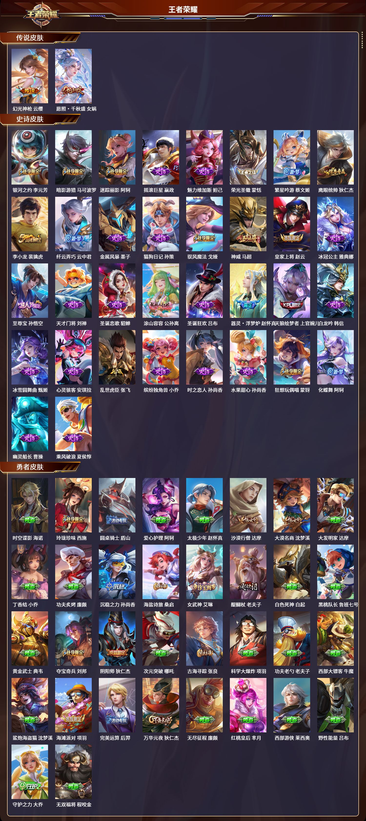 安卓qq/至尊星耀/150皮肤/125英雄/0典藏/0珍品无双/0无双/0珍品传说/2传说/34史诗/7稀有英雄【2 传说皮肤】幻光神呛 云缨愿照·千秋盛 女娲【34 史诗皮肤】银河之约 李元芳暗影游猎 马可波罗迷踪丽影 阿轲摇滚巨星 嬴政魅力维加斯 妲己荣光圣徽 蒙恬繁星吟游 蔡文姬鹰眼统帅 狄仁杰李小龙 裴擒虎纤云弄巧 云中君金属风暴 墨子猫狗日记 孙策驭风魔法 戈