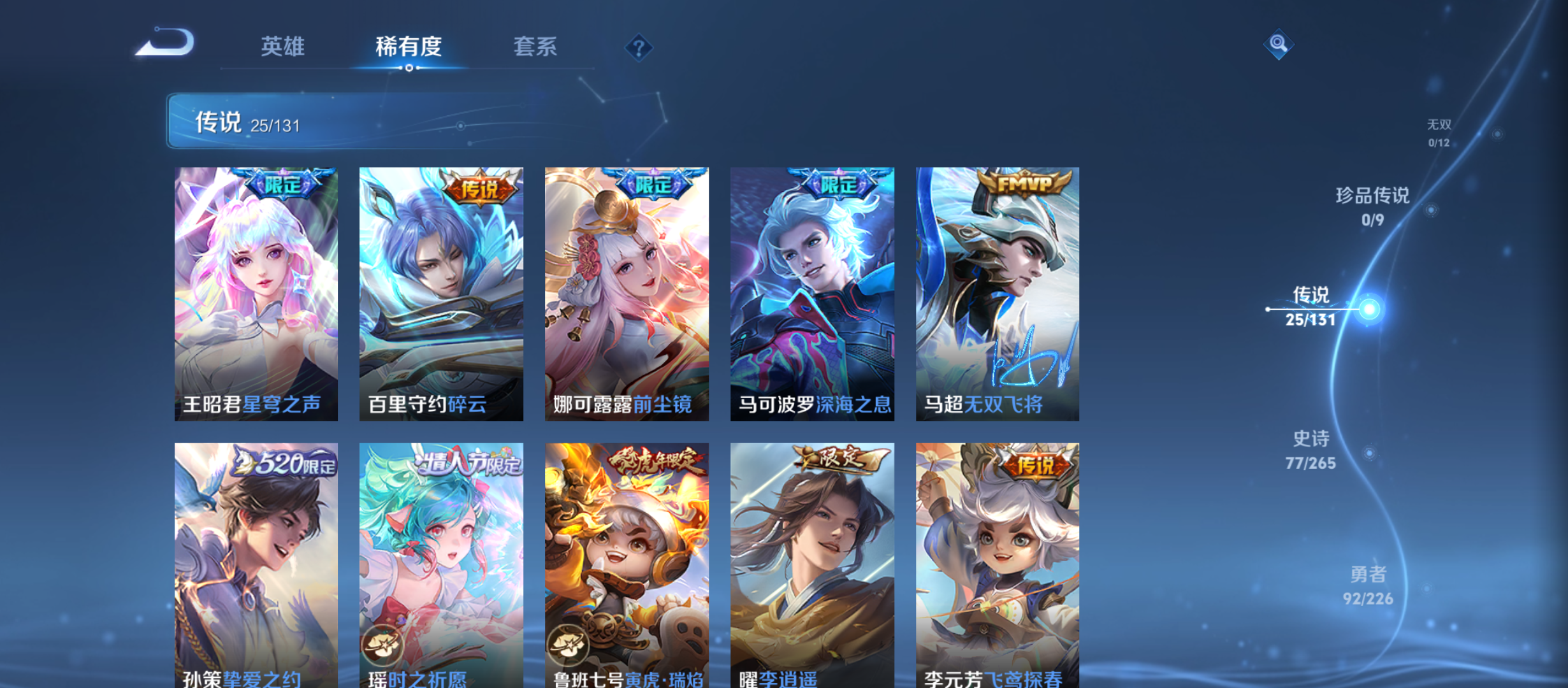 txwz21294 v8 237皮 1天幕 2典藏( 最初的交响,鸣剑·曳影)25传说(神树通天,飞鸢探春,鸣野蒿,武圣,鹤归松栖,浮生妄,燃星之曲,启明星使,山海·琳琅生,山海·苍雷引,山海·炽霜斩,绛天战甲,怒海麟威,绯月行,星穹之声,碎云,深海之息,前尘镜,挚爱之约,李 ,无双飞将,时之祈愿,寅虎·瑞焰,一念神魔,炽阳神光)77史诗(荣光圣徽,万灵启世,妄想食味,雪豹·霜爪,龙之律动,鸭鸭历险记,乐园奇幻夜,茶境仙,化蝶舞,黎明之约,特工魅影,心灵战警,舞动绿茵,江河有灵,功夫厨神,炽弈燎原,未来纪元,苍穹之光,缤纷独角兽,驭风魔法,鹤归松栖,引擎之心,偶像歌手,匿光破解者,德古拉伯爵,星界游侠,暗隐猎兽者,末日机甲,山海·玄木吟,山海·碧波行,白鹤梁神女,天才门将,顽趣,星夜王子,无心,超时空战士,五谷丰年,心灵骇客,滕王阁序,原初追逐者,圣诞恋歌,圣诞狂欢,紫霞仙子,曙光守护者,水晶猎龙者,黄金分割率,匿光启智者,冰冠公主,电玩高手,千筹问战,天狼绘梦者,魔术师,冰雪圆舞曲,吟游魔法,节奏热浪,鬼剑武藏,火炮绅士,龙骑士,水果甜心,皇家上将,寅虎·展翼,女仆咖啡,热力回旋,遇见神鹿,修罗,真爱魔法,金属风暴,拒霜思,高山流水,鹰眼统帅,梁祝,逐浪之夏,航海奇遇记,纤云弄巧,魅力维加斯,时之恋人,乘风破浪)