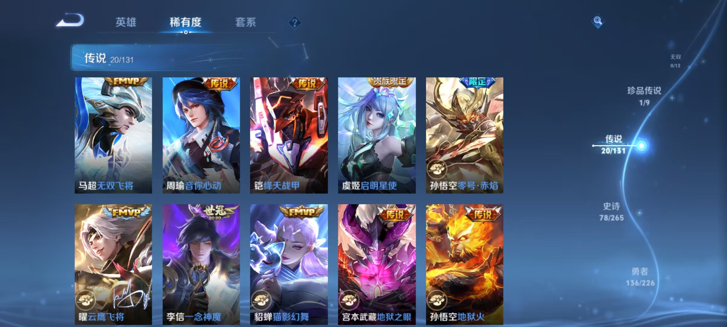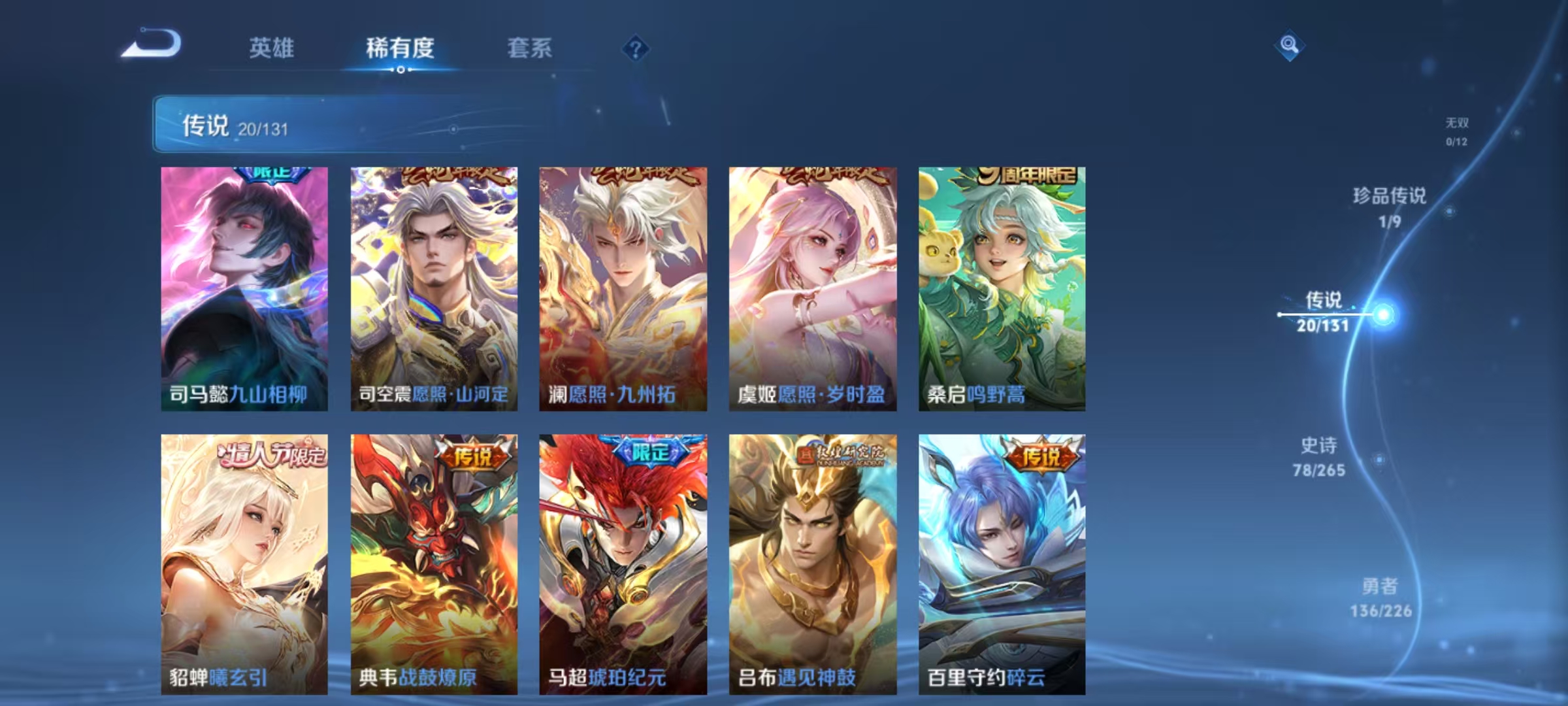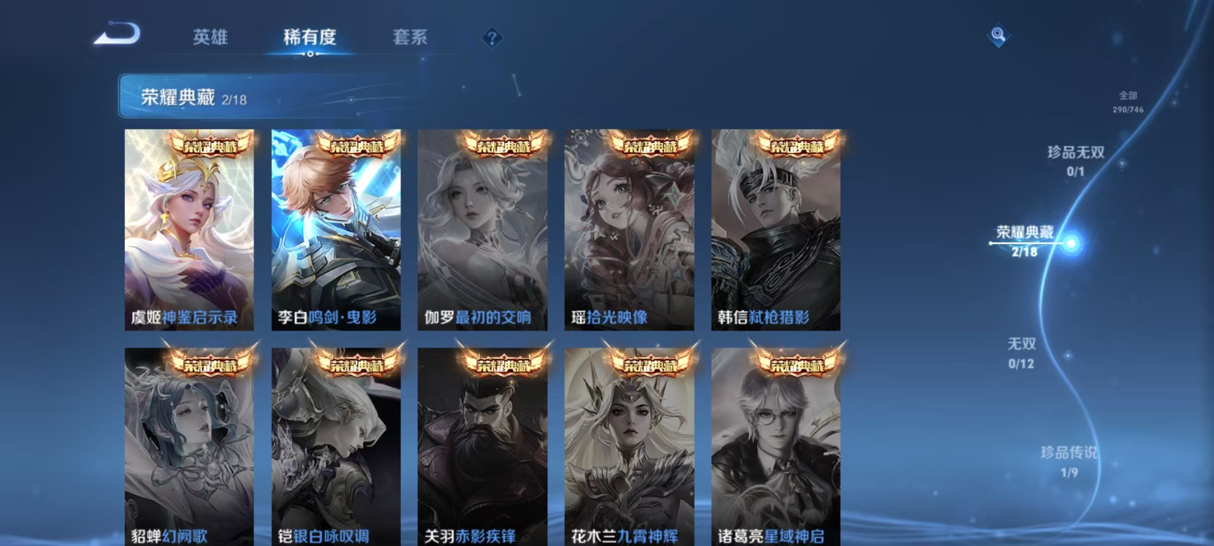 【王者荣耀】【lywz20054】珍品无双0 典藏2 无双0 珍品传说1 传说20 史诗78 英雄127 皮肤290 贵族8级 荣耀典藏:神鉴启示录|鸣剑·曳影__珍品传说:怪盗基德__传说皮肤:鸣野蒿|无双飞将|绛天战甲|启明星使|地狱之眼|地狱火|猫影幻舞|一念神魔|云鹰飞将|零号·赤焰|马超-琥珀纪元|碎云|貂蝉-曦玄引|遇见神鼓|战鼓燎原|周瑜-音你心动|愿照·岁时盈|愿照·山河定|愿照·九州拓|九山相柳__稀有限定:大圣娶亲|一生所爱|蔷薇恋人|李小龙|暗影游猎|百解令|大漠名商|地狱燃心|古海寻踪|海滩派对|海盐诗旅|皇家上将|剑破天穹|江河有灵|金庭之子|魔术师|匿光侦查者|奇幻香踪|擒涛扼浪|燃音魔法|沙漠行僧|探海日志|天穹祈灯|无心|五谷丰年|纤云弄巧|星界游侠|阴阳师|驭风魔法|原初追逐者|暗夜贵公子|暗隐猎兽者|暗渊魔法|白蛇|冰雪圆舞曲|乘风破浪|德古拉伯爵|地狱岩魂|电玩·爆裂旋风|电玩小子|功夫厨神|鬼剑武藏|黄金分割率|节奏热浪|金属风暴|李元芳-蔬乡物语|吕布-末日机甲|魅力维加斯|魅语|女仆咖啡|圣诞狂欢|圣诞恋歌|鲁班七号-蔬乡物语|水果甜心|水晶猎龙者|孙策-猫狗日记|天才门将|天秀·启明|赵云-未来纪元|星夜王子|摇滚巨星|鹰眼统帅|幽灵船长|月团寄思|钟无艳-超时空战士|逐浪之夏|紫霞仙子|百里守约-百相守梦|老夫子-百相守梦|噬灭天穹|敬我三分|破空之剑|天穹之誓|怒海争锋|曙光守护者|心灵战警|无限星赏官|舞动绿茵|特工魅影|心灵骇客|茶境仙|星界战将|谧流熔炉|万物之道|器灵·浮梦炉|化蝶舞|云中旅人|玲珑珍味|孙悟空-神迹守卫|流音漫舞|访茗客|暖冬·兔眠|灵卜魔法|圣弓游侠|灵蛊蚀心|雪豹·霜爪|龙之律动|布丁狗之约|虚灵犬护|逆浪荇歌|黄忠-百相守梦|织梦人|光弋星穹|往忆晖光|荣光之誓|万灵启世|巫礼祀神|鹤鸣心笺__优质皮肤:一千零一夜|创世神祝|年年有余|埃及法老|孤猎|熊喵少女|午夜歌剧院|露花倒影|激情绿茵|天启骑士|碧珀绯影|秩序猎龙将|冰刃幻境|超能战警|维京掠夺者|海军大将|踏雪寻梅|启蛰|战争骑士|画中游|威尼斯狂欢|芝加哥教父|街头旋风|绝影神呛|地府判官|幸存者|赤焰之缨|福禄兄弟|前尘|特种部队|精灵王|剑舞者|范海辛|星航指挥官|龙域领主|爱与和平|花间舞|魇语军师|极冰防御线|花见巫女|灼热之刃|圣殿之光|帝国元帅|霓裳曲|加勒比小姐|阿摩司公爵|暗都幽影|功夫炙烤|聚星闪耀|潮玩探月行|秘密基地|次元突破|鲨炮海盗猫|虹云星官|守护之力|坚韧之力|幻乐之宴|功夫老勺|命运角斗场|幻想奇妙夜|海滩丽影|阿尔法小队|兔女郎|死亡骑士|黄金武士|少女阿狸|天使之翼|玩偶对对碰|宫本武藏-未来纪元|红桃皇后|忍·炎影|街头霸王|教廷特使|漠中幻影|破局者|零食大作战|西部游侠|太极少年|乐园追猎者|牛运亨通|幻泉雾影|潮玩造梦师|危途狂花|胡桃狂想曲|契约魔法|潮玩牛仔|紫罗兰之誓|拳王|时尚教父|救世之瞳|白色死神|程咬金-星际陆战队|白执事|大发明家|哥特玫瑰|魅影绮裳|西施-雪境奇遇|金福满堂|星梦巡礼|灵卦秘语|爆裂喵拳|景韶洛都|浪漫序章|猪八戒-西部大镖客|掌控之力|雾都夜雨|铁骨偃魂|纽约教父|龙腾万里|乱世虎臣|敏锐之力|西施-归虚梦演|孙悟空-西部大镖客|牛魔-西部大镖客|鲁班大师-归虚梦演|龙舞盛年|汉昭烈帝|乓乓大师|五福同心|盾山-圆桌骑士|曜-归虚梦演|唤灵魔甲|太乙真人-圆桌骑士|沉稳之力|程咬金-群星魔术团|完美运算|化身博士|花好人间|熔金海岸|春野之旅|无尽旅途|万象初新|潮玩骑兵|苍林狼骑|蔚蓝守将|劲辣红锅|特工战影|炽热元素使|妄想特派|秘证寻踪|春野闲踪|灵野札记|玫蓝誓约|命运加冕|潮玩士官长|小满鸭|死霸装|无双福将|锦麟游梦|踏浪烽翎|云械蓝图|落日弦歌|克喵|哪吒-罗小黑战记|张良-罗小黑战记|径山谋武|逐霄之志__贵族等级:贵族8级__王者段位:绝世王者