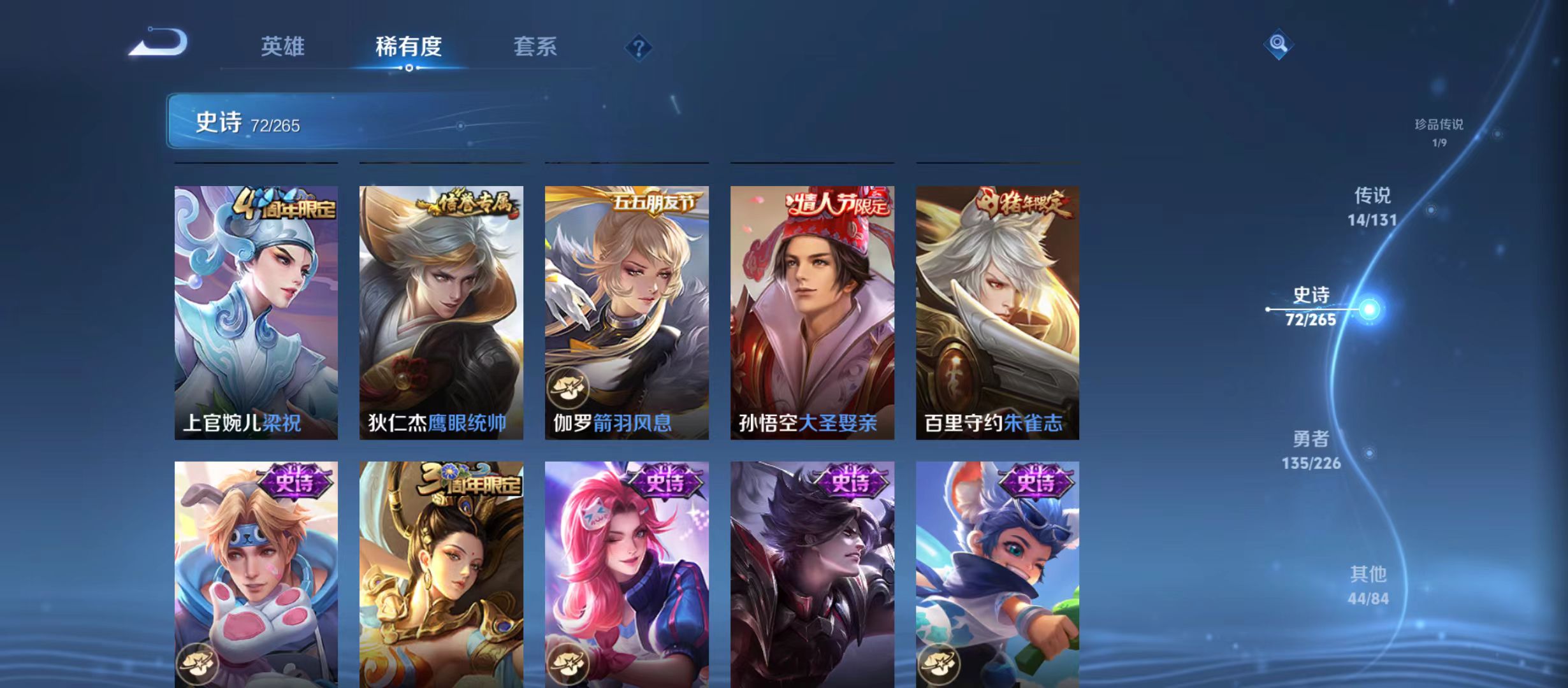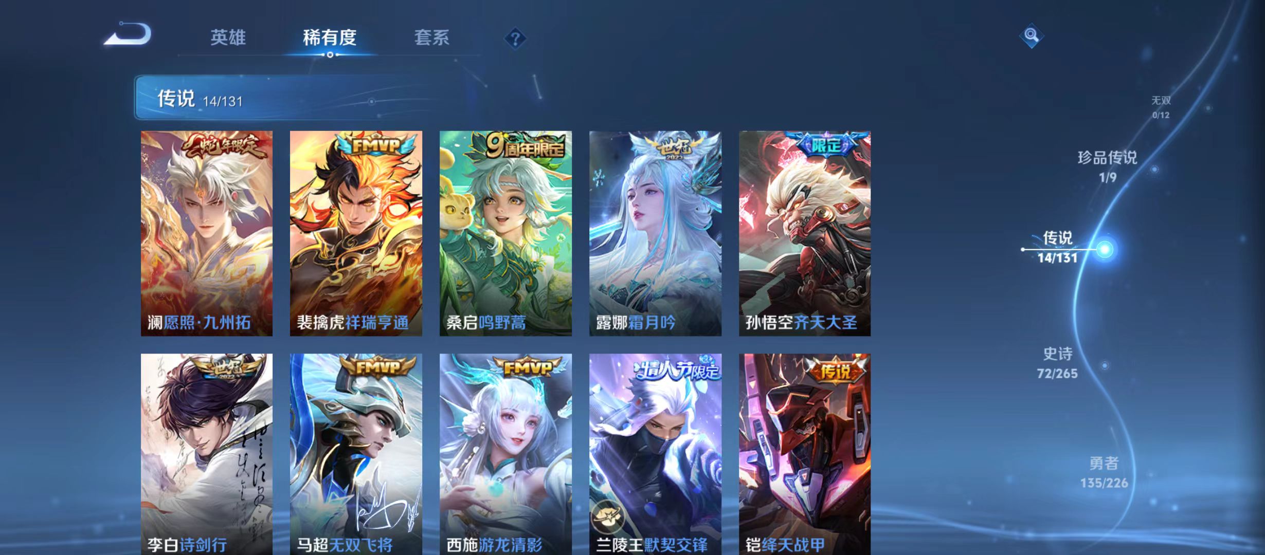 txwz21357 v7-267皮肤 1典藏鸣剑·曳影 1珍品怪盗基德 14传说黄金狮子座,愿照·九州拓,祥瑞亨通,鸣野蒿,游龙清影,绛天战甲,霜月吟,地狱之眼,诗剑行,无双飞将,齐天大圣,零号·赤焰,默契交锋,云鹰飞将 72史诗