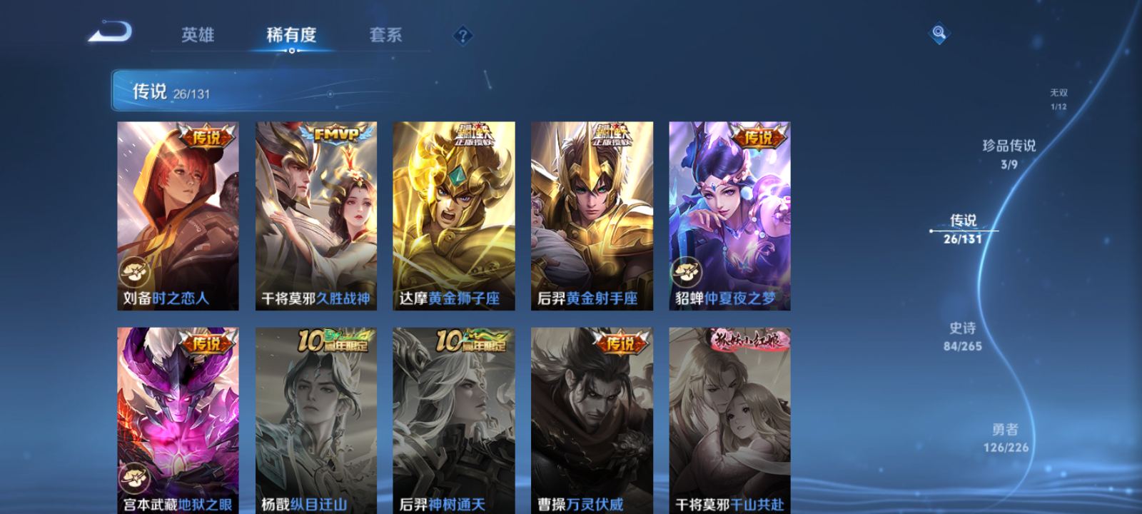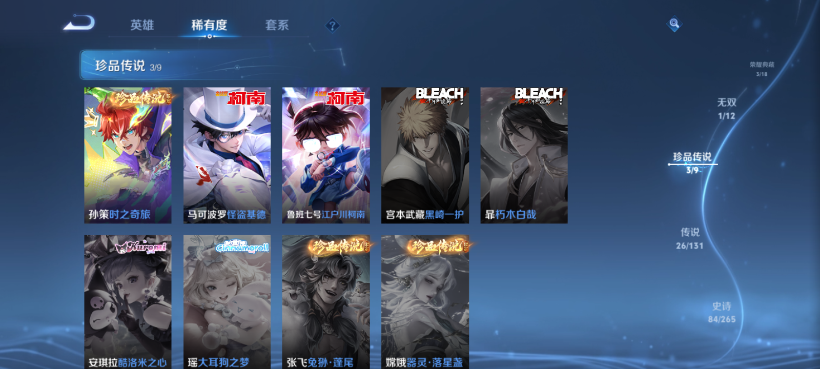 【王者荣耀】【lywz20578】珍品无双0 典藏3 无双1 珍品传说3 传说26 史诗84 英雄127 皮肤284 贵族7级 荣耀典藏:无限飓风号|银白咏叹调|鸣剑·曳影__无双皮肤:雪境奇遇__珍品传说:江户川柯南|怪盗基德|孙策-时之奇旅__传说皮肤:绛天战甲|炽阳神光|启明星使|地狱之眼|孙策-末日机甲|仲夏夜之梦|久胜战神|黄金狮子座|黄金射手座|刘备-时之恋人|一念神魔|云鹰飞将|乞巧织情|淬星耀世|黄金天蝎座|怒海麟威|乘龙·铭钟鼎|灼幽烈阳|冥王哈迪斯|幻光神呛|愿照·岁时盈|愿照·山河定|愿照·九州拓|愿照·众生和|愿照·福禄聚|愿照·千秋盛__稀有限定:白晶晶|至尊宝|岱宗|蔷薇恋人|虎魄|神威|李小龙|唐三藏|拒霜思|百解令|大漠名商|地狱燃心|电玩高手|古海寻踪|海滩派对|海盐诗旅|航海奇遇记|皇家上将|江河有灵|金庭之子|梦圆繁星|魔术师|匿光侦查者|女武神|千军破阵|擒涛扼浪|驱傩正仪|燃音魔法|沙漠行僧|探海日志|醍醐杖|天穹祈灯|玩趣恶龙|万华元夜|无心|五谷丰年|午后时光|纤云弄巧|星界游侠|驯魔猎人|演武夺筹|夜都怪侠|疑决卦|阴阳师|吟游魔法|驭风魔法|云间偶戏|暗夜贵公子|暗夜猫娘|暗隐猎兽者|缤纷独角兽|冰冠公主|冰雪圆舞曲|苍穹之光|乘风破浪|大乔-猫狗日记|德古拉伯爵|地狱岩魂|电玩·爆裂旋风|电玩小子|伽罗-琥珀纪元|功夫厨神|鬼剑武藏|黄金分割率|箭羽风息|节奏热浪|金属风暴|龙骑士|吕布-末日机甲|魅力维加斯|魅语|女仆咖啡|偶像歌手|绅士熊喵|圣诞狂欢|圣诞恋歌|水果甜心|水晶猎龙者|孙策-猫狗日记|天才门将|晚萤|赵云-未来纪元|星夜王子|雪夜绮愿|鹰眼统帅|幽灵船长|月团寄思|钟无艳-超时空战士|逐浪之夏|紫霞仙子|天穹之誓|曙光守护者|心灵战警|千年之狐|无限星赏官|舞动绿茵|特工魅影|心灵骇客|茶境仙|谧流熔炉|器灵·浮梦炉|糖绘人间|瑰影绮梦|化蝶舞|云中旅人|玲珑珍味|流音漫舞|访茗客|暖冬·兔眠|灵卜魔法|墨子-神迹守卫|落雪兰心|龙之律动|涂山容容|鹤鸣心笺__优质皮肤:尼罗河女神|创世神祝|埃及法老|孤猎|木偶奇遇记|午夜歌剧院|激情绿茵|天启骑士|锦衣卫|超能战警|英喵野望|启蛰|第七人偶|潮流仙人|街头旋风|绝影神呛|地府判官|赤焰之缨|福禄兄弟|隐刃|前尘|特种部队|剑舞者|龙域领主|占星师|魇语军师|花见巫女|棒球奇才|圣殿之光|帝国元帅|加勒比小姐|阿摩司公爵|精灵公主|修竹墨客|绒语心约|异域游侠|功夫炙烤|暖冬絮语|聚星闪耀|潮玩探月行|虎啸剑宗|瓷语鉴心|秘密基地|次元突破|鲨炮海盗猫|野性能量|虹云星官|守护之力|坚韧之力|幻乐之宴|命运角斗场|幻想奇妙夜|海滩丽影|阿尔法小队|兔女郎|死亡骑士|黄金武士|少女阿狸|天使之翼|宫本武藏-未来纪元|红桃皇后|忍·炎影|街头霸王|教廷特使|鸿运当头|金色潮汐|漠中幻影|时空谍影|决胜大满贯|破局者|零食大作战|太极少年|乐园追猎者|牛运亨通|幻泉雾影|潮玩造梦师|危途狂花|胡桃狂想曲|契约魔法|无尽征程|黑桃队长|进击墨子号|拳王|白色死神|大发明家|哥特玫瑰|魅影绮裳|西施-雪境奇遇|金福满堂|星梦巡礼|灵卦秘语|爆裂喵拳|景韶洛都|缤纷绘卷|掌控之力|雾都夜雨|逐霄战戟|铁骨偃魂|纽约教父|龙腾万里|敏锐之力|西施-归虚梦演|孙悟空-西部大镖客|牛魔-西部大镖客|鲁班大师-归虚梦演|龙舞盛年|汉昭烈帝|乓乓大师|五福同心|盾山-圆桌骑士|蒙犽-归虚梦演|万事如意|曜-归虚梦演|唤灵魔甲|沉稳之力|完美运算|化身博士|花好人间|熔金海岸|春野之旅|潮玩骑士王|万象初新|苍林狼骑|蔚蓝守将|劲辣红锅|特工战影|炽热元素使|妄想特派|秘证寻踪|玫蓝誓约|无双福将|踏浪烽翎|克喵__贵族等级:贵族7级__王者段位:无双王者捡漏柯南套 珍品孙策 无双甄姬超多限定热门皮肤