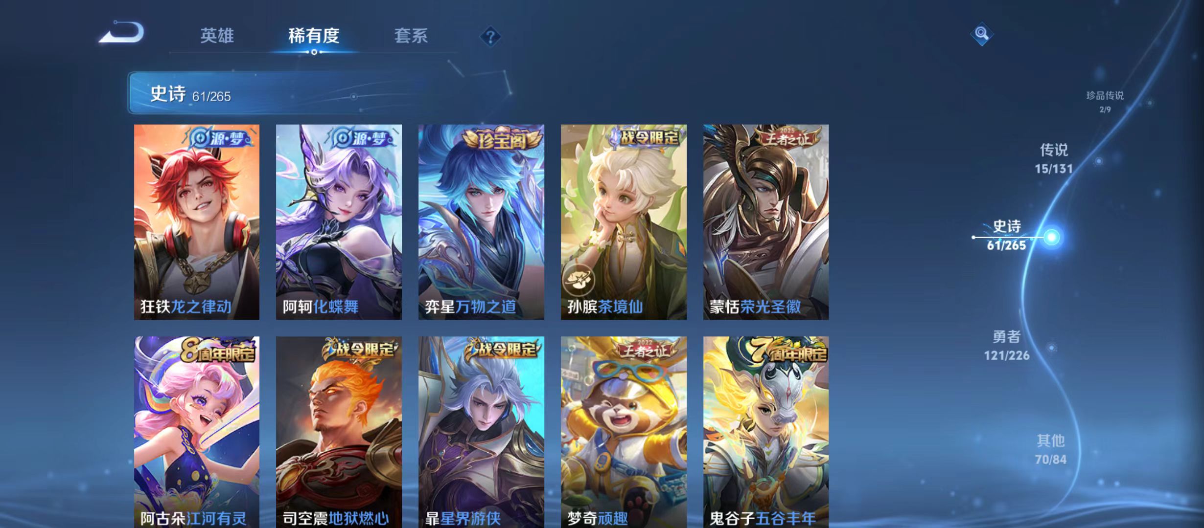 v8【271皮肤2典藏2珍品15传说】银·白咏叹调 九霄神辉 器灵·落星盏 时之奇旅 山海·炽霜斩 燃星之曲 鸣野蒿 山海·苍雷引 绛天战甲 胖达荣荣 地狱火 仲夏夜之梦 冠军飞将 启明星使 愿照·千秋盛 幻光神呛 一念神魔 云鹰飞将 愿照·九州拓 心灵骇客 化蝶舞 心灵战警 水果甜心 特工魅影 猫狗日记 冰冠公主 龙之律动 乐园奇幻夜 玩趣恶龙 千年之狐 紫霞仙子 星夜王子 江河有灵 荣光圣徽 地狱燃心 万物之道 冰雪圆舞曲 末日机甲 茶境仙 曙光守护者 暗隐猎兽者 绅士熊喵 幽灵船长 乘风破浪 修罗 节奏热浪 月团寄思 鬼剑武藏 猫狗日记 魅语 电玩小子 金属风暴 德古拉伯爵 地狱岩魂 摇滚巨星 霸王丸 神威 飞衡 阴阳师 魔术师 暖冬·兔眠 蔚蓝守将 华丽摇滚 单词大作战 暗影游猎 匿光追影者 银河之约 落雪兰心 水晶猎龙者 遇见飞天 逐梦之影 乓乓大师 海滩派对 梁祝 冰锋战神 天狼绘梦者 潮玩骑士王 美猴王 五谷丰年 李小龙 皇家上将 超时空战士 火炮绅士 西部大镖客 黎明之约 高山流水 沉稳之力 死亡摇滚 星界游侠 大圣娶亲 幻夜卜梦 星空之诺 狂想玩偶喵 死亡骑士 白色死神 浪漫序章 爱心护理 布丁狗之约 忍·炎影 小满鸭 潮玩探月行 化身博士 死霸装 幽兰居士 丁香结 大发明家 守护之力 踏浪烽翎 海滩丽影 如懿 罗小黑战记 鹤鸣心笺 幻夜行动 破局者 西部游侠 无双福将 坚韧之力 功夫炙烤 星际陆战队 暗都幽影 教廷特使 敏锐之力 兔女郎 救世之瞳 缤纷绘卷 掌控之力 纽约教父 熔金海岸 秘密基地 未来纪元 虹云星官 幻想奇妙夜 功夫老勺 次元突破 黄金武士 万象初新 圆桌骑士 哥特玫瑰 少女阿狸 乱世虎臣 奇妙博物学 访茗客 拳王 星梦巡礼 魅影绮裳 街头霸王 归虚梦演 幻泉雾影 太极少年 野性能量 幻乐之宴 科学大爆炸 灵卦秘语 龙腾万里 鲨炮海盗猫 灵野札记 春野闲踪 汉昭烈帝 玫蓝誓约 制霸全明星 花好人间 五福同心 流音漫舞 天穹祈灯 沙漠行僧 聚星闪耀 古海寻踪 逆浪荇歌 御狮 朔风刀 探海日志 无畏之灵·狰 混沌棋 万华元夜 顽趣 疑决卦 原初追逐者 驱傩正仪 谧流熔炉 金庭之子 饕餮 醍醐杖 御銮 御霄 重明 御旌 云中旅人 凯尔特女王 原初探秘者 穷奇 荣光之誓 千军破阵 海盐诗旅 烛龙 擒涛扼浪 大漠名商 演武夺筹 虚灵犬护
