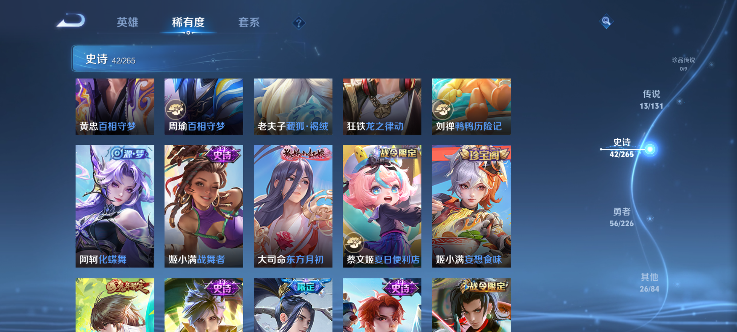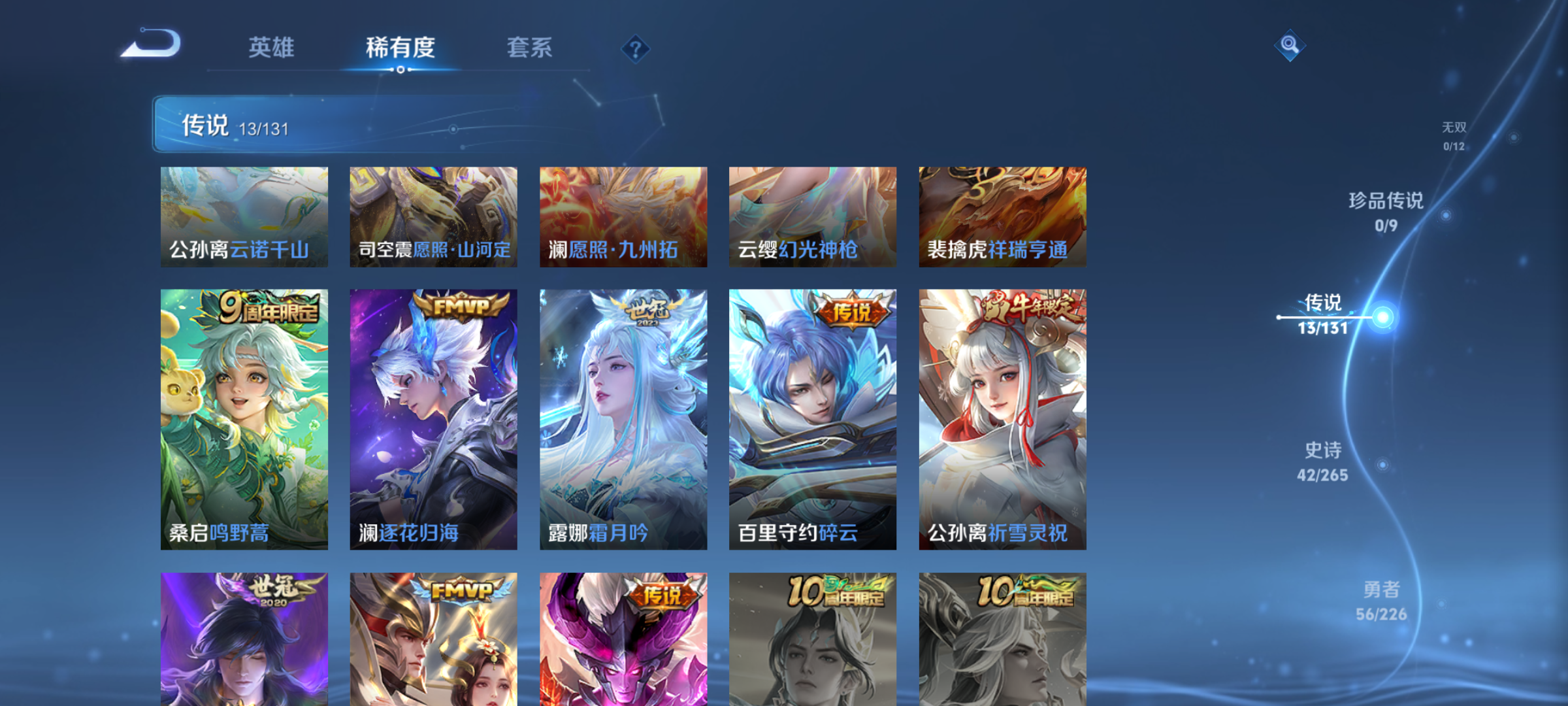 txwz21715 v7-138皮 1典藏 鸣剑·曳影 13传说 久胜战神,地狱之眼,霜月吟,祥瑞亨通,云诺千山,祈雪灵祝,愿照·山河定,幻光神呛,愿照·九州拓,鸣野蒿,碎云,一念神魔,逐花归海 42史诗 摇滚巨星,星夜王子,巫礼祀神,妄想食味,万灵启世,光弋星穹,心灵战警,云间偶戏,涂山容容,织梦人,百相守梦,鬼剑武藏,百相守梦,乱世虎臣,原初追逐者,节奏热浪,天秀·启明,圣诞狂欢,鸭鸭历险记,藏狐·褐绒,龙之律动,化蝶舞,心灵骇客,曙光守护者,幽灵船长,鹰眼统帅,魔术师,傲雪梅呛,无限星赏官,山海·玄木吟,暗隐猎兽者,皇家上将,箭羽风息,天才门将,特工魅影,乘风破浪,夏日便利店,战舞者,东方月初,水果甜心,魅力维加斯,赏金猎手