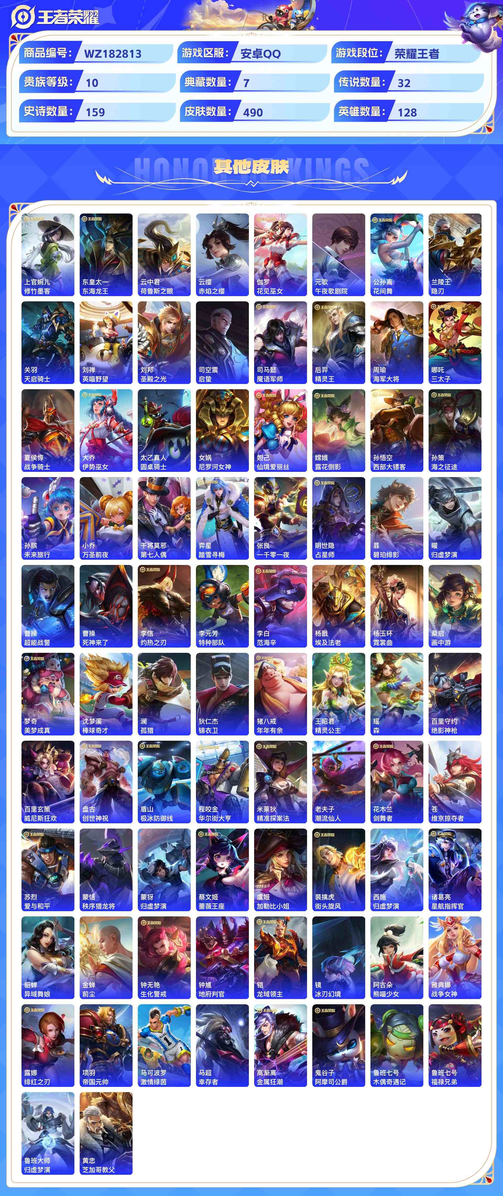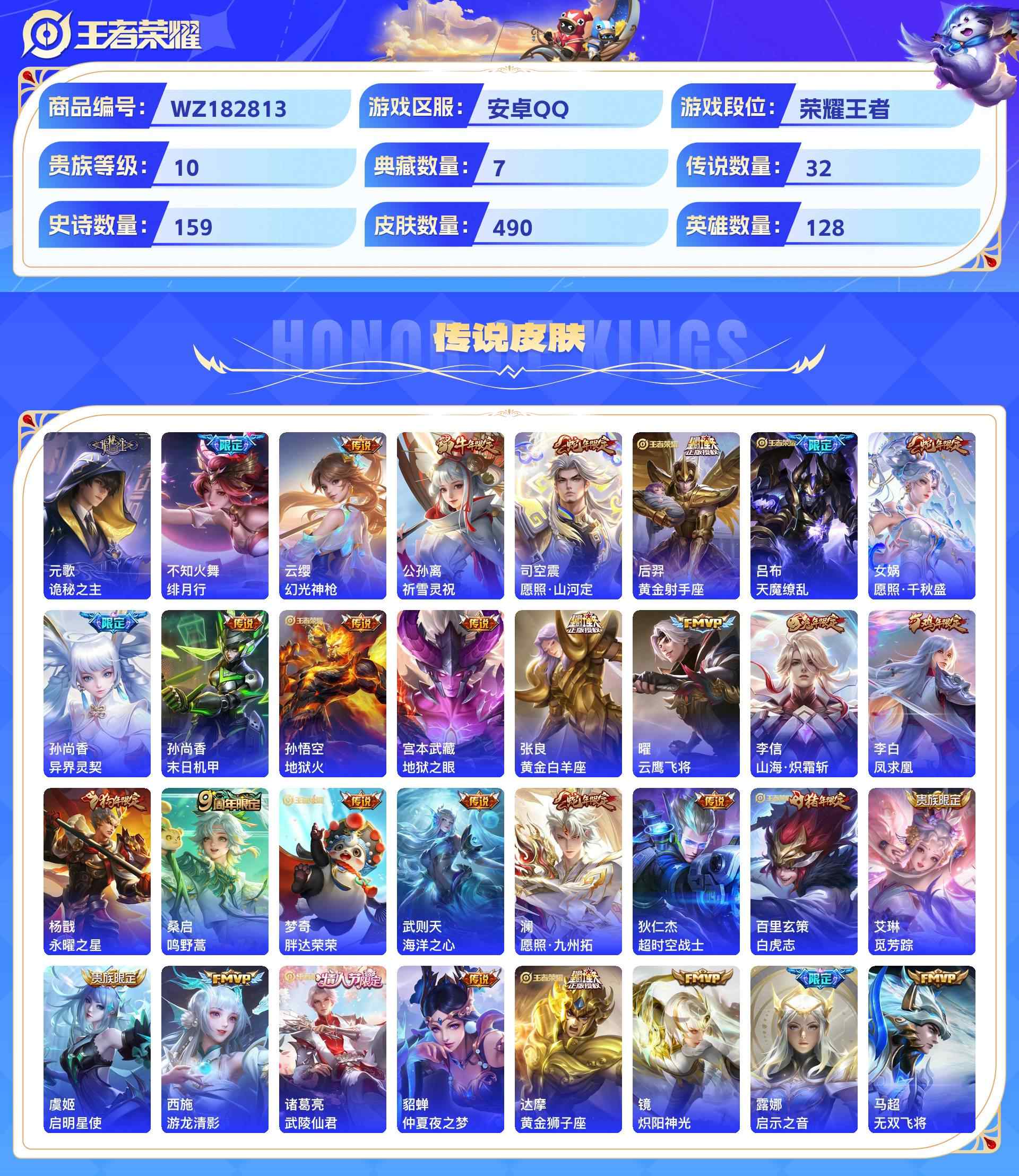 wz182813|极品号2金标(上官婉儿 海月)【荣耀典藏】天鹅之梦倪克斯神谕九霄神辉神鉴启示录星域神启幻阙歌星空梦想【无双限定】神罪安卓qq 贵族10级 490皮 7典藏 1无双 32传说 159史诗4星传说13个性按键1天幕
