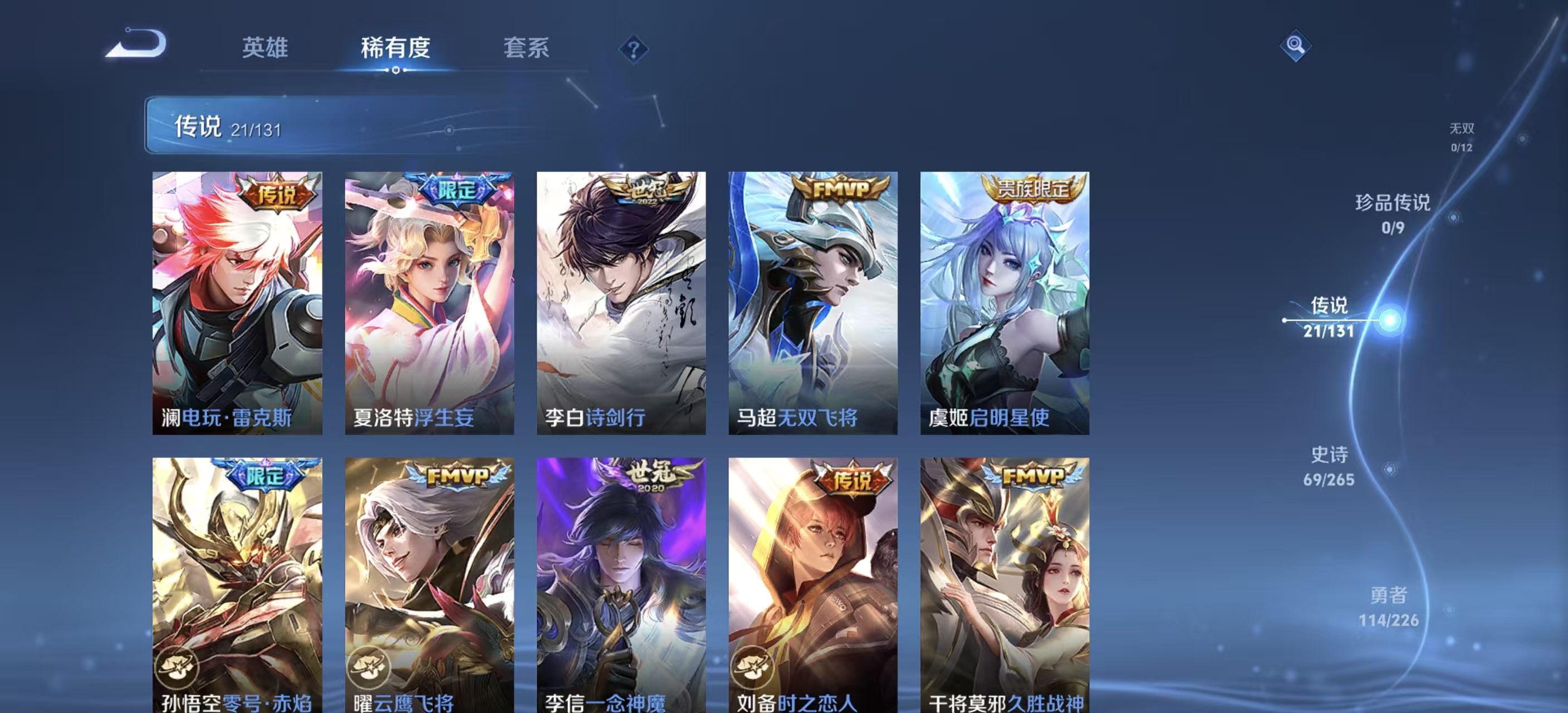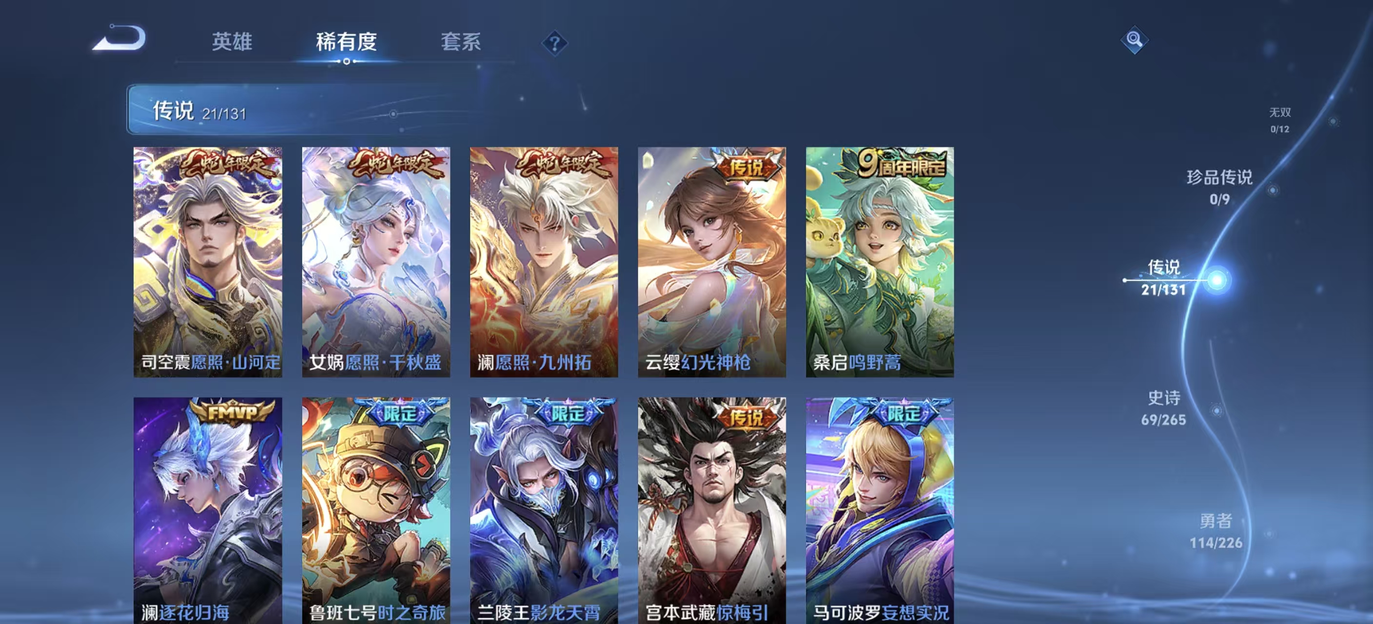 txwz21695v8 266皮肤 21传说愿照·山河定,愿照·千秋盛,愿照·九州拓,幻光神呛,鸣野蒿,逐花归海,时之奇旅,影龙天霄,惊梅引,妄想实况,电玩·雷克斯,浮生妄,诗剑行,久胜战神,地狱之眼,无双飞将,时之恋人,启明星使,云鹰飞将,零号·赤焰,一念神魔
