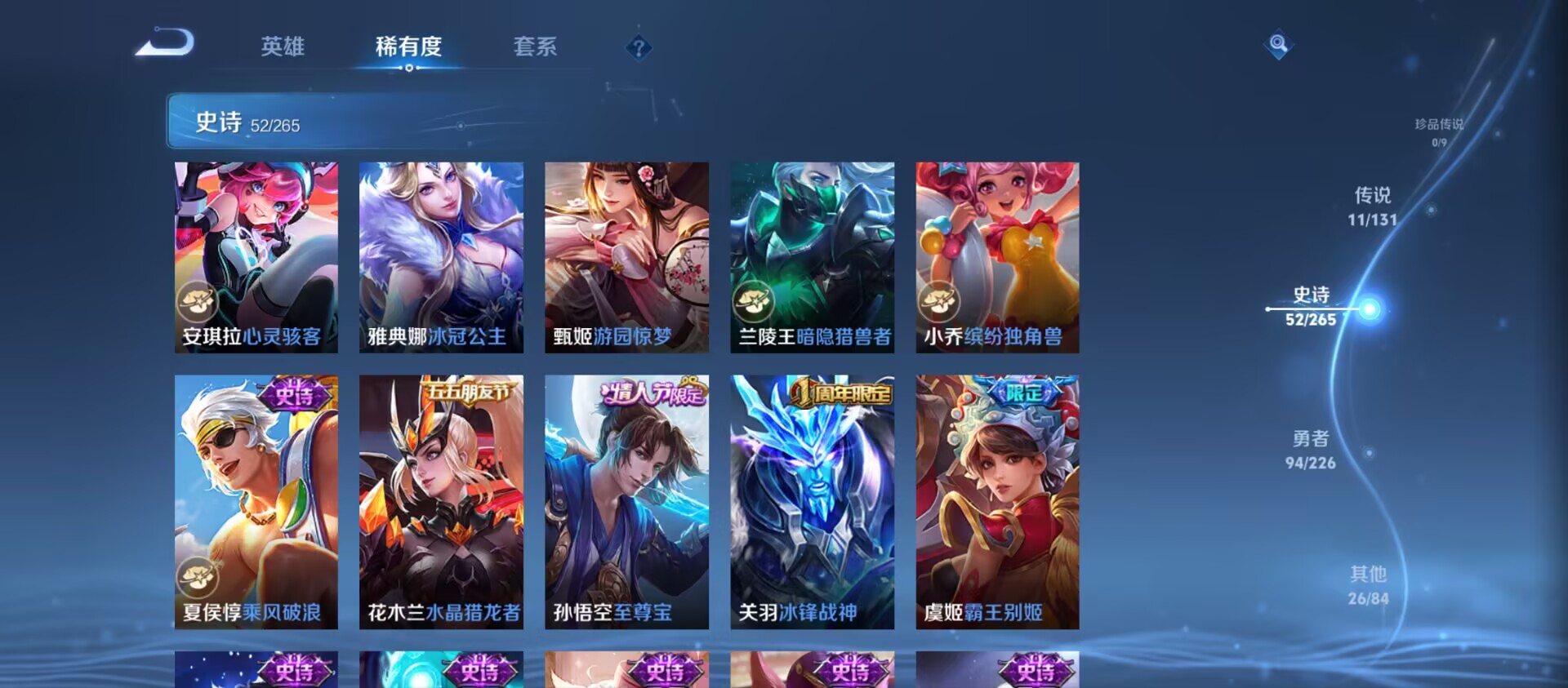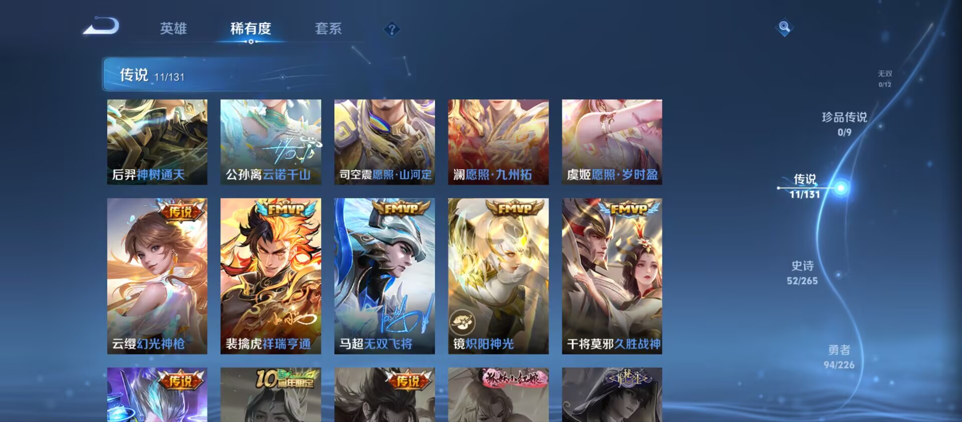 txwz21835 v7-184皮 1典藏 九霄神辉 11传说 久胜战神,神树通天,超时空战士,云诺千山,无双飞将,愿照·岁时盈,愿照·九州拓,祥瑞亨通,幻光神呛,愿照·山河定,炽阳神光 52史诗 巫礼祀神,梁祝,幽灵船长,至尊宝,涂山容容,织梦人,摇滚巨星,百相守梦,百相守梦,石田雨龙,女仆咖啡,荣光圣徽,鸭鸭历险记,龙之律动,化蝶舞,乘风破浪,冰锋战神,烈魂,千年之狐,节奏热浪,茶境仙,地狱岩魂,游园惊梦,暗隐猎兽者,鬼剑武藏,紫霞仙子,怒海争锋,妄想食味,心灵骇客,江河有灵,电玩·爆裂旋风,暗夜猫娘,水果甜心,水晶猎龙者,魔术师,缤纷独角兽,猫狗日记,云间偶戏,天狼运算者,冰霜恋舞曲,霸王别姬,默契交锋,皇家上将,御风骁将,逐浪之夏,修罗,鹰眼统帅,纤云弄巧,狂想玩偶喵,李小龙,冰冠公主,魅力维加斯