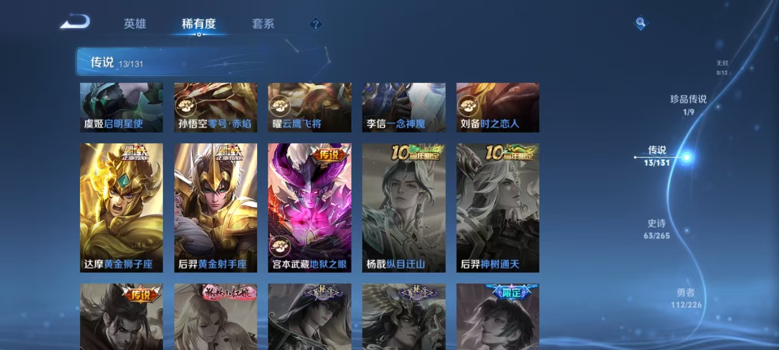 txwz21831-v8 252皮 2典藏 九霄神辉,鸣剑·曳影 1珍品 黑崎一护 13传说 黄金狮子座,落雪白狼,乘龙·铭钟鼎,琥珀纪元,燃星之曲,无双飞将,零号·赤焰,启明星使,云鹰飞将,一念神魔,时之恋人,黄金射手座,地狱之眼 63史诗
