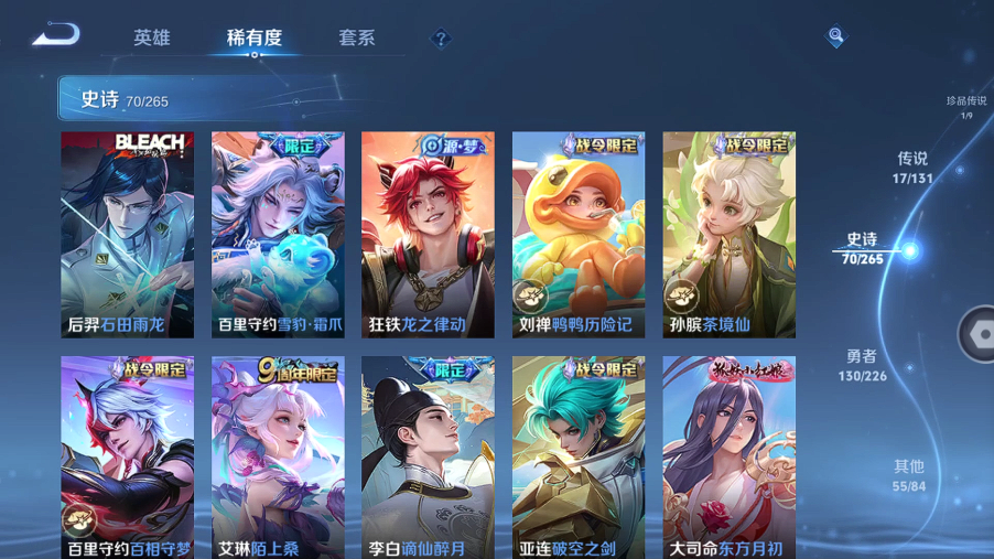 【王者荣耀】【lywz20895】珍品无双0 典藏2 无双1 珍品传说1 传说17 史诗70 英雄126 皮肤276 贵族7级 荣耀典藏:九霄神辉|弑呛猎影__无双皮肤:器灵·螭龙剑__珍品传说:孙策-时之奇旅__传说皮肤:鸣野蒿|无双飞将|炽阳神光|启明星使|黄金狮子座|黄金射手座|黄金白羊座|一念神魔|飞鸢探春|李|白虎志|碎云|天魔缭乱|逐花归海|祥瑞亨通|愿照·山河定|愿照·九州拓__稀有限定:御风骁将|至尊宝|大圣娶亲|引擎之心|飞衡|神威|青春决赛季|孙行者|傲雪梅呛|李小龙|山海·玄木吟|拒霜思|冰锋战神|大漠名商|繁星吟游|古海寻踪|海滩派对|海盐诗旅|航海奇遇记|皇家上将|辉光之辰|混沌棋|剑破天穹|金庭之子|魔术师|女武神|擒涛扼浪|青焰无极|穷奇|驱傩正仪|沙漠行僧|朔风刀|探海日志|醍醐杖|天狼绘梦者|天穹祈灯|玩趣恶龙|万华元夜|妄想食味|五谷丰年|纤云弄巧|项羽-霸王别姬|演武夺筹|疑决卦|阴阳师|御銮|御狮|原初追逐者|逐梦之光|暗隐猎兽者|暗渊魔法|白龙吟|乘风破浪|地狱岩魂|功夫厨神|鬼剑武藏|黄金分割率|箭羽风息|节奏热浪|金属风暴|吕布-末日机甲|梦奇-顽趣|女仆咖啡|偶像歌手|青蛇|圣诞狂欢|圣诞恋歌|水果甜心|水晶猎龙者|孙策-猫狗日记|天才门将|星夜王子|鹰眼统帅|幽灵船长|逐浪之夏|紫霞仙子|百里守约-百相守梦|老夫子-百相守梦|陌上桑|谪仙醉月|噬灭天穹|敬我三分|破空之剑|东方月初|顽岩魄|蔡文姬-夏日便利店|虞姬-夏日便利店|天穹之誓|怒海争锋|曙光守护者|心灵战警|千年之狐|特工魅影|茶境仙|谧流熔炉|原初探秘者|重明|云中旅人|孙悟空-神迹守卫|访茗客|苍威无极|墨子-神迹守卫|华尔街大亨|刘禅-鸭鸭历险记|沈梦溪-鸭鸭历险记|雪豹·霜爪|龙之律动|布丁狗之约|虚灵犬护|石田雨龙|鹤鸣心笺__优质皮肤:一千零一夜|创世神祝|年年有余|孤猎|熊喵少女|午夜歌剧院|露花倒影|未来旅行|激情绿茵|海之征途|碧珀绯影|秩序猎龙将|锦衣卫|冰刃幻境|森|超能战警|英喵野望|维京掠夺者|绯红之刃|踏雪寻梅|启蛰|战争骑士|伊势巫女|画中游|威尼斯狂欢|第七人偶|潮流仙人|街头旋风|绝影神呛|幸存者|赤焰之缨|福禄兄弟|前尘|特种部队|三太子|精灵王|范海辛|龙域领主|爱与和平|占星师|花间舞|魇语军师|花见巫女|灼热之刃|圣殿之光|帝国元帅|战争女神|阿摩司公爵|异域舞娘|修竹墨客|怪诞之夜|动物派对|暗都幽影|功夫炙烤|潮玩探月行|虎啸剑宗|瓷语鉴心|秘密基地|次元突破|鲨炮海盗猫|野性能量|丁香结|虹云星官|科学大爆炸|守护之力|坚韧之力|幻乐之宴|功夫老勺|幻想奇妙夜|海滩丽影|阿尔法小队|兔女郎|黄金武士|少女阿狸|天使之翼|宫本武藏-未来纪元|红桃皇后|忍·炎影|爱心护理|街头霸王|教廷特使|决胜大满贯|零食大作战|太极少年|胡桃狂想曲|契约魔法|重装意志|次元傲视|无尽征程|黑桃队长|幽兰居士|制霸全明星|拳王|时尚教父|白色死神|白执事|大发明家|哥特玫瑰|魅影绮裳|星梦巡礼|灵卦秘语|爆裂喵拳|缤纷绘卷|掌控之力|雾都夜雨|逐霄战戟|铁骨偃魂|纽约教父|龙腾万里|霸王丸|孙悟空-西部大镖客|牛魔-西部大镖客|龙舞盛年|汉昭烈帝|乓乓大师|五福同心|盾山-圆桌骑士|猎兽之王|万事如意|曜-归虚梦演|唤灵魔甲|太乙真人-圆桌骑士|沉稳之力|赤莲之焰|程咬金-群星魔术团|化身博士|花好人间|熔金海岸|万象初新|苍林狼骑|蔚蓝守将|劲辣红锅|特工战影|炽热元素使|妄想特派|春野闲踪|灵野札记|玫蓝誓约|命运加冕|死霸装|无双福将|踏浪烽翎__贵族等级:贵族7级__王者段位:永恒钻石无双器灵·螭龙剑 2典藏九霄神辉,弑呛猎影 珍品时之奇旅 逐花归海,炽阳神光,天魔缭乱,黄金射手座,李 ,飞鸢探春,黄金狮子座,白虎志,黄金白羊座,碎云,无双飞将,祥瑞亨通,一念神魔,愿照·山河定,愿照·九州拓,启明星使 14按键