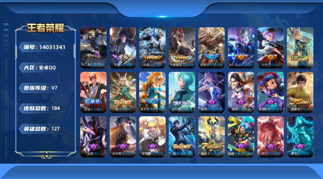 [14031341]【终身售后 找回包赔】安卓手q233区184皮0典藏6传说0无双 营地id1837759171可二次v7最强王者 【星传说】:星际治安官,【优质限定皮肤】:无双飞将云中君时之祈愿【传说皮肤】:一念神魔无双飞将超时空战士零号·赤焰音你心动久胜战神【特殊英雄】:嬴政敖隐,【史诗皮肤】:龙之律动万灵启世巫礼祀神万物之道时之恋人幽灵船长冰冠公主乱世虎臣天才门将乘风破浪决胜骁骑龙骑士冰雪圆舞曲逐浪之夏荣光圣徽星夜王子江河有灵女仆咖啡电玩·爆裂旋风顽趣节奏热浪无心水果甜心心灵骇客五谷丰年原初追逐者时之奇旅鬼剑武藏天秀·启明黄金分割率特工魅影云中君时之祈愿箭羽风息曙光守护者乐园奇幻夜黎明之约青春决赛季紫霞仙子金属风暴魔术师遇见神鹿猫狗日记皇家上将电玩小子乒乒小将心灵战警李小龙繁星吟游梁祝鹰眼统帅 星元:39星传说:1天幕:1按键:2贵族:7点卷:21皮肤碎片:144英雄碎片:306星传说:狄仁杰星际治安官