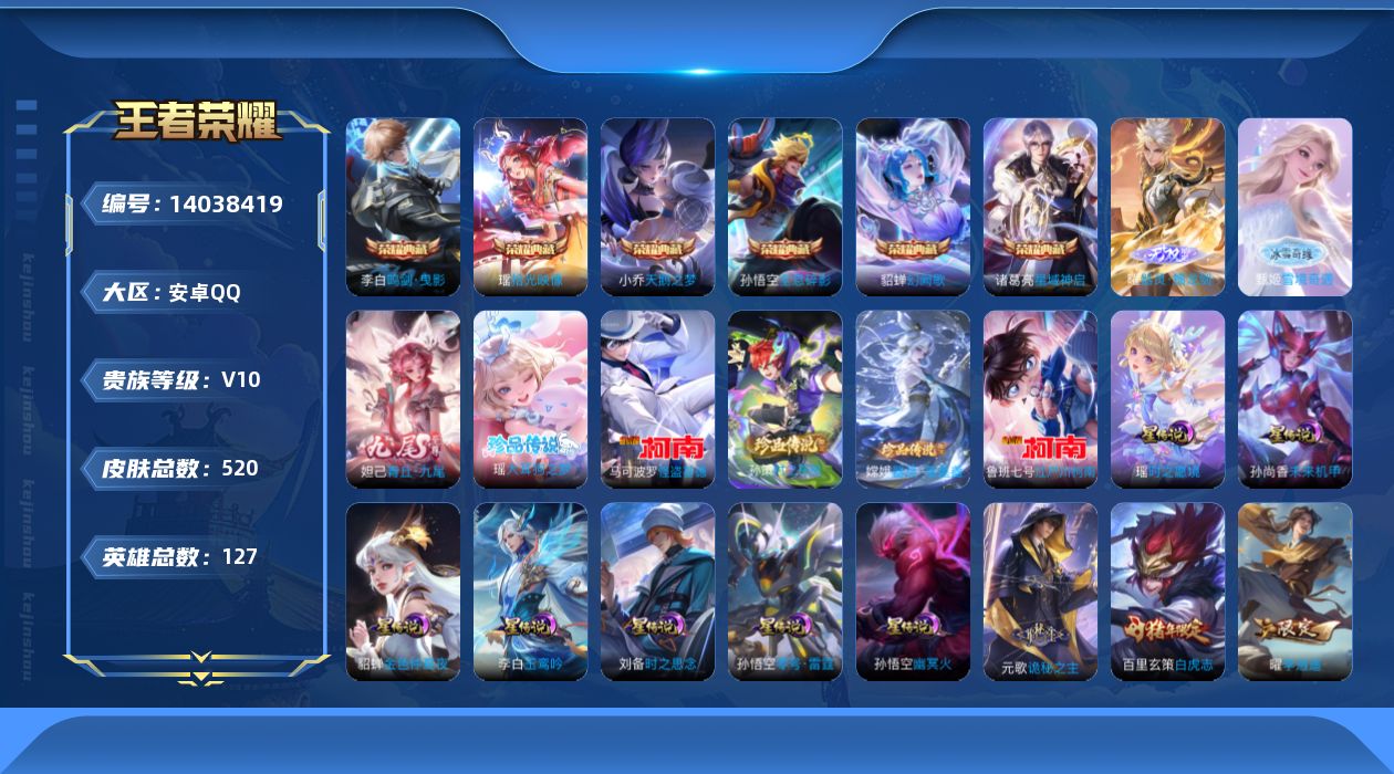 [14038419]【终身售后 找回包赔】安卓手q119区520皮5珍品传说6典藏60传说3无双 营地id457419070包人脸v10无双王者 星元皮肤:公孙离-hellokittyt王昭君-青鸾有意[牛年全套虎年全套蛇年全套猪年全套女号]【珍品传说皮肤】:大耳狗之梦器灵·落星盏时之奇旅怪盗基德江户川柯南【无双皮肤】:器灵·螭龙剑雪境奇遇青丘·九尾【荣耀典藏】:拾光映像幻阙歌星域神启天鹅之梦鸣剑·曳影全息碎影【星传说】:时之思念时之愿境幽冥火未来机甲金色仲夏夜之梦玉鸾吟破晓神光零号·雷霆,【优质限定皮肤】:山海·苍雷引无双飞将瑶时之祈愿云中君时之祈愿武圣神威凤求凰祈雪灵祝白虎志至尊宝【传说皮肤】:神树通天诡秘之主续相思黄金白羊座黄金狮子座地狱之眼愿照·千秋盛愿照·山河定愿照·岁时盈幻光神呛愿照·福禄聚愿照·众生和愿照·九州拓玄雷天君逐花归海鸣野蒿觅芳踪惊梅引鹤羽星尊山海·苍雷引诗剑行绯月行无双飞将挚爱之约挚爱花嫁武陵仙君启示之音花朝如约补天瑶时之祈愿胖达荣荣时之恋人寅虎·瑞焰寅虎·赤拳武圣异界灵契太华末日机甲遇见胡旋淬星耀世乞巧织情游龙清影仲夏夜之梦李 音你心动音你心动凤求凰飞鸢探春地狱火默契交锋祈雪灵祝时雨天司绛天战甲炽阳神光启明星使一念神魔冠军飞将零号·赤焰白虎志云霓雀翎【特殊英雄】:嬴政敖隐,【史诗皮肤】:顽趣夏日便利店光弋星穹万灵启世涂山容容织梦人青焰无极 星元:103星传说:8天幕:1按键:45签名:1贵族:10点卷:16皮肤碎片:144荣耀积分:39英雄碎片:469
