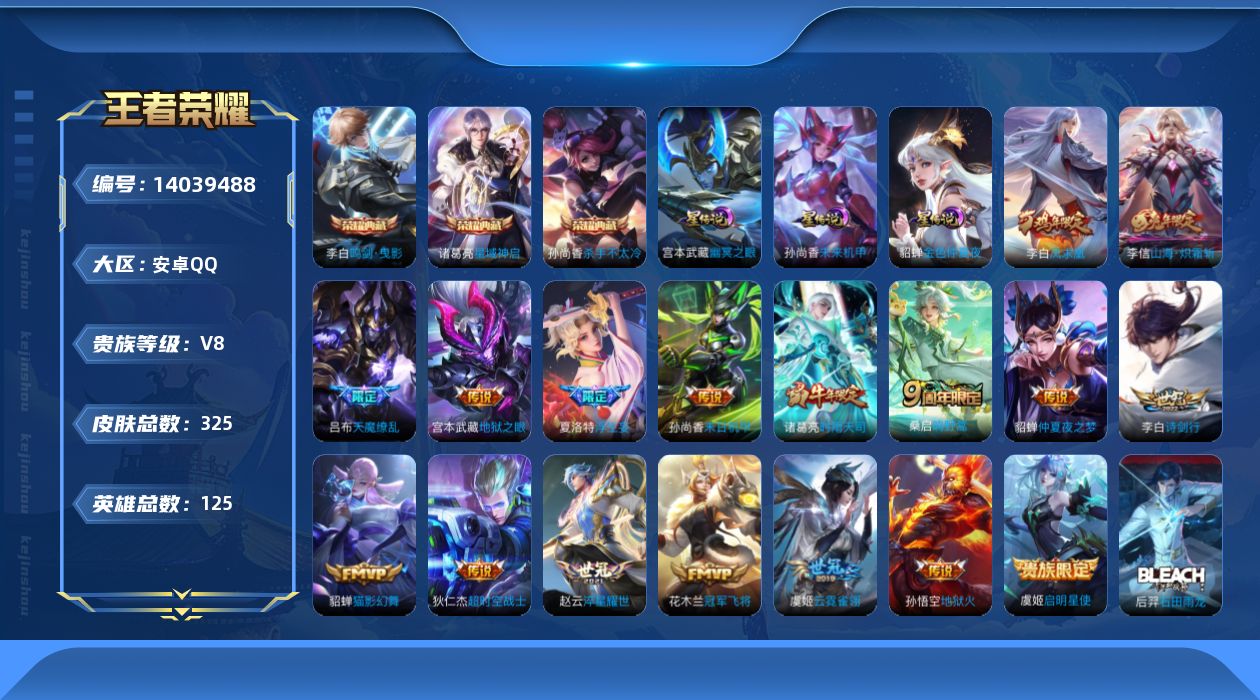 [14039488]【终身售后 找回包赔】安卓手q200区325皮3典藏17传说0无双 营地id408956180包人脸v8永恒钻石v 【荣耀典藏】:星域神启鸣剑·曳影杀手不太冷【星传说】:幽冥之眼未来机甲金色仲夏夜之梦,【优质限定皮肤】:山海·炽霜斩至尊宝天魔缭乱凤求凰【传说皮肤】:鸣野蒿浮生妄山海·炽霜斩淬星耀世诗剑行云霓雀翎猫影幻舞末日机甲启明星使时雨天司仲夏夜之梦天魔缭乱冠军飞将地狱之眼地狱火超时空战士凤求凰【特殊英雄】:嬴政敖隐,【史诗皮肤】:石田雨龙茶境仙猫狗日记心灵骇客蔬乡物语箭羽风息地狱岩魂荣光圣徽地狱燃心默契交锋山海·玄木吟金属风暴末日机甲顽趣神器·万象笔无心五谷丰年心灵战警朱雀志魅语晚萤黎明之约天才门将火炮绅士绅士熊喵拒霜思真爱魔法蔷薇恋人高山流水猪悟能孙行者冰雪圆舞曲女仆咖啡千年之狐电玩小子舞动绿茵冰霜恋舞曲未来纪元功夫厨神白晶晶逐浪之夏狂想玩偶喵纤云弄巧德古拉伯爵李小龙原初追逐者暗影游猎白龙吟紫霞仙子乱世虎臣天狼绘梦者时之恋人迷踪丽影苍穹之光曙光守护者至尊宝星夜王子修罗缤纷独角兽白昼王子银河之约鬼剑武藏驯魔猎人梁祝狮舞东方偶像歌手节奏热浪水果甜心鹰眼统帅蓝屏警告暗夜猫娘遇见飞天冰锋战神乘风破浪魔术师圣诞恋歌特工魅影王者之锤水晶猎龙者暗隐猎兽者圣诞狂欢皇家上将幽灵船长暗夜贵公 星元:60星传说:3天幕:1贵族:8点卷:15皮肤碎片:6荣耀积分:31英雄碎片:1110星传说:孙尚香未来机甲宫本武藏幽冥之眼貂蝉金色仲夏夜