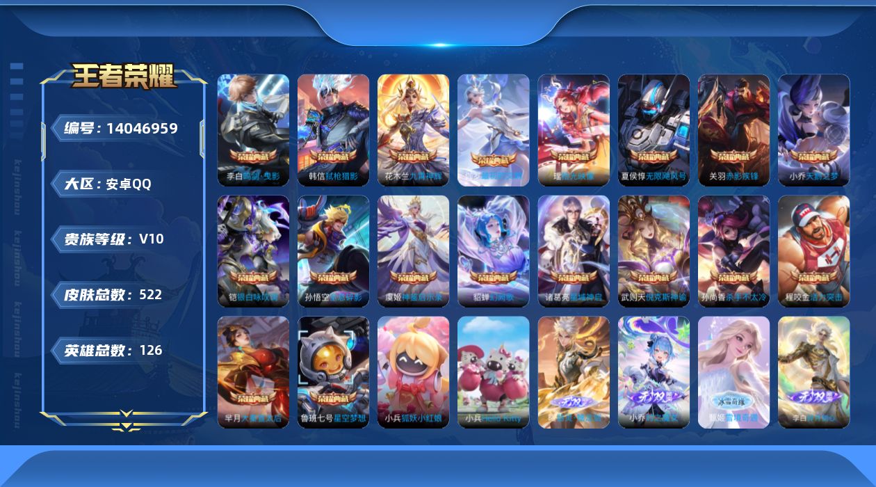 [14046959]【终身售后 找回包赔】安卓手q176区521皮2珍品传说19典藏90传说4无双 营地id91534214可二次v10永恒钻石iii 天幕:雪境奇遇天幕[龙年全套蛇年全套女号]【珍品传说皮肤】:时之奇旅器灵·落星盏【无双皮肤】:碎月剑心时之魔女器灵·螭龙剑雪境奇遇【荣耀典藏】:拾光映像神鉴启示录弑呛猎影幻阙歌银白咏叹调赤影疾锋九霄神辉星域神启活力突击杀手不太冷全息碎影大秦宣太后天鹅之梦鸣剑·曳影无限飓风号倪克斯神谕星空梦想最初的交响武则天【星传说】:未来机甲金色仲夏夜之梦幽冥之眼,【优质限定皮肤】:武圣无双飞将祈雪灵祝神威天魔缭乱凤求凰白虎志梅西至尊宝【传说皮肤】:炽翼辉光霜北刀心动手记群星魔术团黄金天蝎座金乌负日神器·狴犴令落雪白狼小动物乐团灼幽烈阳琥珀纪元琥珀纪元寅虎·赤拳曦玄引曦玄引乞巧织情音你心动战鼓燎原乘龙·淬吴钩乘龙·问璇玑乘龙·铭钟鼎补天觅芳踪逐花归海霜月吟夜礼服假面永恒水手月亮时之恋人至美·化雀舞惊梅引时之奇旅影龙天霄武圣鹤归松栖浮生妄绯月行星穹之声淬星耀世花朝如约碎云前尘镜深海之息枫霜尽挚爱之约挚爱花嫁无双飞将启示之音游龙清影李 飞鸢探春默契交锋一念神魔时雨天司祈雪灵祝绛天战甲炽阳神光启明星使云鹰飞将冠军飞将胖达荣荣天魔缭乱太华永曜之星猫影幻舞凤求凰黄金白羊座黄金射手座久胜战神黄金狮子 小兵:2星元:41星传说:3天幕:3按键:18签名:7贵族:10点卷:5皮肤碎片:588荣耀积分:31英雄碎片:2709星传说:孙尚香未来机甲宫本武藏幽冥之眼貂蝉金色仲夏夜